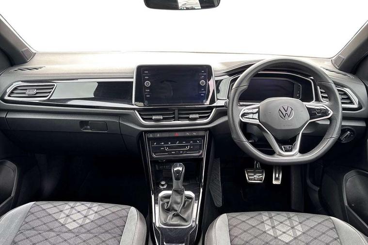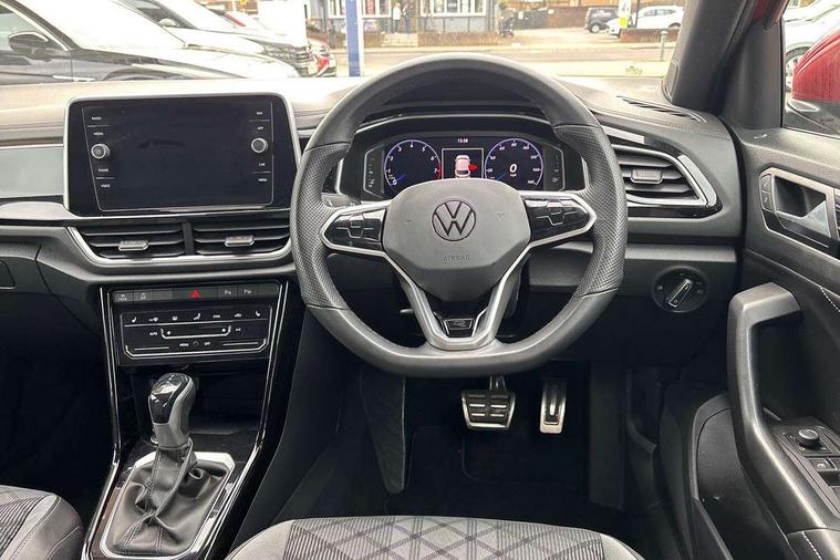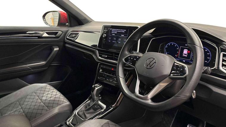 10.25" Digital cockpit pro, Bluetooth mobile phone interface, Driver alert system with fatigue detection, Driver tips and journey analysis, Emergency call service, Lane keeping system Lane Assist, Modified key software - reduce switch off time for key status change to Long no motion, Online services, Park assist including front and rear parking sensors, Service interval indicator, Tailgate/trunk lid release from outside, Think blue trainer driver tips and journey analysis, Warning sound and light for front seatbelts unfastened, Wireless app connect, Battery regeneration during braking, Start/stop function with battery regeneration, Diversity antenna for FM reception, Front and rear 6 speakers, Music playback - MP3, WMA and AAC files, Premium USB cable in choice of either Apple or Android smartphone compatibility, SD card slot, Simultaneous pairing of 2 compatible mobile devices, Title and cover art display, We Connect and We Connect Plus functionality, 3rd brake light, Auto dimming interior rear view mirror, Automatic hazard lights activation under emergency braking, Automatic headlight control with LED separate daytime running lights with coming/leaving home function, Extended roof spoiler, Exterior mirrors aspherical on driver side, convex on front passenger side, External USB type C socket and charging sockets, Front windscreen wiper with intermittent wipe and 4 position delay, Heated rear window, LED Plus headlamps, LED rear combination lamps, LED rear number plate lights, LED tail lamp rear comination lamps, Power windows with comfort operation and circuit breaker, R-Line design body coloured bumpers, Rain sensor, Rear exhaust tailpipe, Rear fog light on one side and reversing lights on both sides, Rear side wing doors, Rear wash/wipe with intermittent wipe setting, Remote electrically foldable door mirrors, puddle lights and reverse activated passenger's door mirror, 12V power socket in centre console, 3 rear head restraints, 3 seat bench in 2nd row, 4 load lashing points in luggage compartment, Air care climatronic air conditoning system with active combination filter and 2-zone temperature control, Black roof lining, Chrome plated radiator grille inserts, air vent surrounds and light switch surrounds, Door and side trim panel with leatherette insert, Drawer under drivers seat, Front + rear carpet mats, Front centre armrest, Front cupholders x 2, Front footwell illumination, Front reading light, Front scuff plates with R logo, Instrument lighting, white adjustable panel illumination, Interior ambient lighting and surround lighting, Interior light delay, Isofix child seat preparation, Leather gearshift handle, Load-through provision with cup holder when folded down ('Unsplit rear seat bench, split folding backrest, with centre armrest), Luggage compartment lighting, Single front passenger seat, Stainless steel pedals, Storage compartment in left and right luggage area, Storage compartment in rear doors, Storage compartments in driver and front passenger doors, Sunvisors with illuminated vanity mirrors, Variable boot floor, height adjustable and removable, Driver assistance pack without proactive passenger protection - T-Roc, 3 point height adj front seatbelts + pretensioners, 3 point seatbelts in outer rear with ECE label, ABS, Child locks on rear doors, Driver and front passenger airbag with front passenger airbag deactivation, Driver and front passenger safety-optimised head restraints, Drivers seatbelt reminder, Electronic parking brake, Electronic Stability Control (ESC) inc EDL (Electronic Differential Lock) and ASR (Traction Control), Front and rear passengers curtain airbag system including front side airbags, Front assist with city emergency braking and pedestrian monitoring, Front seat side impact airbags, Hill start assist, Predictive pedestrian protection, Rear disc brakes, Single tone horn, Tyre pressure loss indicator, Volkswagen roadside assistance, Alarm with interior protection, Anti-theft alarm system with interior monitoring, backup horn, and towing protection, Remote central locking with SAFELOCK, radio remote control with 2 remote control folding keys, Trims for alloy wheels,