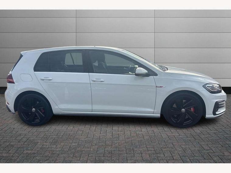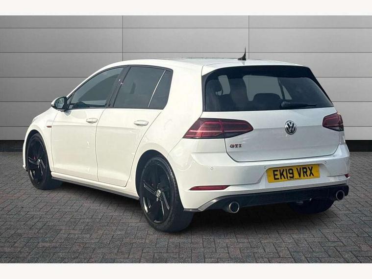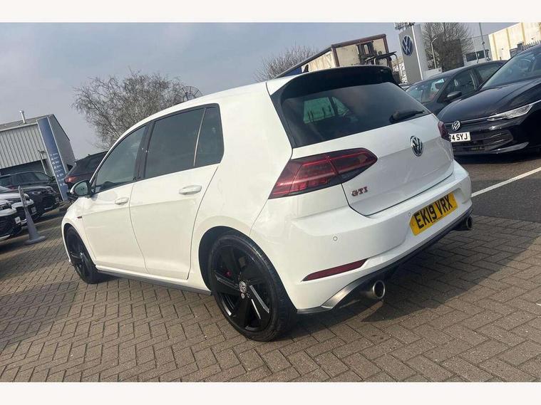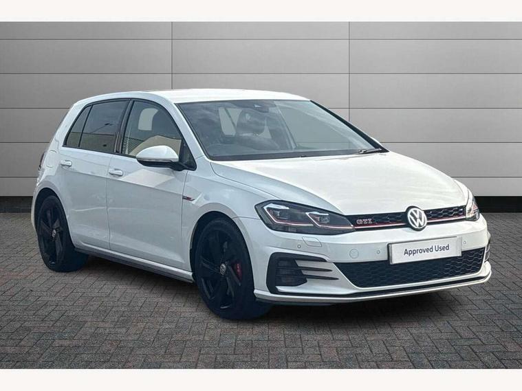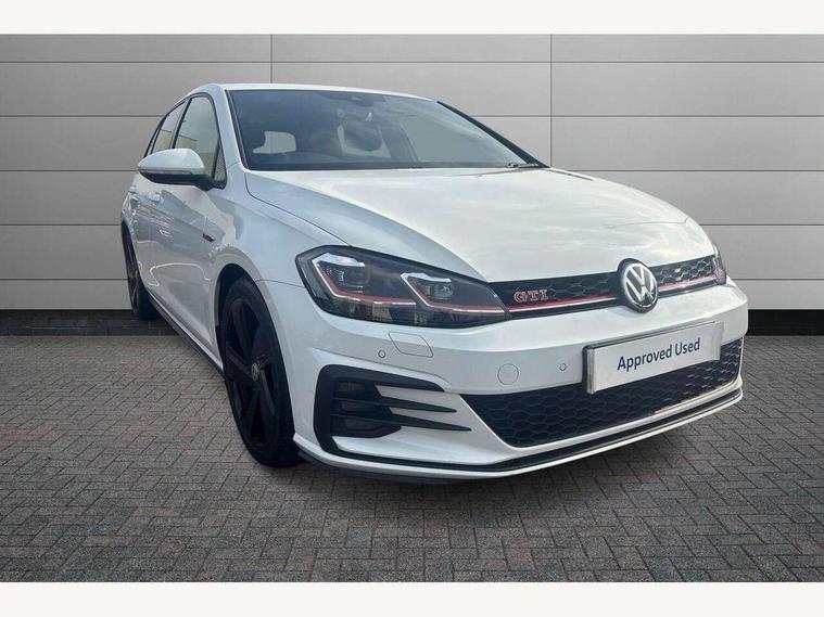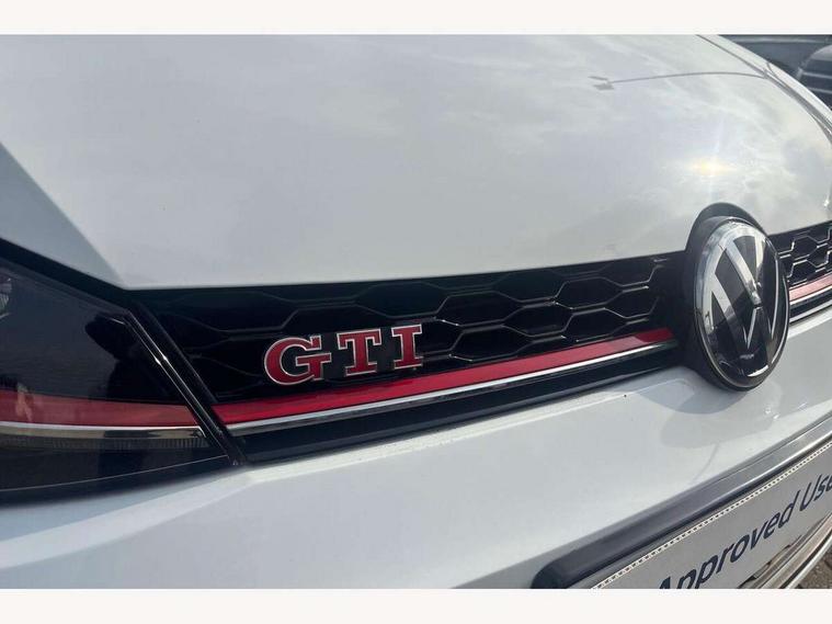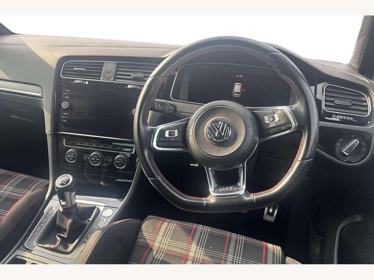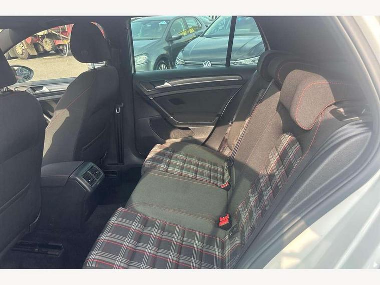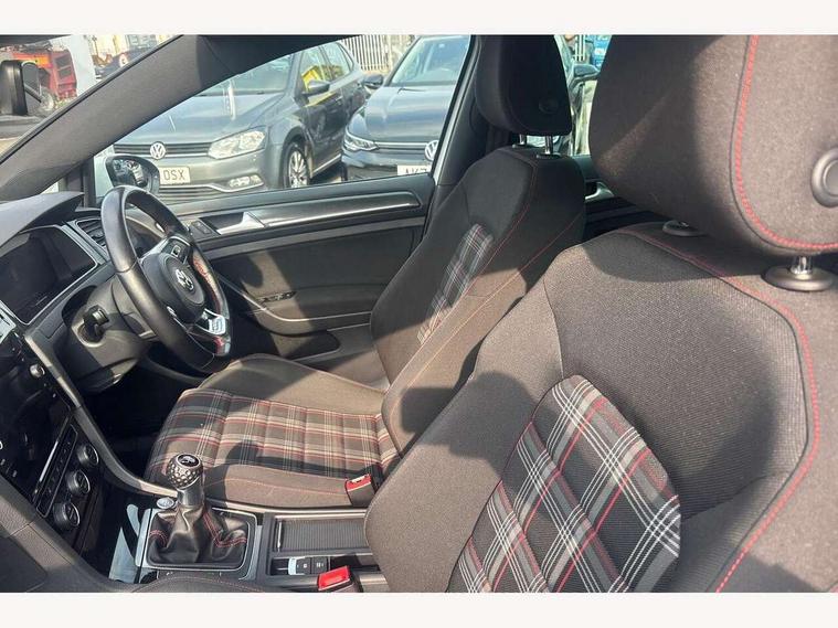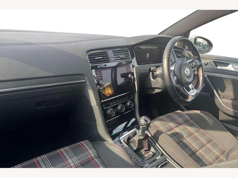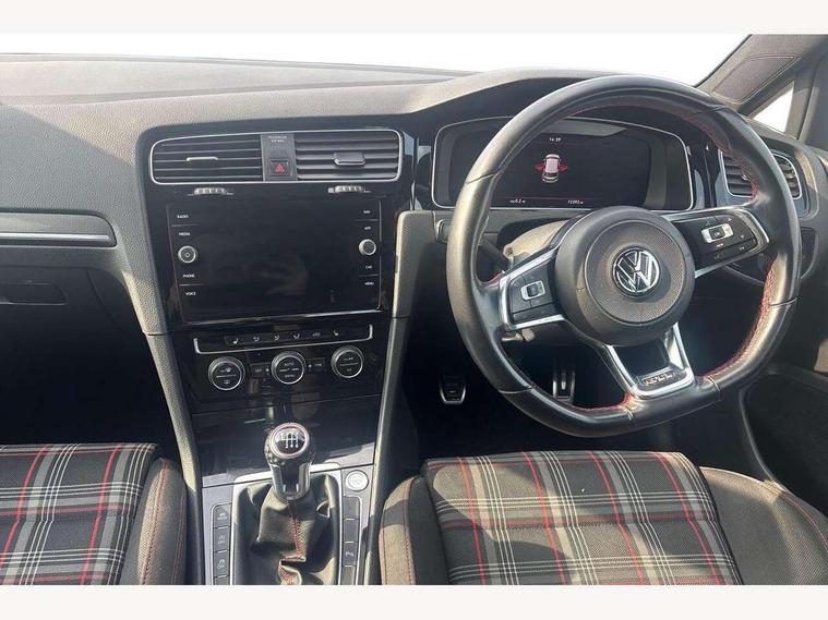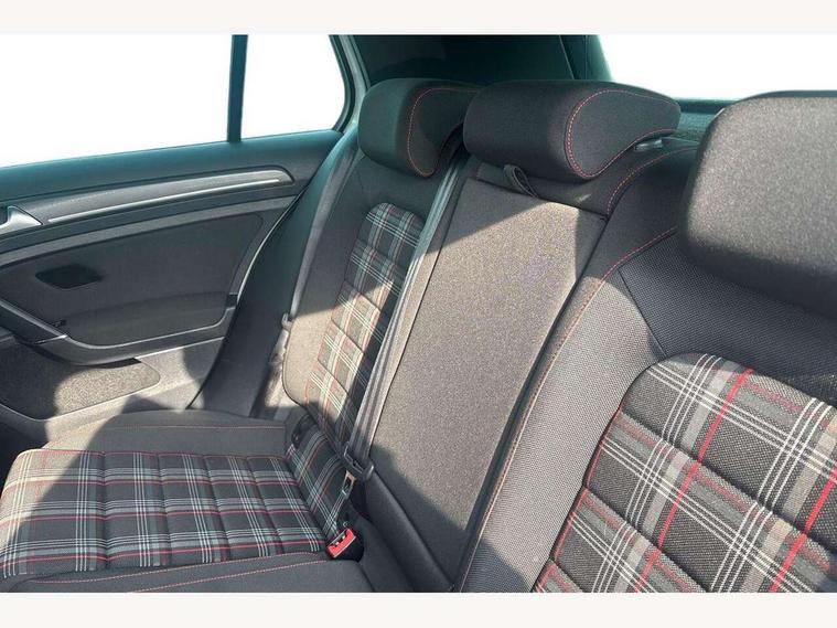 'Lights On' Reminder warning buzzer, ACC - Adaptive cruise control with front assist, forward collision warning, distance monitoring, city emergency brake and speed limiter, Bluetooth telephone and audio connection for compatible devices, Brake pad wear indicator warning light, Driver alert system, Driver profile selection, Driving Mode Selection with four preset modes - Eco, normal, sport or individual modes, Instrument cluster in white, Lane assist with dynamic light assist and traffic sign recognition, Multifunction computer with visual gear change recommendation for fuel consumption, Power assisted speed sensitive electro-mechanical steering, Push tank flap, Rear view camera, Speedo, rev counter, electronic odometer, trip, service interval display, exterior temperature and fuel gauge, Stop/start system, Warning buzzer and light for front seatbelts unfastened, Battery regeneration during braking, Limited slip differential, Lowered sports suspension, XDS electronic differential lock, Composition media system, DAB Digital radio receiver, MP3/WMA compatability, Multi device interface (MDI) with USB connection, Premium USB cable in choice of either Apple or Android smartphone compatibility, SD card slot, SMS Functionality, USB and SD card connectivity, Volkswagen media control, 3D-LED tinted rear light clusters with indicator sweep function, Black rear diffuser, Body colour door handles, Body colour door mirrors with integrated indicators, Body colour rear roof spoiler, Body colour sports bumpers, Dusk sensor + automatic driving lights, Electric front windows, Electric rear windows, Electrically adjustable and heated door mirrors, Fully galvanised body, GTI logo in red on front and back, GTI logo lettering on front wings on right and left, Heated rear windscreen, High level 3rd brake light incorporating LED Technology, Honeycomb radiator grille - black, LED daytime running lights, LED front fog lights with static cornering light function, LED headlights with dynamic light assist, Rear fog lamp, Rear window aerial, Rear window wash/wipe with intermittent wipe, Reflectors in all doors, Shiny black aerofoil downside, Sill extensions, Twin exhaust tailpipe, Windscreen wipers/ intermittent wipe + 4 position delay, 12V socket in luggage compartment, 3 rear headrests, 4 load lashing points in luggage compartment, 60/40 split folding rear seat backrest, Bag hook in luggage compartment x 2, Black headlining, Climate control - 2 zone electronic air conditioning with automatic air recirculation and allergy filter, Cooled glovebox, Dust/pollen filter, Front + rear carpet mats, Front centre armrest with storage compartment and two rear air vents, Front seat back storage pockets, Grab handles front x 2, rear x 2 with integrated coat hooks, Height and reach adjustable steering wheel, Illuminated door sills, Illuminated vanity mirrors, Instrument lighting white adjustable panel illumination, Interior light delay, Isofix preparation for 2 rear child seats, Leather gear knob and handbrake grip, Load through provision with rear centre armrest and cupholders x2, Luggage compartment lighting, Multifunction leather steering wheel with GTI logo and selector lever boot grip with red stitching, Overhead storage box, Stainless steel pedals, Storage box in luggage compartment, Storage compartment in roof console with cover, Storage compartments in front doors, Storage compartments in rear doors, Stowable luggage compartment cover, Sun visors, Variable boot floor, height adjustable and removable, Ambient lighting pack - Golf, Convenience Pack - Golf, Light and Sight pack - Golf, Mirror pack - Golf, 3 rear three point seatbelts, Airbags - Driver's and front passenger's, curtain airbag, Driver's knee, front side impact and passenger's airbag deactivation switch, Anti-lock Braking System (ABS) with Hydraulic Brake Assist (HBA), Automatic post collision braking system, Child locks on rear doors, Driver/Passenger optimised head restraints, Electronic parking brake with auto hold, Electronic stability control (ESC) including Electronic differential lock (EDL) and ASR (Traction control) with deactivation via infotainment system, Front ventilated disc brakes and rear disc brakes, Pre crash preventive occupant protection, Red brake calipers, Three point height adjustable front seatbelts with tensioners, Tyre pressure loss indicator, Alarm with interior protection and deactivation via infotainment system, Electronic engine immobiliser, Keyless entry with start/stop button on centre console, Remote central locking with 2 remote folding keys, Chrome plated air vent surround, Chrome plated electric mirror adjustment light switch surround, Honeycomb black decorative inserts, Piano black centre console, Steel space saver spare wheel,