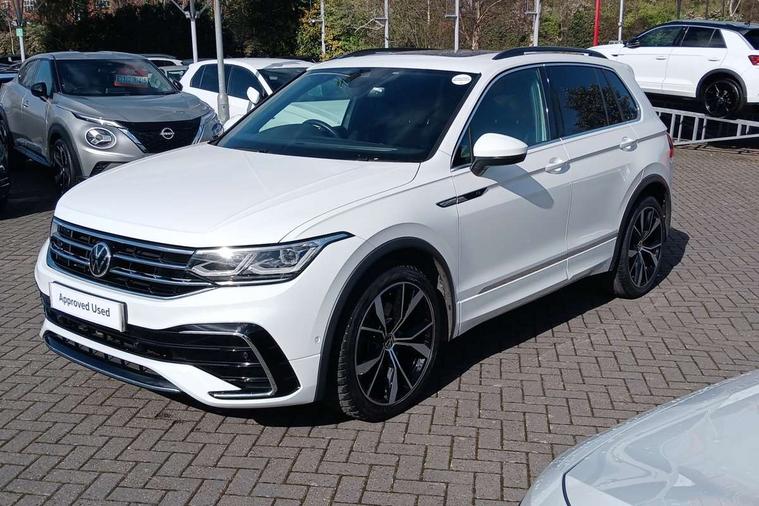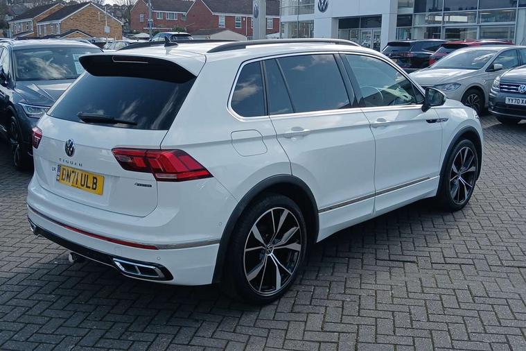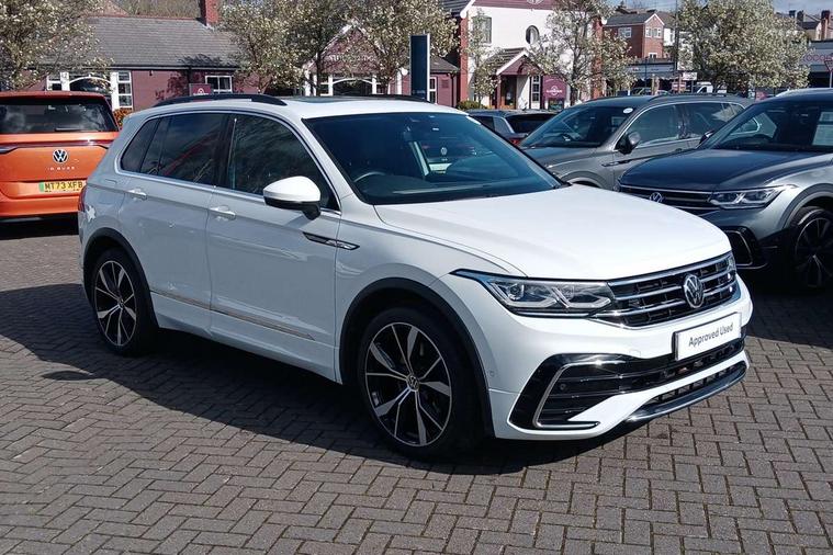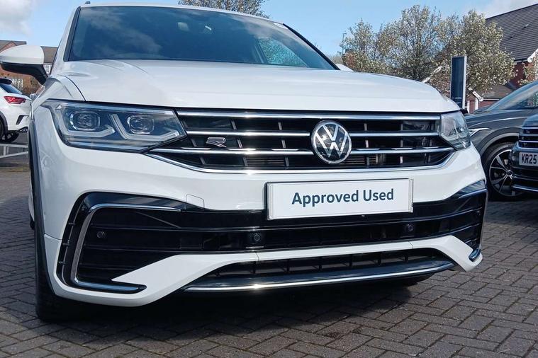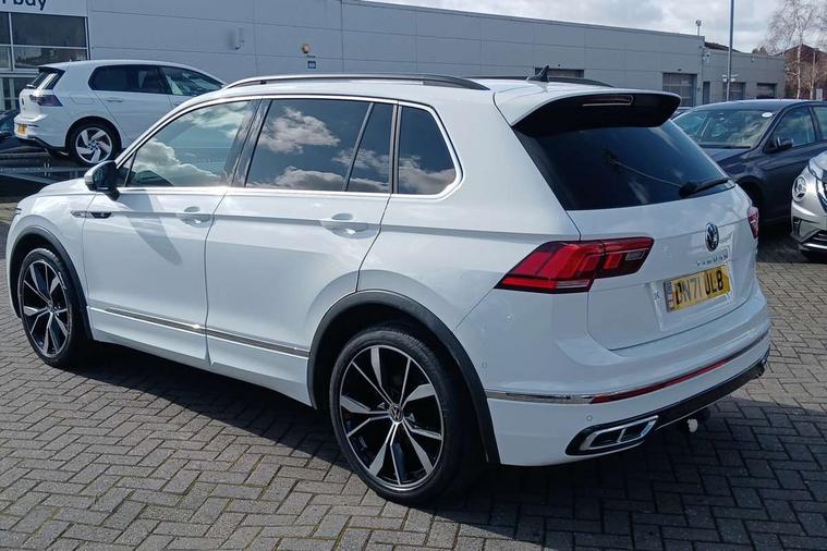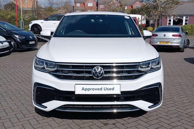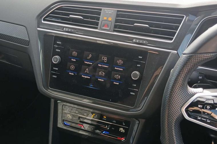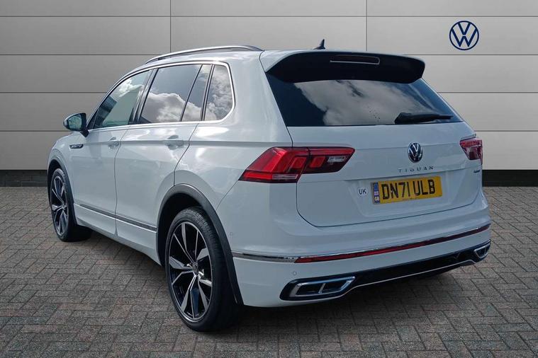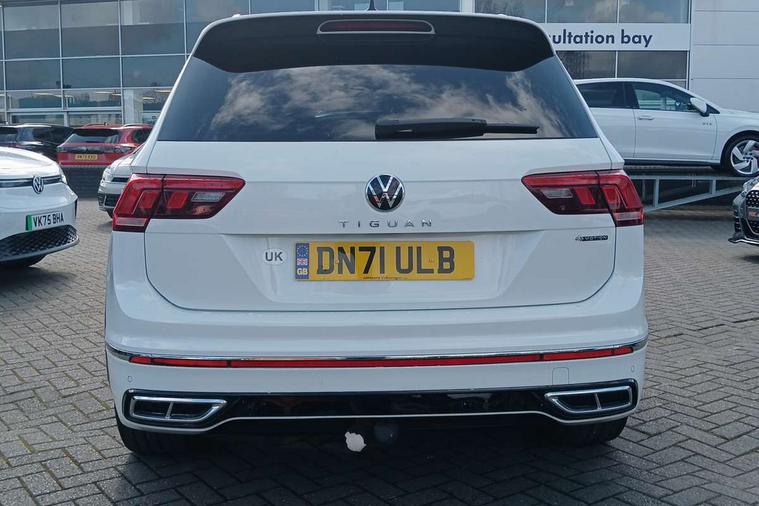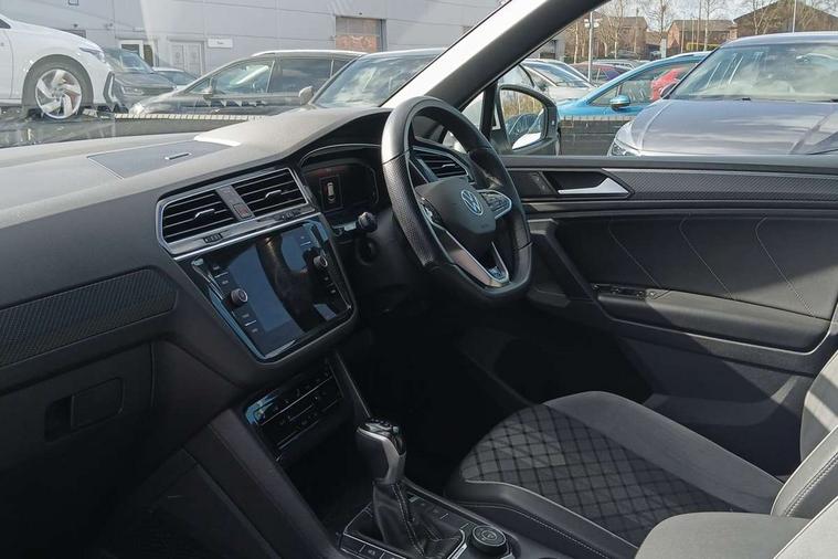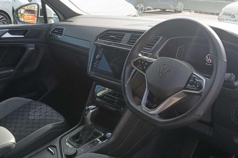 Adaptive cruise control ACC stop and go including speed limiter, App-Connect incl. App-Connect Wireless for Apple CarPlay and Android Auto, Bluetooth phone integration system, Digital Cockpit Pro - Active info display, Distance control assist, Driver alert system, Driver profile selection, Dynamic road sign display, eCall emergency call system, Electromechanical speed sensitive power steering, Engine start/stop button, Lane keeping system Lane Assist, Lights on warning, Multifunction front facing camera, Outside temperature display, Premium multifunction display with multi colour display, Remote control boot opening, Rev counter, Revision / skills operating concept travel assistant, Service interval indicator, Speed limit display, Start/stop system with regenerative braking, Trip computer, Warning sound and light for doors and tailgate open, All wheel drive - 4Motion, Battery regeneration during braking, Diesel particulate filter, Misfuel prevention device for diesel engine, Selective Catalytic Reduction, XDS electronic differential lock for improved traction and handling, 2 USB-C ports in the front, 1 USB-C charging socket on the center console in the rear, Diversity antenna for FM reception, Radio, SD card slot, Simultaneous pairing of 2 compatible mobile devices, SMS functionality - read, compose and send SMS messages using touch-screen display, Title and cover art display, Auto dimming interior rear view mirror, Automatic headlight control system, Black roof rails, Body colour door handles, Body coloured bumpers in R Line style, Body coloured door mirrors with integrated indicators, Chrome moldings on the side windows, Coming/leaving home lighting function, Dynamic headlight range control, Front and rear electric windows, Heated rear window, High level 3rd brake light, Laminated safety glass windshield, heat and sound insulating, LED rear number plate lights, License plate carrier in front and rear, Poor weather light and cornering light, Privacy glass for rear side windows and rear window, R Line body kit, R Line side sills, Rain sensor windscreen wipers, Rear exhaust tailpipe, Rear fog lamp, Rear side wing doors, Rear spoiler in R style, Rear windscreen washer and wiper with interval delay, Side and rear windows in heat insulating glass, Trailer Stability Programme, Unique R Line badging, Windscreen wipers/ intermittent wipe + 4 position delay, 12V outlet in center console rear and in luggage compartment, 12V outlet in front and tray, 2 cup holders in front, 2 LED front reading lights, 2 LED rear reading lights, 3 bench rear seats in 2nd row, 3 rear headrests, 4 load lashing points, 40:20:40 split folding rear seats, Air Care Climatronic 3 zone automatic climate control with enhanced air filter and controls in the rear, Backrest release for left front seat, Black headlining, Brushed stainless steel pedals and footrest, Carpet mats in front and rear with decorative stitching in Gray, Climate control unit rear with touch function, Door and side trim panel in foam film, insert in leatherette, Front centre armrest, Front footwell illumination, Front seats head restraints (x-adjustment), Height adjustable front seats, Height/reach adjust steering wheel, Instrument lighting white adjustable panel illumination, Interior light with delay, Isofix Preparation 2 Rear child seats, Leather gear knob, Lockable cooled glovebox, Luggage compartment lighting, Luggage net, Rear bench seat asymetrically split folding, longitudinally movable and folding with load-through hatch and center armrest, Remote unlocking for rear seat backrest, Removable luggage cover, Removable rear headrests, Safety optimised front head restraints, Single front passenger seat, Sliding/reclining rear seats, Standard rear seat release, Storage compartment in driver's door, Storage compartment in passenger's door, Storage compartment in rear doors, Storage compartments in luggage area left and right, Storage tray on dashboard, Sun visors with illuminated vanity mirrors, Top front comfort seats, Variable boot floor, height adjustable and removable, Ambience pack - Tiguan R Line, Driver assistance pack plus - Tiguan DSG, Park assist pack - Tiguan, 3 point seat belt for centre rear seats, 3 point seat belts with seat belt pretensioners for the outer rear seats, Active bonnet, Curtain airbags for front and rear passengers, Driver/Front Passenger airbags, Drivers knee airbag, Electronic parking brake with auto hold, Electronic Stability Control with driver steering recommendation, ABS, ASR, EDL, EDTC and trailer stabilization, Front assist with autonomous emergency braking (for Adaptive Cruise Control ACC up to 130 mph), Front disc brakes, Front passenger airbag deactivation, Front side airbags, Height adjustable front 3 point seatbelts + pretensioners, Hill hold control, Manual child proof rear door locks, Pedestrian monitoring system, Power assisted brakes, Proactive passenger protection system in combination with front assist, Rear disc brakes, Rigid safety cell with front and rear crumple zones, Two tone horn, Warning sound and light for front seat belts if unfastened, Anti theft alarm system with interior monitoring, backup horn and towing protection, Anti theft wheel bolts, Electronic engine immobiliser, 20" Misano black with diamond turned surface alloy wheels with Airstop tyres, Tool kit,