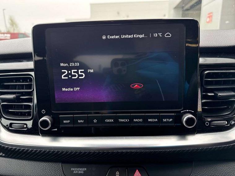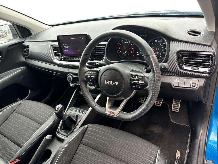 4.2" supervision colour cluster display, 8" touchscreen navigation, Apple car play/Android Auto with voice control, Blind spot collision warning, Cruise control + speed limiter, Drive mode selector, Electric power steering, Emergency call service, Emergency stop signalling system, External temperature display, Forward Collision-Avoidance Assist (FCA) - City/Pedestrian/Cyclist, Front parking sensors, Intelligent speed limit warning, Lane keeping assist system (LKAS), Driver attention warning (DAW) and High beam assist (HBA), Rear parking sensor, Reversing camera system, Trip computer, Intelligent Stop and Go, Audio system with 6 speakers, Bluetooth with music streaming, Front USB port, Steering wheel mounted controls, All round electric windows with drivers auto up/down function, Auto dimming rear view mirror, Automatic defog system, Automatic headlights control, Black side sill, door garnish and wheel arch trims, Black/body colour bumpers, Body coloured exterior door handles, Chrome side window trim, Electrically adjustable/heated/folding door mirrors with LED indicators, Front and rear silver skid plates, Gloss black door mirrors with matt black lower housing, GT-Line body kit, Headlight levelling device, Heated rear window, High gloss black and satin radiator grille, LED Bi-function projection headlights with static bending, LED daytime running lights, LED front fog lights, LED position light, LED rear combination lights, Privacy glass - Rear windows and tailgate, Rain sensing front wipers, Rear fog lights, Rear side wing doors, Rear wash/wipe, Roof coloured rear spoiler with high mounted braking light, Roof rails, Shark fin antenna, Solar windshield glass, Speed variable front aeroblade wipers, Tinted glass, Welcome and follow-me home light functionality, Windscreen Washer Level Warning, 12V power point front, 3 seat bench in 2nd row, 60/40 split folding rear seat, Air filter, All-round height adjustable headrests, Aluminium pedals, Automatic air conditioning, Centre armrest storage box, Centre console with cupholders, D-Cut perforated leather trimmed steering wheel, Dash illumination dimmer switch, Driver's seat height adjuster, Front and centre cabin lights, Front and rear door map pockets with bottle holder, Gear shift indicator, Glovebox illumination, GT-Line cloth/faux leather upholstery, Heated front seats, Heated steering wheel, ISOFIX Child seat top tethers and anchor fixings outer rear seats, Leather trimmed gearshift, Luggage area light, Luggage area parcel shelf, Luggage net, Luggage net with hooks, Overhead console lamp, Overhead console with sunglasses cases, Passenger front seatback pockets, Passenger seat height adjuster, Rear USB charging port, Satin chrome interior door handles, Single front passenger seat, Sunvisors with vanity mirror illumination (Driver and front passenger), Tilt/telescopic adjustable steering wheel, ABS with Electronic Brakeforce Distribution (EBD) and Brake Assist System (BAS), All round 3-point seatbelts, Electronic stability control (ESC) and vehicle stability management (VSM), Front passenger airbag cut-off switch, Front seatbelt pretensioners + load limiters, Height adjustable front seatbelts, Hill start assist control (HAC), Impact sensing auto door unlocking, Manual child lock in rear doors, Rear seat Occupancy alert, Seatbelt reminder warning, Twin curtain airbags, Twin front airbags, Twin front side airbags, Tyre pressure monitoring system, Alarm system, Door deadlocks, Engine immobiliser, Locking wheel nuts, Smart key with engine start/stop button, Speed sensitive auto door locking, Visible vehicle identification number, High gloss black centre fascia, 17" GT-Line alloy wheels, Tyre mobility kit,