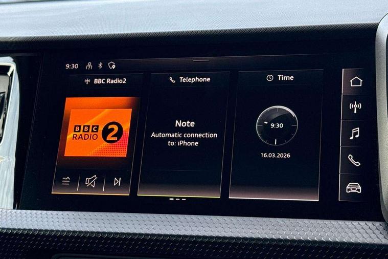 10.25" Digital instrument cluster display classis style instrument dials + speed, odometer, time, outside temperature, telephone menu + fuel level warning, Audi smartphone interface with connect compatible smartphone via USB directly MMI display + Nav, music, third party apps controlled via MMI controller, Automatic start/stop system, Bluetooth interface, Driver's information system, Electromechanical power steering, Emergency e-call, Emergency services call system, Lane departure warning system, Service interval indicator, Speed limiter, Voice control system, Washer fluid level indicator, Dynamic suspension, 1 x SDXC card reader, 2 x USB type C connection points, 6 passive loudspeakers, DAB Digital radio, MMI radio plus with 8.8" colour MMI display screen and MMI touch, Auto dimming rear view mirror, Body coloured bumpers, Body coloured door mirrors, Electric front and rear windows, Electrically adjustable, heated, folding door mirrors with integrated LED side indicator, Front side air inlets with front spoiler lip and rear diffuser in matt black grained, Heat insulating glass windscreen and side windows, Heated rear windscreen, High level LED brake light, LED headlights with LED rear lights + dynamic rear indicators + headlight adjustment and high beam, turning light + LED daytime running lights, Radiator grille in matt black, Rain and light sensors, Rear fog lights, Rear side wing doors, Rear wing door, Rear wiper, 12V socket in centre console with two cup holders, 3 rear seats with headrests, 3 seat bench in 2nd row, 3 spoke leather multifunction plus steering wheel, 40:60 Split folding rear seat or folded fully, Air vents, door handle recesses and centre console in black, Delta cloth upholstery, Driver and passenger seat with manual height adjust with forward and backwards adjustment, Front head restraints, Front passenger seat, Front/rear floor mats, Height and reach adjustable steering wheel, ISOFIX child seat mounting for front passenger and outer rear seats including top tether attachment point of outer rear seats, Leather gear knob with aluminium trim, Leatherette handbrake grip, Luggage compartment light with front and rear reading lights, Manual air conditioning, Titanium grey cloth headlining, Luggage compartment pack - A1, 3x3 point rear seatbelts, Audi pre-sense front with pedestrain and cyclist recognition, Brake assist function, Driver and front passenger airbag with front side and head airbags, Electronic Stability Control including ABS, EBD, ASR and EDL, Front passenger airbag deactivation switch, Hill hold assist, Manual rear child locks, Seatbelt height adjustment for front seats, Seatbelt monitoring, Tyre pressure warning light, Warning triangle and first aid kit, Anti theft alarm, Anti theft wheel bolts and loose wheel warning, Immobiliser, Remote central locking with 2 foldaway keys, Black inlays polygon structure, 15" 5 arm design alloy wheels,