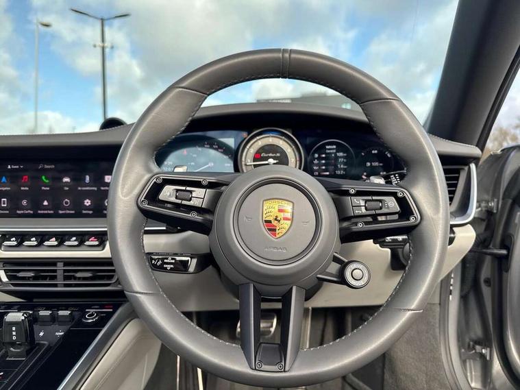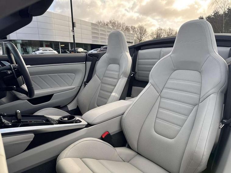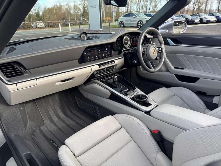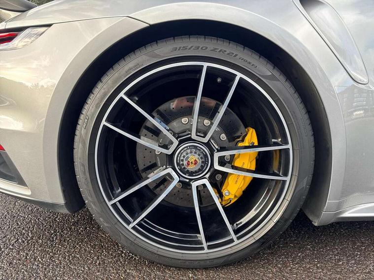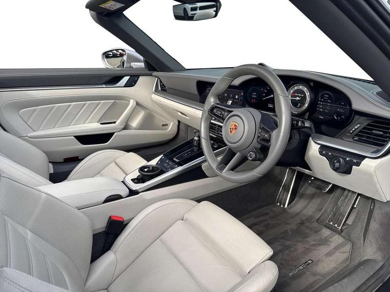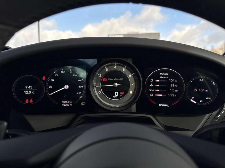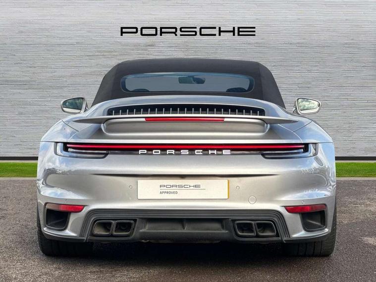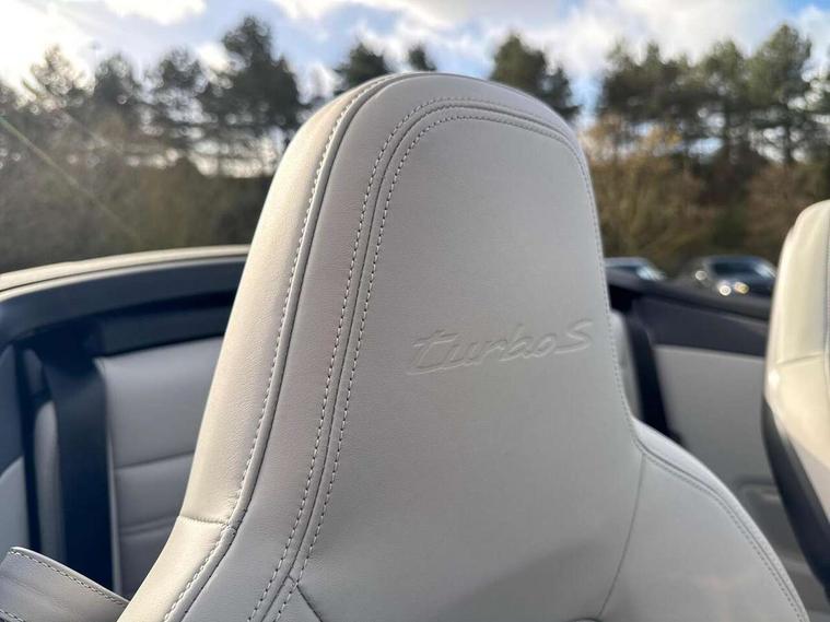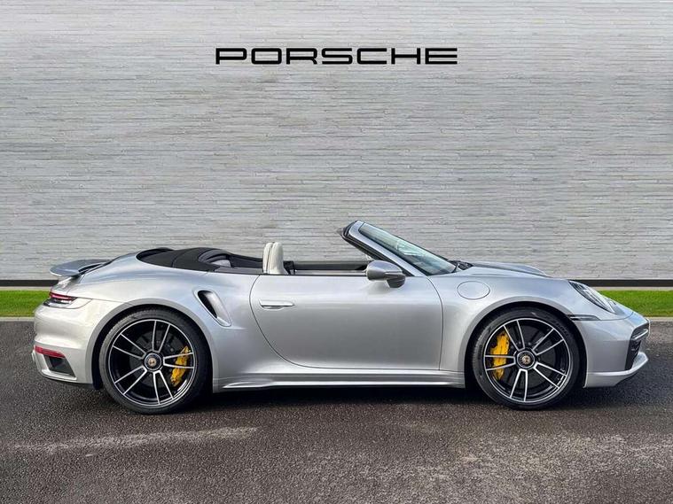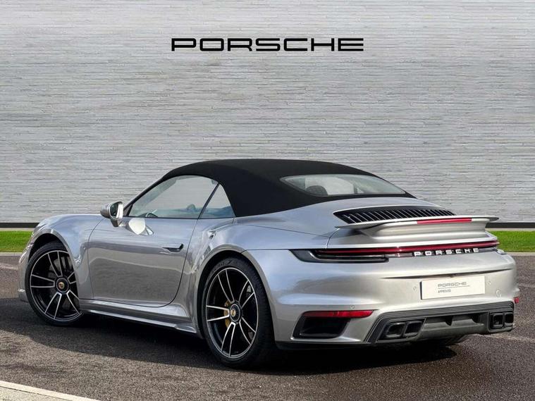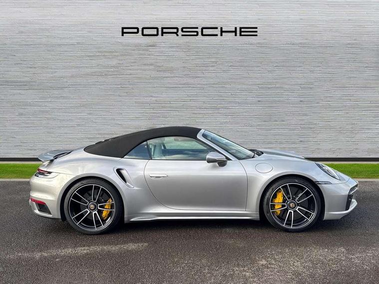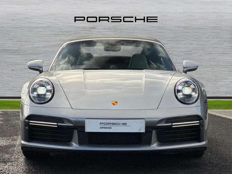 2 USB-C ports in center console main storage compartment lid, socket (12-volt) in passenger footwell, Automatic start/stop system, eCall emergency system, Gear indicator in rev counter, Instrument cluster with central analogue rev counter and two 7-inch TFT displays, Music streaming and online radio, remote services and a wide range of other Porsche connect services, Porsche Communication Management (PCM) including online navigation module, mobile phone preparation, audio interfaces and voice control system, Porsche Communication Management (PCM) with high resolution 10.9-inch touchscreen centre display, Porsche WET Mode, Rev counter with digital gear display and vehicle speed with illuminated "turbo S" logo, Service indicator, Smartphone integration with Apple CarPlay and Android auto, Stationary management with HOLD function, Trip computer, Warn and brake assist including pedestrian protection, 8 Speed Porsche Doppelkupplung (PDK), All wheel drive with map controlled multi plate clutch Porsche Traction Management (PTM), Aluminium block and cylinder heads, Direct fuel injection (DFI) piezo injectors, Expansion intake manifold, Four valve per cylinder, Integrated dry-sump lubrication with an on-demand oil pump, Lightweight starter battery, McPherson front axle with anti roll bar and rear axle steering, Multi-link rear axle with anti-roll bar, Porsche dynamic chassis control, Porsche Stability Management (PSM), ABS with extended brake functions, Porsche Torque Vectoring Plus (PTV Plus) fully variable electronically controlled rear differential lock and fully variable torque distribution, Turbocharger with variable turbine geometry (VTG) and intercooler, Two gasoline particulate filter, Two three-way catalytic converters and on-board diagnostics for monitoring emission control system, VarioCam Plus variable valve timing and switchable valve lift, Water cooled with thermal management, 2 USB ports in centre console, DAB Digital radio, "PORSCHE" lettering integrated in taillight strip, Automatic headlight activation including welcome home lighting, Automatically dimming interior and exterior mirrors with integrated rain sensor, Body side air intakes, Door handles and accents in light silver, interior decorative finishers in matt carbon, Dual LED auxiliary light units in front bumper with position lights, direction indicators and side indicators, Electric window lifts with one touch operation and door seal protection, Electrically adjustable heated exterior mirrors on door waist rails, aspherical on driver's side, Engine compartment cover grille with vertical slats in silver colour (high-gloss), Folding exterior mirrors with courtesy lighting, Front apron with side air intakes including active cooling air flaps and air blades in black, Fully automatic fabric hood, electrically operated heatable glass rear screen, operable approx 31mph and convenient operation by key remote, Green tinted thermally insulated glass, Heated rear windscreen, Integral electrically powered wind deflector, Intelligent lightweight body in Aluminium/Steel composite construction, LED daytime running lights, Memory function for both exterior mirrors, steering column, seat position on driver side and other personalised in-car settings, Porsche Active Aerodynamics (PAA) with active front spoiler, active cooling air intake flaps and active rear wing, Power rear side windows, Rear apron and rear apron lower section in stainless steel with integrated tailpipe trims and intercooler air outlets, Rear boot, Rear bumper with integrated tailpipe trims and intercooler air outlets, Rear lid grille with vertical slats in silver gloss black, Rear side panel with air intakes for the engine, Retractable door handles, Taillight strip including integrated parking lights and rear fog-light, Windscreen washer system with aero wiper blades and washer jets, 12V socket in front passenger footwell, 2 cup holders with 1 on passenger side and centre console compartment, 2 individual seats in 2nd row, 2+2 seater with wide 911 Turbo body and rear engine, Ascending centre console with storage compartment, Clothes hooks on seat backrests, Driver and front passenger illuminated vanity mirrors, Electric adjustment of backrest angle, seat height, fore/aft position, squab angle, seat cushion length, seat and side bolsters and lumbar support, Embossed leather on front center seat, side bolsters and front seat headrests, Front and rear head restraints, Headrests with embossed turbo S logo and backrest (front/rear) with quilted seat centres, Heated front seats, ISOFIX child seat mounting points on passenger seat, LED door lights, LED footwell lights, LED glove compartment lighting, LED ignition light, LED luggage compartment lighting, LED orientation light, LED reading lights, Lockable glove compartment, Luggage compartment at front, Luggage compartment lid release, Particle/pollen filter with active carbon filter, PDK gear selector with automatic mode, manual gear selection via shift paddles on the steering wheel, Roof hood lining in fabric, A-pillar trims in leather, Single front passenger seat, Split folding rear seat backrests, Sport Chrono clock with distinguishable dial, Storage compartment in centre console, Storage compartments in each doors, Two individual cupholders 1x as inlet in centre console and 1x passenger side, Two zone auto climate control with separate temperature settings for driver/front passenger, automatic air recirculation mode incl air quality sensor, Driver memory pack - Turbo S, Auto deploying roll over protection system, Ceramic composite brake discs with 420mm diameter at front and 390mm at rear, internally vented and cross drilled, Electric parking brake, Electromechanical power brake, Full size two stage airbags for driver and front passenger, Pedestrian protection, Porsche side impact protection system includes side impact protection in doors, curtain, head/thorax airbags for driver/front passenger in each door, Tyre pressure 