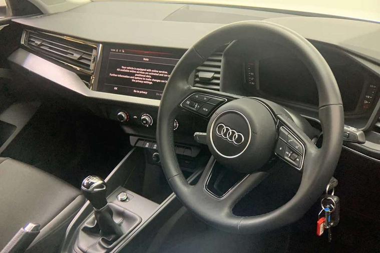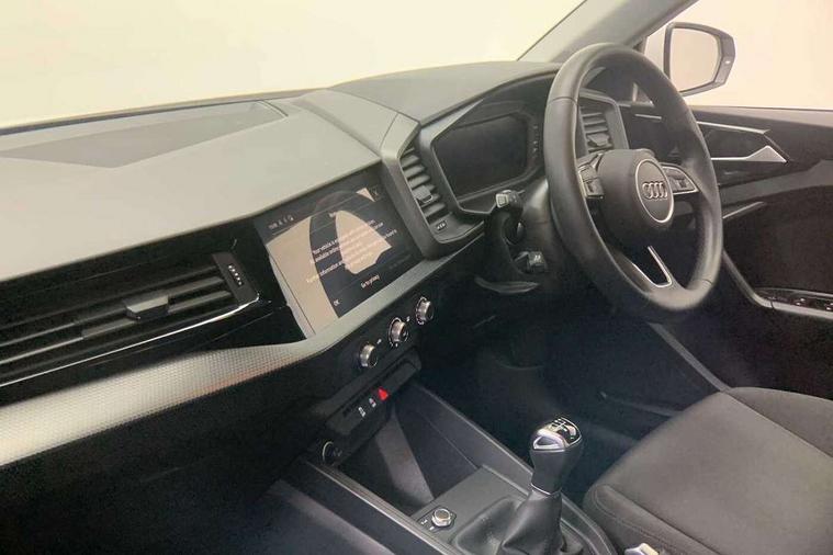 10.25" Digital instrument cluster display classis style instrument dials + speed, odometer, time, outside temperature, telephone menu + fuel level warning, Audi smartphone interface with connect compatible smartphone via USB directly MMI display + Nav, music, third party apps controlled via MMI controller, Automatic start/stop system, Bluetooth interface, Driver's information system, Electromechanical power steering, Emergency e-call, Emergency services call system, Lane departure warning system, Service interval indicator, Speed limiter, Voice control system, Washer fluid level indicator, Dynamic suspension, 1 x SDXC card reader, 2 x USB type C connection points, 6 passive loudspeakers, DAB Digital radio, MMI radio plus with 8.8" colour MMI display screen and MMI touch, Auto dimming rear view mirror, Body coloured bumpers, Body coloured door mirrors, Electric front and rear windows, Electrically adjustable, heated, folding door mirrors with integrated LED side indicator, Front side air inlets with front spoiler lip and rear diffuser in matt black grained, Heat insulating glass windscreen and side windows, Heated rear windscreen, High level LED brake light, LED headlights with LED rear lights + dynamic rear indicators + headlight adjustment and high beam, turning light + LED daytime running lights, Radiator grille in matt black, Rain and light sensors, Rear fog lights, Rear side wing doors, Rear wing door, Rear wiper, 12V socket in centre console with two cup holders, 3 rear seats with headrests, 3 seat bench in 2nd row, 3 spoke leather multifunction plus steering wheel, 40:60 Split folding rear seat or folded fully, Air vents, door handle recesses and centre console in black, Delta cloth upholstery, Driver and passenger seat with manual height adjust with forward and backwards adjustment, Front head restraints, Front passenger seat, Front/rear floor mats, Height and reach adjustable steering wheel, ISOFIX child seat mounting for front passenger and outer rear seats including top tether attachment point of outer rear seats, Leather gear knob with aluminium trim, Leatherette handbrake grip, Luggage compartment light with front and rear reading lights, Manual air conditioning, Titanium grey cloth headlining, Luggage compartment pack - A1, 3x3 point rear seatbelts, Audi pre-sense front with pedestrain and cyclist recognition, Brake assist function, Driver and front passenger airbag with front side and head airbags, Electronic Stability Control including ABS, EBD, ASR and EDL, Front passenger airbag deactivation switch, Hill hold assist, Manual rear child locks, Seatbelt height adjustment for front seats, Seatbelt monitoring, Tyre pressure warning light, Warning triangle and first aid kit, Anti theft alarm, Anti theft wheel bolts and loose wheel warning, Immobiliser, Remote central locking with 2 foldaway keys, Black inlays polygon structure, 15" 5 arm design alloy wheels,