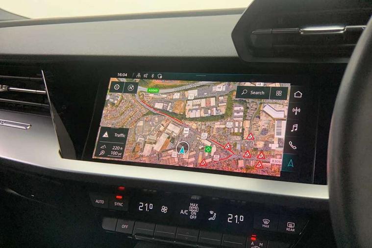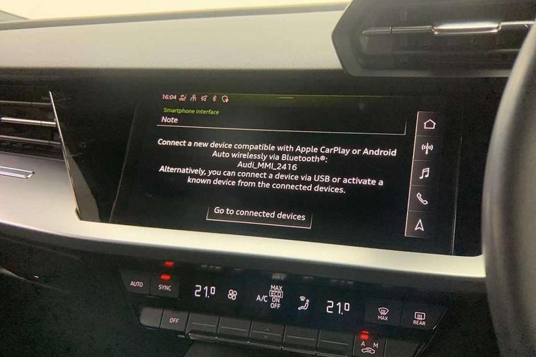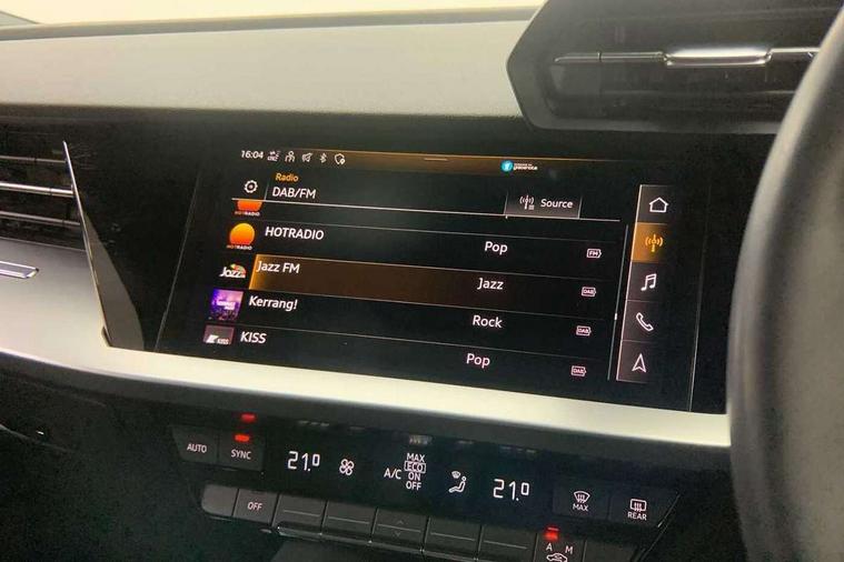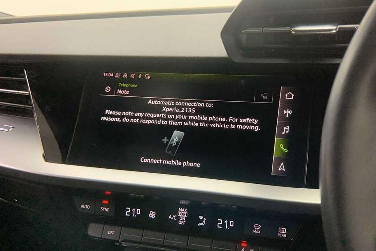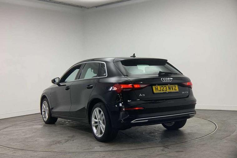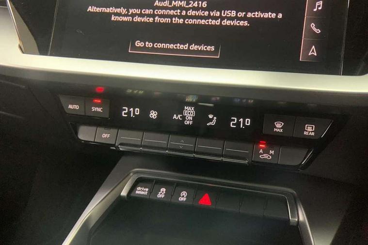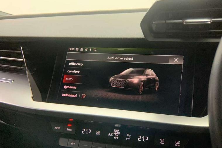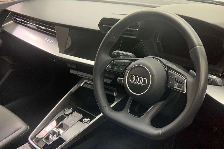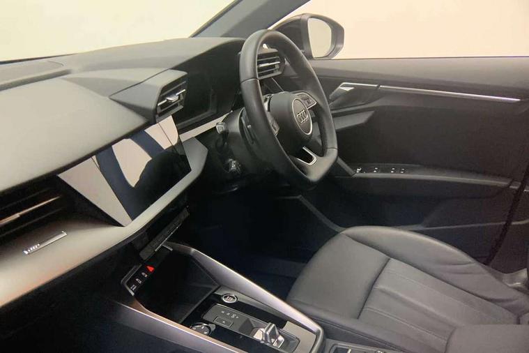 Audi drive select (Auto, Comfort, Dynamic, Efficiency and Individual), Audi smartphone interface, Audi Virtual Cockpit - 10.25" digital and colour instrument cluster, Automatic start/stop system with recuperation, Bluetooth interface, Collision avoidance assistant, e-Call (emergency call), Electromechanical power speed sensitive steering, Lane departure warning system, MMI Navigation Plus with high resolution 10.1" colour touch screen display, Service indicator, Trip computer, Voice control system with natural language interaction, Standard suspension, 2xUSB-C connection with data and charging functions, 6 passive loudspeakers, DAB Digital radio, 3rd brake light, Acoustic glass windscreen, Aluminium window trim, Auto dimming frameless rear view mirror, Body colour exterior mirrors, Body colour roof spoiler, Electrically adjustable/heated/folding/auto dimming door mirrors with integrated LED indications + kerb view function for passenger side, Front electric windows, LED daytime running lights, LED headlights and halogen rear lights, Light and rain sensors, Rear electric windows, Rear side wing doors, Rear window, rear door windows and rear side windows in clear glass, Rear wiper, 12V socket and storage compartment in front centre console, 3 seat bench in 2nd row, 3 spoke leather multifunction steering wheel with paddle shift, 40/20/40 split folding rear seat bench with cupholder, Dual zone electronic climate control, Front and rear centre armrest, Front and rear headrests, Front door sill trims with aluminium inlay, Front/rear floor mats, Height and reach adjustable steering wheel, Interior lighting - Front and rear roof module including reading lights, glove compartment light and right hand side, Luggage compartment floor covering, Manual boot compartment lid, Manually adjustable front seats, Seat side bolsters, Single front passenger seat, Steel grey cloth headlining, Twin leather upholstery, Aluminium interior elements pack - A3 Sportback, Sport styling pack - A3 Sportback, 3x3 point rear seat belts, Audi pre sense front, Driver and front passenger airbag with passenger airbag deactivation, Electronic Stabilisation Control (ESC) including ABS, ASR and EDL, First aid kit with warning triangle and 2 safety vests, Front side airbags with head airbags and interaction airbag, Pre-sense front with pedestrian and cyclist detection, Seatbelt monitoring, Tyre pressure loss indicator, Anti theft alarm, Anti-theft wheel bolts, Electronically operated child lock, Immobiliser, Remote control central locking, Inlays with silk effect paint in platinum grey,