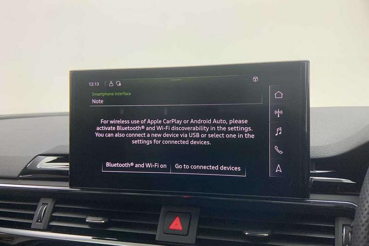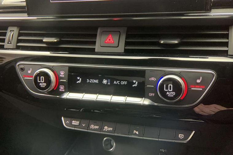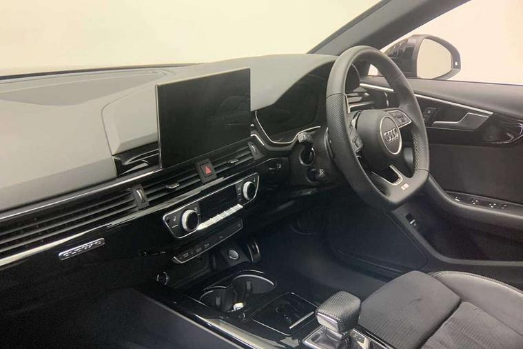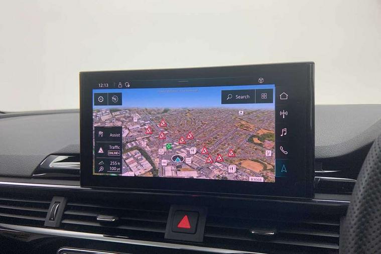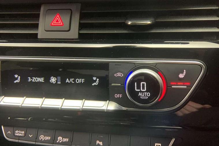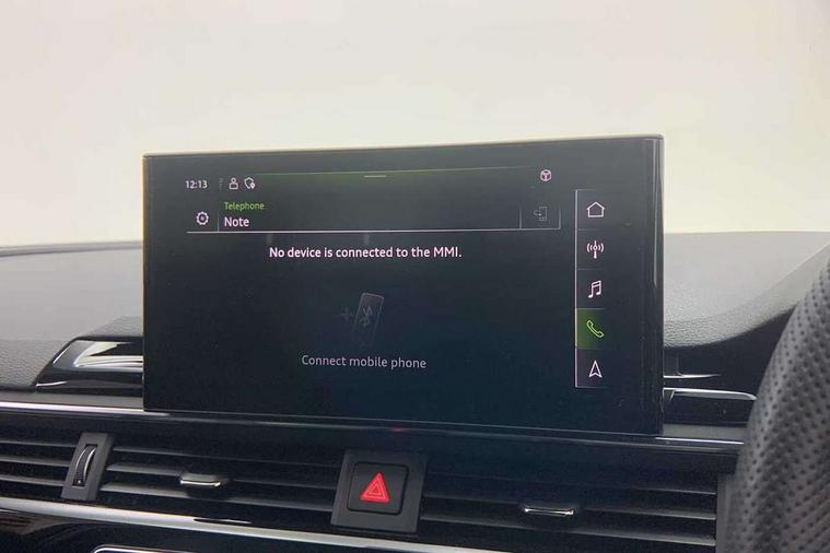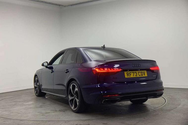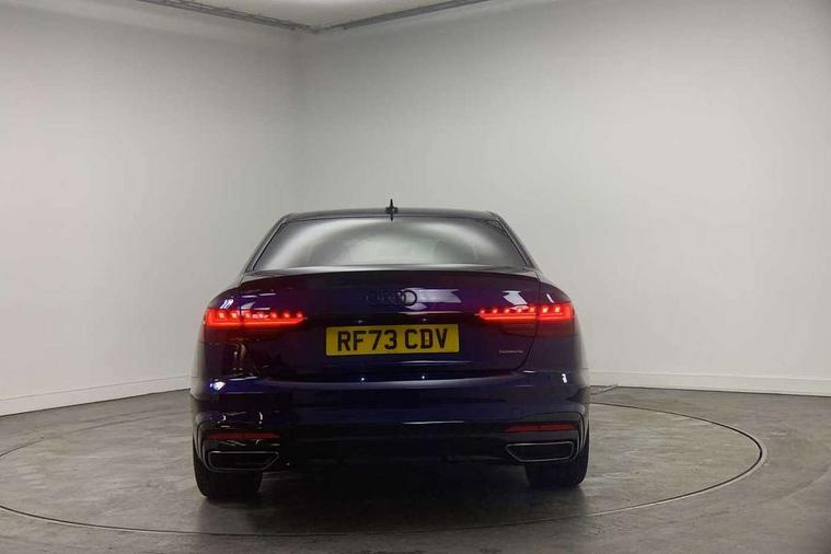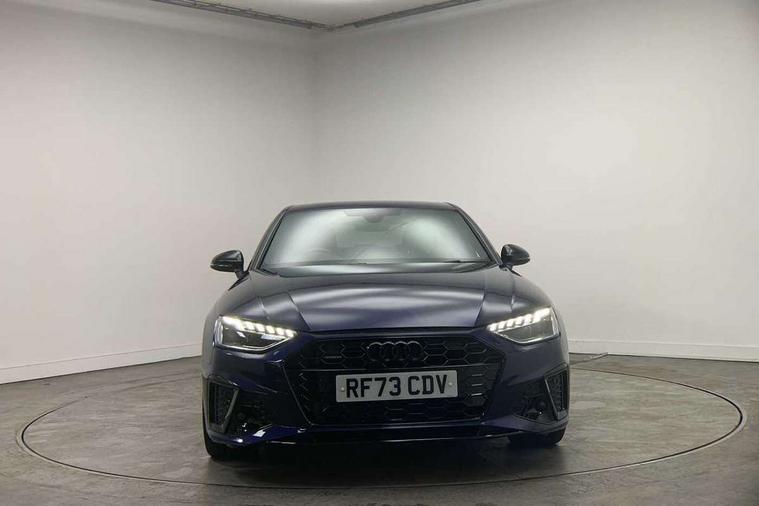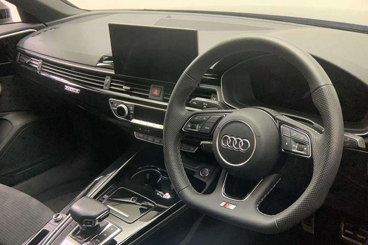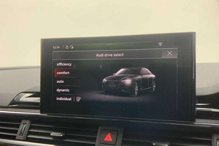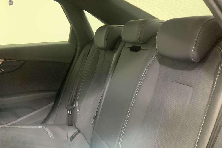 Audi connect safety and service (e-call), Audi drive select, Audi smartphone interface, Audi virtual cockpit, Automatic start-stop system with coasting functionality and efficiency programme, Bluetooth interface, Camera based traffic sign recognition, Electric boot lid release, Electromechanical power steering, Email, calendar and text messages displayed via MMI, Front and rear parking sensors, Lane departure warning, MMI Navigation plus with MMI touch includes 10.1" high resolution colour MMI display, 3D map, Rear view camera, Voice control system, 58 Litre fuel tank, Sports suspension lowered by 23mm, 2 USB charging ports, 8 passive loudspeakers, DAB digital radio reception, Audi beam uses LEDs to project the audi logo onto the ground as you exit your A4, Auto dimming rear view mirror, Black Audi rings and black badging (model name in black badging, no engine badging), Body colour door handles, Body colour front spoiler lip, Body colour side sill trim, Electric adjustable/heated/folding door mirrors with auto dimming, Exhaust tailpipes in high dark chrome, Grained matt black side air inlets with matt aluminium silver inlay, High beam assistant, High gloss black B pillar trims and triangular rear door trim, LED headlights with LED rear lights + dynamic rear indicators + headlight adjustment and high beam, turning light + LED daytime running lights, LED third brake light, Privacy glass, Rain and light sensors, Rear boot, Rear diffuser in matt black with trim strip in matt aluminium silver, Rear side wing doors, Sport front and rear bumpers with side skirts, Variable intermittent front wash/wipe, Windscreen with acoustic glazing, 4 way electric lumbar support for driver and front passenger, 40/20/40 split folding 3 rear seat bench in 3 parts with rear centre armrest, Black carpets, Black cloth headlining, Black perforated leather gearknob, Contrast stitching on seats, steering wheel and gear lever gaiter, Deluxe 3 zone electronic climate control, Front and rear head restraints, Front centre armrest, Heated front seats, Illuminated door sill trims with S logo, ISOFIX child seat mounting and top tether, Manual seat adjustment, Single front passenger seat, Stainless steel pedals and foot rest, Tool kit, Black styling pack - A4 Saloon, LED Interior light pack - A4/S4, 3 rear seatbelts, 6 airbags - Driver, front passenger, curtain and side windows, Attention and drowsiness assist, Electronic Stabilisation Control (ESC) including ABS, ASR and EDL, Hill hold assist, Multi collision brake assist, Pop-up bonnet for pedestrian protection, Pre sense city, Rear door child safety locks, Seatbelt monitoring, Warning triangle and first aid kit, Anti theft alarm, Anti theft wheel bolts, Central locking, Keyless Go, Piano black finish inlay, Tyre repair kit,