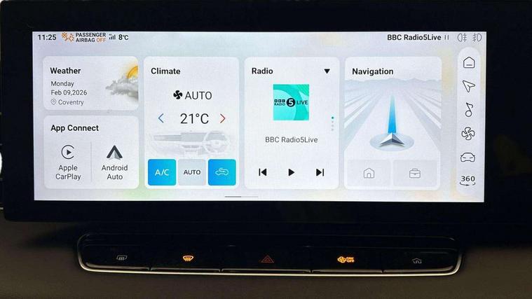 Driver attention alert, 12.3" colour touchscreen, 12.3" Virtual driver information display, 360 degree parking camera, Adaptive cruise control, Android Auto, Apple CarPlay, Blind spot detection, Bluetooth connectivity, Driver memory function, Emergency call service, Forward collision warning, Front parking sensors, Intelligent speed limit assist, iSmart, Lane change assist, Lane keep assist system (LAS) with Lane departure warning system (LDWS), Live services, PAS, Power tailgate, Rear cross traffic alert, Rear parking sensors, Satellite navigation system, Traffic jam assist, Trip computer, Wireless charging, 4 USB ports 2 front and 2 rear, 8 Speaker audio system, DAB audio, Auto dimming rear view mirror, Automatic headlights, Electric adjustable/heated/folding door mirrors with memory, Follow me home headlights, Front and rear aero wiper, Front and rear electric windows with one-touch up/down, Front fog lights, Intelligent high beam, LED 3rd brake light, LED daytime running lights, LED Headlights, LED rear lights, Rain sensing wipers, Rear privacy glass, Rear side wing doors, Silver roof rails, Vehicle to Load, 12V power sockets, 2nd row 60/40 split fold seat, 3 rear headrests, 3 seat bench in 2nd row, 3 stage heated front seats, 4 way electric adjustable passenger seat, 6 way electric adjustable drivers seat + lumbar support, Dual zone automatic air conditioning, Front and rear reading lights, Front centre sliding armrest with storage compartment, Front headrests, Height and reach adjustable steering wheel, ISOFIX restraints on outer rear seats x2, Multi function steering wheel, Single passenger seat, 3x3 point rear seatbelts, ABS/EBD, Active emergency braking with pedestrian/Bicycle detection, Anti rolling protection, Door open warning, Drivers seatbelt reminder, Dual front airbags, Electric parking brake with auto hold function, ESP, Front and rear passenger seat belt reminder, Front centre airbag, Front passenger airbag deactivation switch, Front seat belt height adjuster, Front seatbelts (3-point + pretensioner + load limiter), Front side airbags, Hill descent control, Hill launch assist, Manual rear child locks, Rear outer seatbelt pretensioner and load limiter, Side curtain airbags, Tyre pressure monitoring system, Alarm system and engine immobiliser, Keyless entry and push button start system, Remote central locking, Speed sensing door locks, 19" Blade diamond cut alloy wheels, Tyre repair kit,