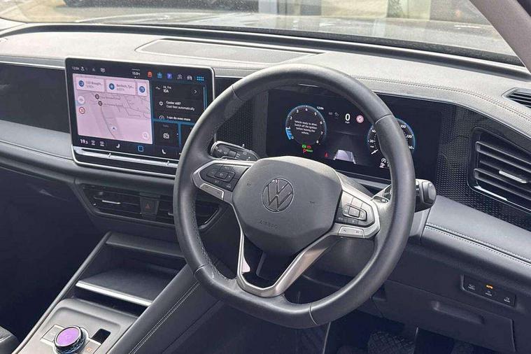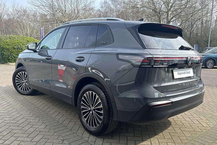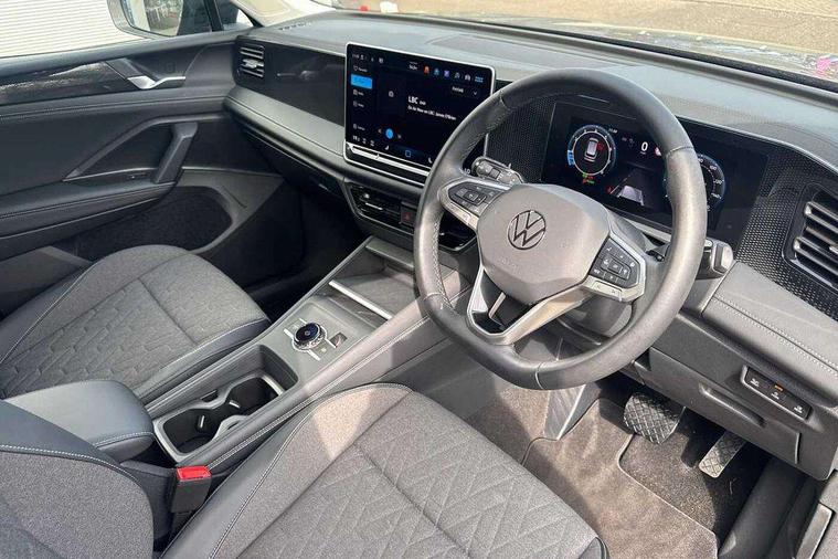 Adaptive cruise control (ACC), Advanced driver attention and drowsiness monitor, Bluetooth mobile phone interface, Car2X technology, Digital Cockpit Pro - 10.25" high resolution dash display screen with customisable menus and information, Dynamic road sign display, E-Sim card for online connectivity, eCall emergency call service, Front Assist - Autonomous emergency braking with pedestrian and cyclist monitoring, Lane change system, Side assist, Rear traffic alert and Exit warning system, Lane keeping system Lane Assist, Multifunction front facing camera, Oncoming vehicle braking when turning including swerve support, Park assistance plus with front and rear parking sensors, Power assisted steering with speed sensitive, Start/stop system with regenerative braking, Warning signal and warning light for front and rear seatbelts not fastened, Wireless App-Connect, Front wheel drive, Digital radio reception (DAB), Diversity antenna for FM reception, Ambient lighting with logo projection, Auto dimming interior rear view mirror, Automatic headlight control system, Body coloured bumpers and air intake with chrome trim, Body coloured door handles, Body-coloured exterior mirror housings, Coming/leaving home lighting function, Heat insulating glass in side and rear windows, Heat insulating windshield, Heated rear window, High level 3rd brake light, Illuminated door handle recesses, Illuminated lightline between headlamps, Rain sensor windscreen wipers, Rear fog light on one side, reversing light on both sides, Rear side wing doors, Rear wiper, 12V outlet in center console rear and in luggage compartment, 12V socket in centre console, 3 bench rear seats in 2nd row, Air care climatronic 3 zone air conditioning system with rear air conditioning control panel, Carpet mats, front and rear, Centre console with illuminated storage compartment with sliding cover and two drinks holders, Ceramique headlining, Door and side trim panel in foam film and woven fabric, Front centre armrest, ISOFIX anchors for child seats on outer rear seats and front passenger seat compatible with i-Size, Mechanical rear seat release, Power adjustable lumbar support in front, Rear bench seat, split folding, longitudinally movable and folding with load-through hatch and centre armrest, Safety optimised front head restraints, Single front passenger seat, Sun visors with illuminated vanity mirrors, Three rear head restraints, Variable luggage compartment floor, Comfort package with park assist plus and Safelock - Tiguan, Design package - Tiguan, 3 point seat belt for centre rear seats, 3 Point seat belts in front with pretensioners, 3 point seatbelts in outer rear with ECE label, Driver and front passenger airbag with front passenger airbag deactivation, Electronic parking brake with auto hold, Front and rear curtain airbags, Front and rear side airbags, Front centre airbag, Front disc brakes, Manual child proof rear door locks, Rear disc brakes, Two tone horn, Warning triangle, Anti theft wheel bolts, Soul instrument panel,