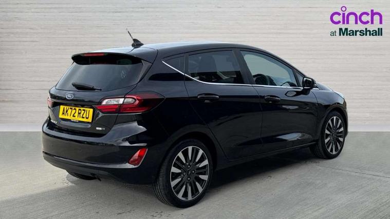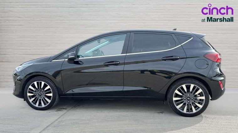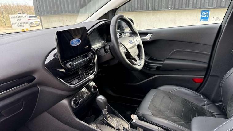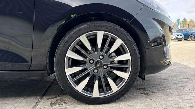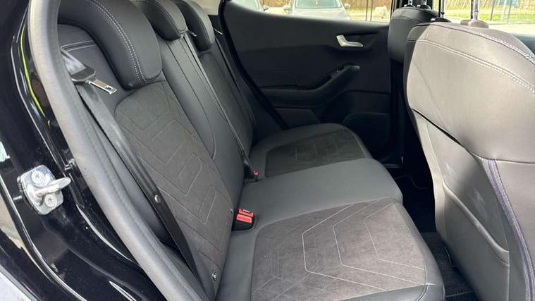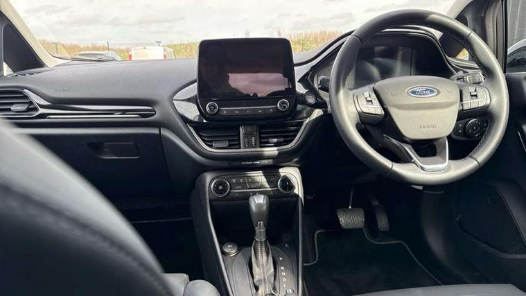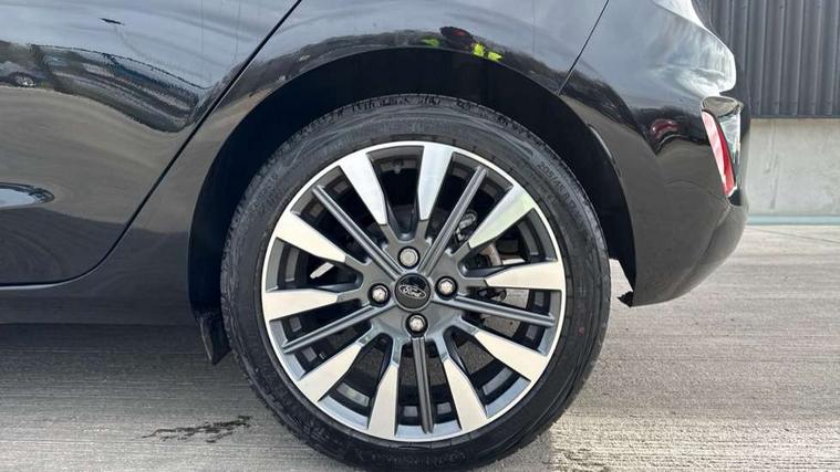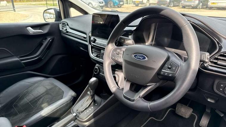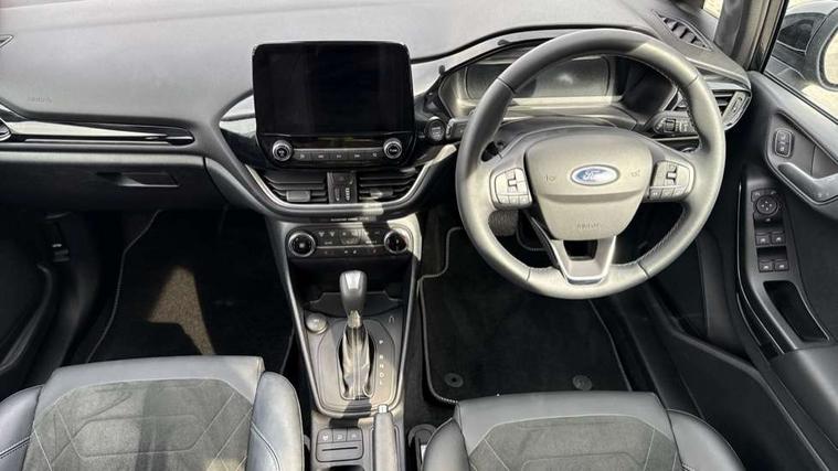 4.2" TFT instrument cluster screen, Bluetooth system, Electric power steering, Ford easy fuel, Rear parking distance sensors, Selectable drive modes (Normal, Sport, Track), Traffic sign recognition, Trip computer, 2 USB ports, Auxiliary input socket, B&O Premium audio system with 8" touchscreen, 10 speakers, 360 degree sound system, Ford SYNC 3 navigation system and Ford pass connect, DAB Digital radio, Steering wheel mounted controls, Auto high beam, Body colour bumpers, Body colour door handles, Body colour rear spoiler, Body coloured electrically operated and heated door mirrors with side indicators, Chrome beltline trim, Chrome front grille, Chrome lower window surround, Cornering front fog lights, Electric front windows/one touch facility, Electric rear windows, LED Night signature to rear lights, Power foldable door mirrors with puddle lights, Quickclear heated windscreen, Rain sensing wipers and auto dimming rear view mirror, Rear privacy glass, Rear wiper, 3 spoke leather trimmed steering wheel with audio control, 60/40 split folding rear seat, Adjustable head restraints, Boot carpet, Centre console with opening armrest, 2x cupholders, 12v and USB, Chrome inner door handles, Drivers and Passenger lumbar support, EATC - Electronic Auto Temperature control, Footwell illumination, Front floor mats in velour, Front map reading lights, Front seat and rear pockets, Height adjustable passenger seat, Illuminated glovebox, Leather gear knob, LED ambient lighting, Load area light, Luxury woven headliner, Manual 4-way driver seat adjust, Overhead console with sunglasses holder, Pollen filter, Rake/reach adjustable steering wheel, Sensico partial premium upholstery, Sensico wrapped steering wheel, NCAP Pack - Fiesta, 3 point seatbelts on all rear seats, ABS+EBA, Curtain airbags, Driver and passenger airbags, Drivers knee airbag, Electronic stability control with hill start assist, Front passenger airbag deactivation, Front side airbags, Seatbelt warning, Two tone horn, Tyre pressure monitoring system, Ford keyfree system with Keyless entry and keyless start, MyKey system, Remote central locking & engine immobiliser, Thatcham Cat.1 alarm, 17" 8 spoke alloy wheels,