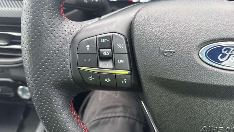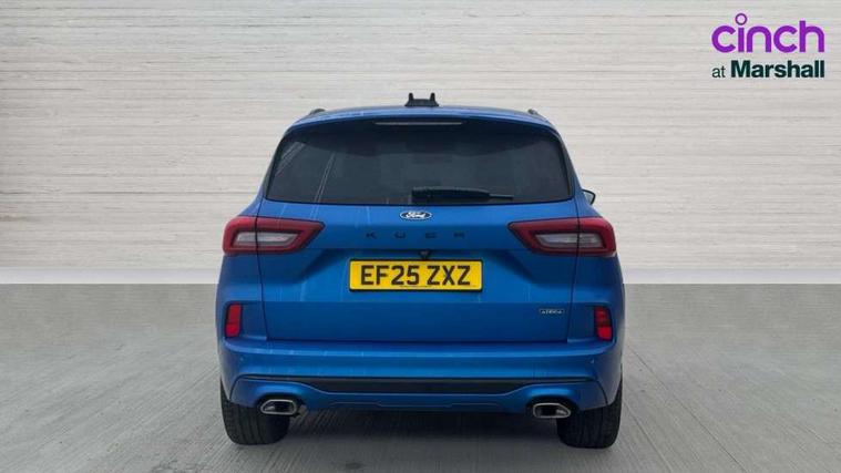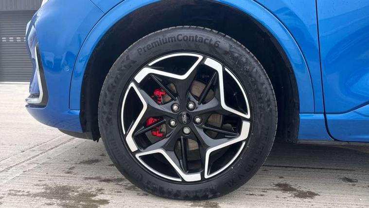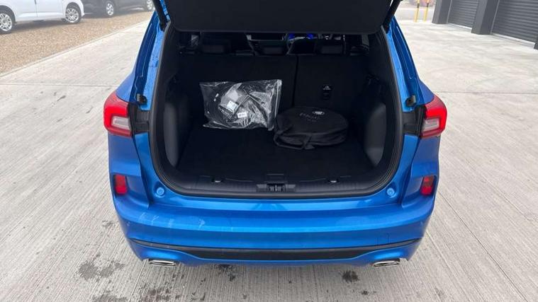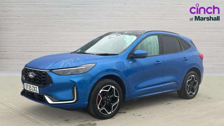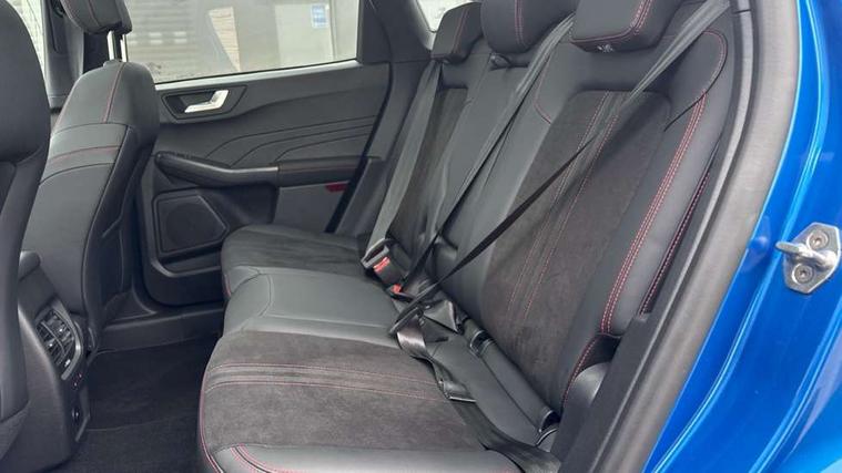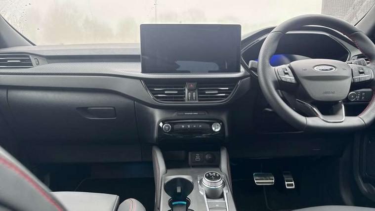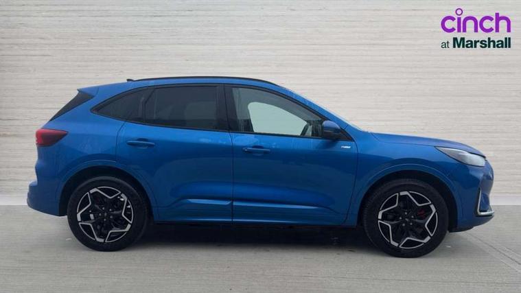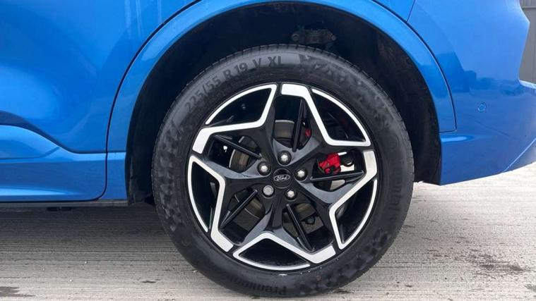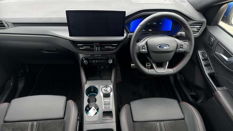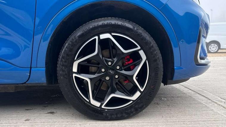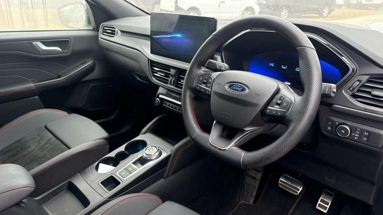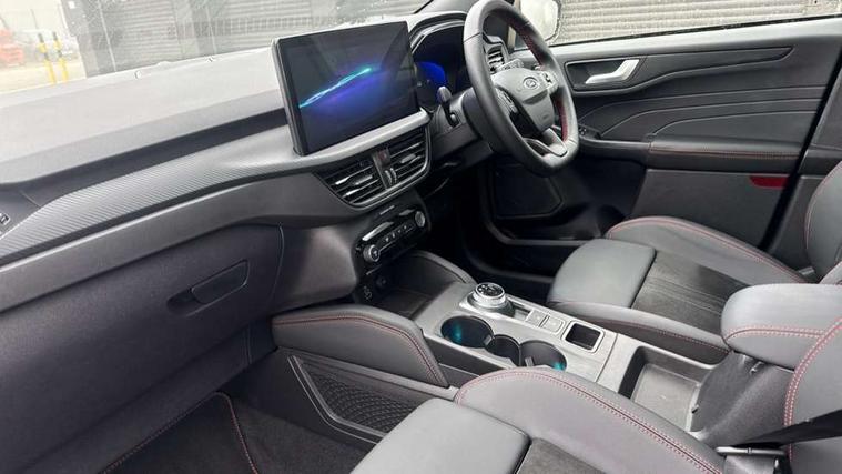 12.3" digital colour instrument cluster, 360 degree view camera, e-Call (emergency call), Ford easy fuel, Ford SYNC 4 Navigation with 13" touchscreen, DAB radio, emergency assistance, Andriod Auto/Apple CarPlay, 5G modem & Ford Pass connect, Front and rear parking sensors, Hands free power tailgate, Lane centering assist, Lane keeping aid with lane departure warning, Power assist steering, Selectable drive modes, Service interval indicator, Sports suspension, Twist beam rear suspension, B&O premium audio system with 10 speakers, subwoofer and 2 USB ports, Auto headlamps with high and low beam, Black roof rails, Body colour bumpers, Front LED fog lamps, Large rear spoiler, LED daytime running lights, LED rear lights, Pop out door edge protectors, Power front/rear windows with global close, Power heated folding door mirrors with puddle lights, memory function and camera, Power opening panoramic roof, Quickclear heated windscreen, Rain sensing wipers, Rear privacy glass, Rear side wing doors, Rear wiper, ST-Line body styling kit, Third brake light, 12 way ergonomic power adjust driver's seat with memory (AGR certified), 12 way ergonomic power adjust passenger seat (AGR certified), 2nd row sliding seats, Electronic automatic temperature control (EATC), Front and rear head restraints, Partial premium touch sensico upholstery, Rear centre head restraint, Single front passenger seat, Sports seats, Driver assistance pack with intelligent adaptive cruise control - Kuga FHEV/PHEV, Winter pack - Kuga, 3x3 point rear seatbelts, Airbags - front driver/passenger, front and rear curtain, Drivers knee airbag, Dynamic brake support, Electronic stability control (ESC) and ABS, Evasive steering assist, Ford MyKey Gen 2 safety system, Manual child proof rear door locks, Pre collision assist with autonomous emergency braking, Rear seat Occupancy alert, Red brake calipers, Tyre pressure monitoring system, Engine immobiliser, Keyless entry and Ford power start button (Keyless start), Locking wheel nuts, Remote powered central double locking doors, Thatcham category 1 alarm,