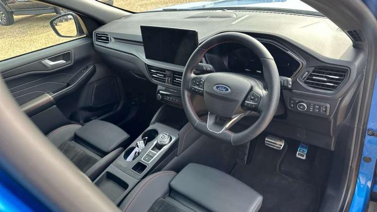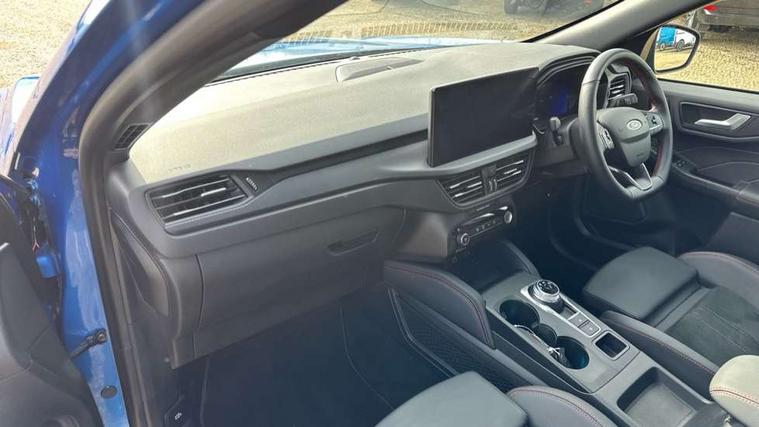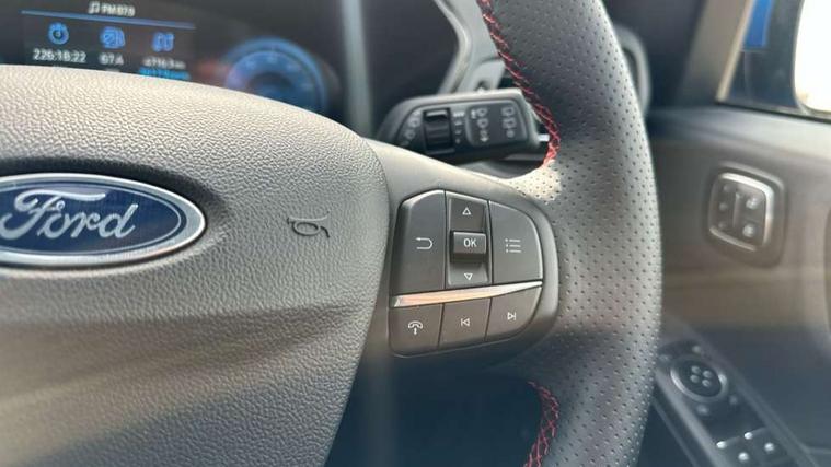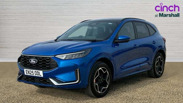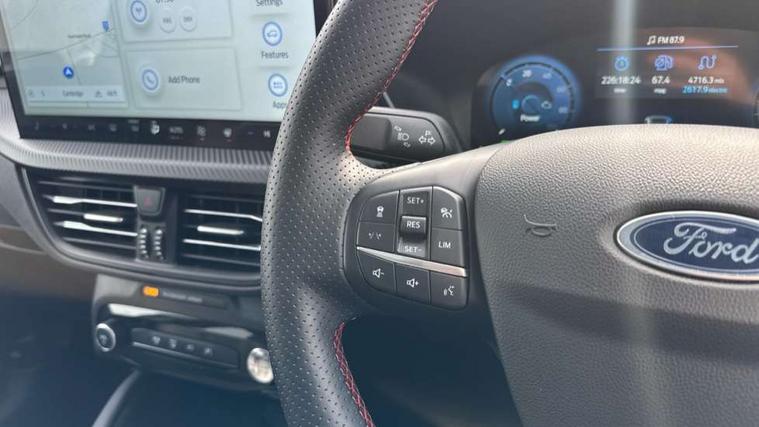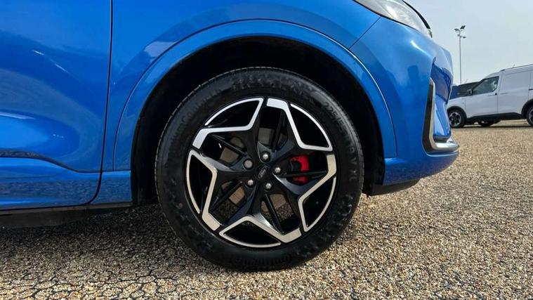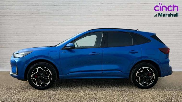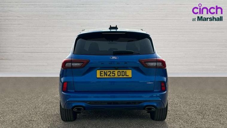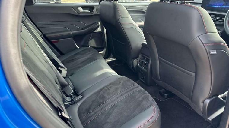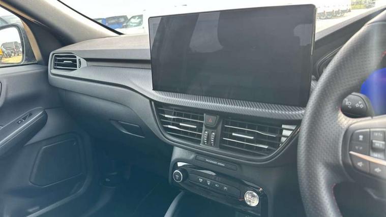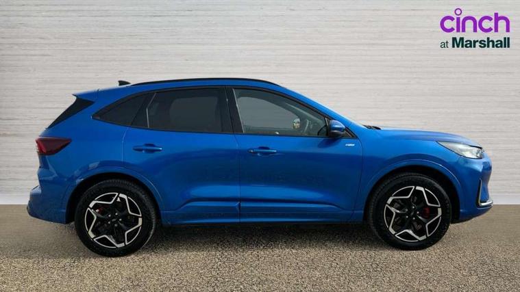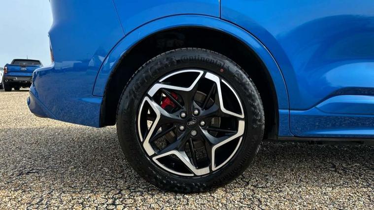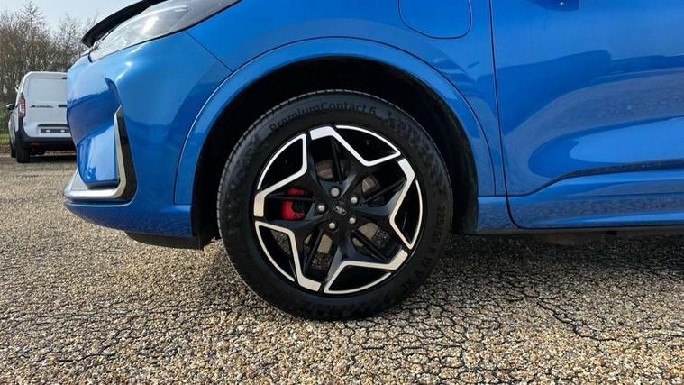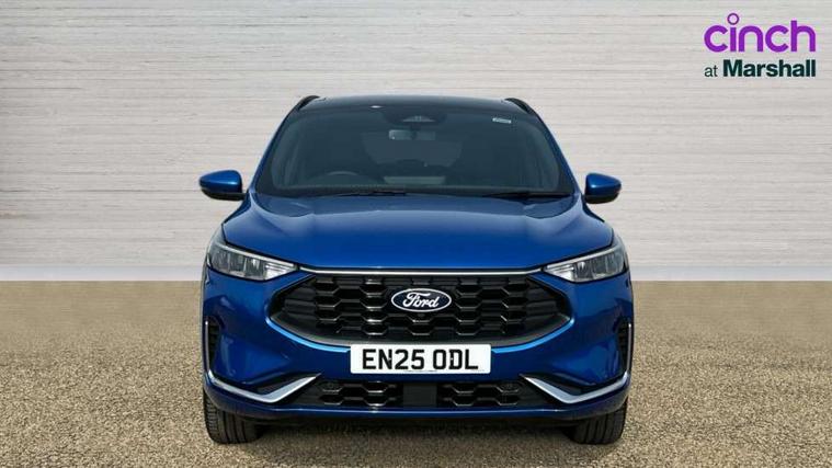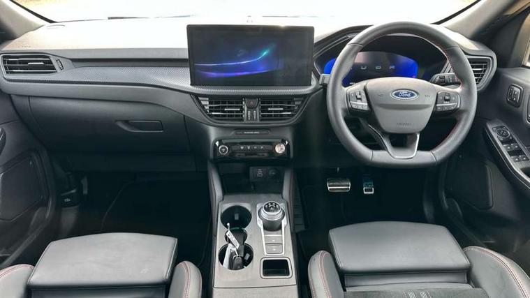 12.3" digital colour instrument cluster, 360 degree view camera, e-Call (emergency call), Ford easy fuel, Ford SYNC 4 Navigation with 13" touchscreen, DAB radio, emergency assistance, Andriod Auto/Apple CarPlay, 5G modem & Ford Pass connect, Front and rear parking sensors, Hands free power tailgate, Lane centering assist, Lane keeping aid with lane departure warning, Power assist steering, Selectable drive modes, Service interval indicator, Sports suspension, Twist beam rear suspension, B&O premium audio system with 10 speakers, subwoofer and 2 USB ports, Auto headlamps with high and low beam, Black roof rails, Body colour bumpers, Front LED fog lamps, Large rear spoiler, LED daytime running lights, LED rear lights, Pop out door edge protectors, Power front/rear windows with global close, Power heated folding door mirrors with puddle lights, memory function and camera, Power opening panoramic roof, Quickclear heated windscreen, Rain sensing wipers, Rear privacy glass, Rear side wing doors, Rear wiper, ST-Line body styling kit, Third brake light, 12 way ergonomic power adjust driver's seat with memory (AGR certified), 12 way ergonomic power adjust passenger seat (AGR certified), 2nd row sliding seats, Electronic automatic temperature control (EATC), Front and rear head restraints, Partial premium touch sensico upholstery, Rear centre head restraint, Single front passenger seat, Sports seats, Driver assistance pack with intelligent adaptive cruise control - Kuga FHEV/PHEV, Winter pack - Kuga, 3x3 point rear seatbelts, Airbags - front driver/passenger, front and rear curtain, Drivers knee airbag, Dynamic brake support, Electronic stability control (ESC) and ABS, Evasive steering assist, Ford MyKey Gen 2 safety system, Manual child proof rear door locks, Pre collision assist with autonomous emergency braking, Rear seat Occupancy alert, Red brake calipers, Tyre pressure monitoring system, Engine immobiliser, Keyless entry and Ford power start button (Keyless start), Locking wheel nuts, Remote powered central double locking doors, Thatcham category 1 alarm,