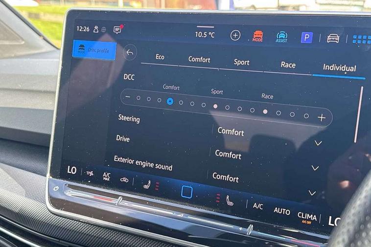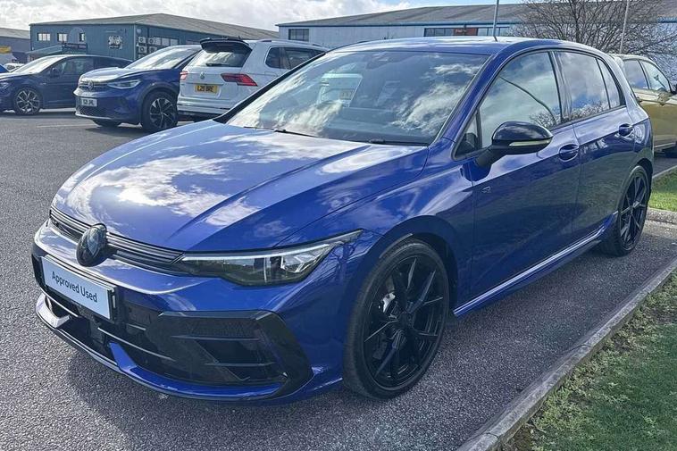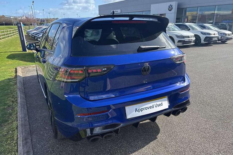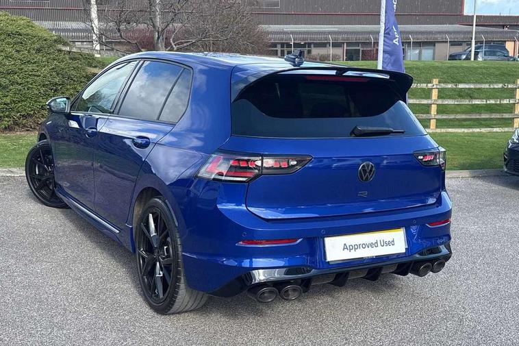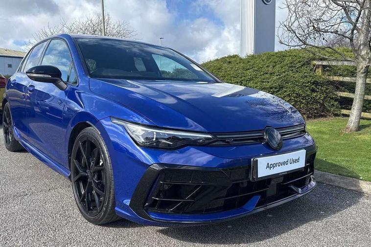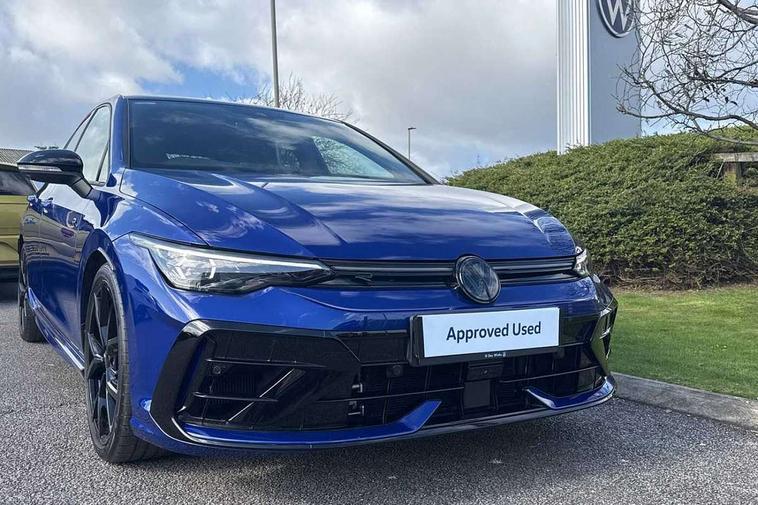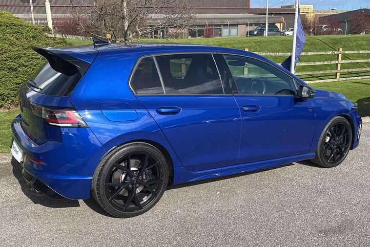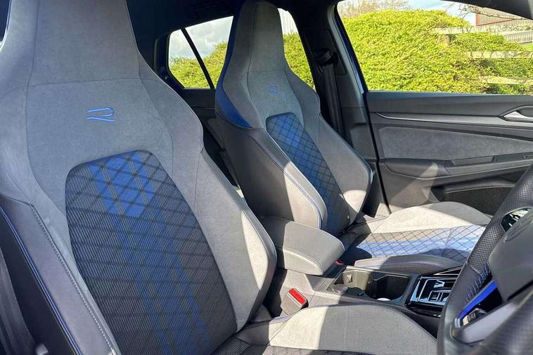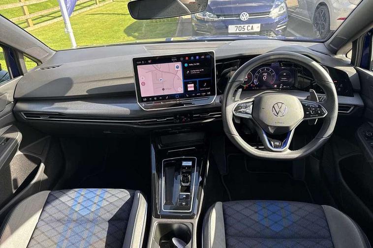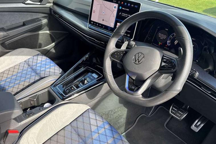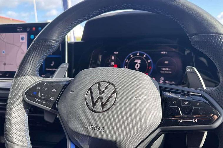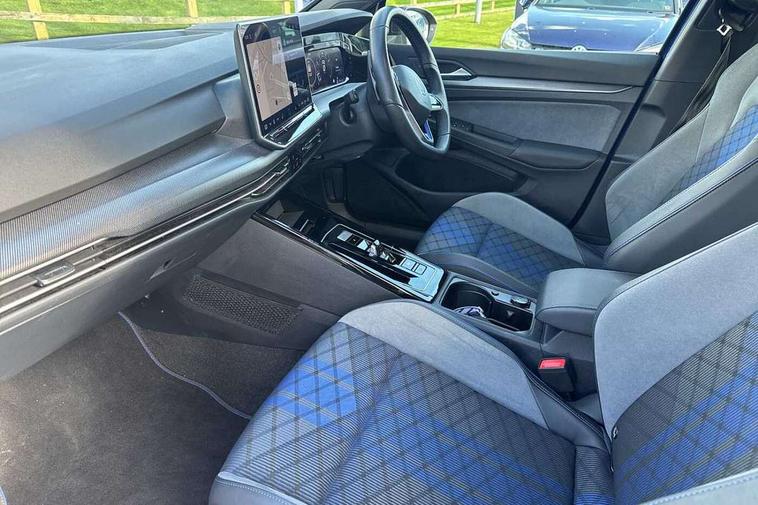 Activated carbon canister, Adaptive cruise control (ACC), Advanced driver attention and drowsiness monitor, Dynamic road sign display, E-Sim card for online connectivity, eCall emergency call system, Electronic maximum speed limit increased to 270 km/h, includes driving Modes 'drift' and 'special', larger roof spolier and GPS laptimer + G-Meter, Multi-color Digital cockpit pro, selection of different info profile possible, Multifunction front facing camera for distance control, Navigation system, Oncoming vehicle braking when turning including swerve support, Preparation for light assist system, Progressive steering, Side assist blind spot lane change system, rear traffic alert and exit warning system, Speed limiter, Speedo, rev counter, electronic odometer, trip, service interval display, exterior temperature and fuel gauge, Traffic jam assist, Voice enhancer and voice control, Warning signal and warning light for front and rear seatbelts not fastened, We connect plus preparation, We connect preparation, Wireless app connect, All wheel drive - 4Motion, Petrol Particulate Filter, Sports suspension, Start-stop system with battery regeneration (recuperation - energy recovery during braking), XDS electronic differential lock for improved traction and handling, 2 USB C ports in front, 2 USB charging sockets on the centre console in the rear charging capacity upto 45W, Comfort telephony + wireless charging, without wireless aerial connection, Digital radio reception (DAB), Diversity antenna for FM reception, Gaming platform via car app, Infotainment system with 12.9" display, Mobile phone interface with inductive charging feature, 3rd brake light, Auto dimming rear view mirror, Auto headlights, Automatic headlamp activation with Coming home and Leaving home feature, Black badge on B-pillar, Black mirror caps, Black strips on radiator grille and headlights, Body colour door handles, Darkened headlights, Darkened R Logos and VW logos in front, rear and on fender, Exhaust system with black tailpipe, Exterior ambient lighting with illuminated lighting animation and wake up/goodbye scenario, Exterior mirrors convex on the left and aspherical on the right, Front and rear electric windows, Front fog lamps and cornering light, Heat insulating windshield made of laminated glass, LED daytime running lights, LED matrix headlights with ambient light V2, advanced high beam, dynamic range contol with cornering, LED rear lamp with indicator, poor weather, R name plate, Rain sensor, Rear fog light on one side and reversing lights on both sides, Rear side wing doors, Rear tinted glass 65% light absorbing from B pillar backwards, Rear windscreen washer and wiper with interval delay, Remote electrically foldable door mirrors, puddle lights and reverse activated passenger's door mirror, Welcome light with surround lighting, 12V socket in front centre console, 12V socket in luggage compartment, 3 rear head restraints, 3 seat bench in 2nd row, 30 colour ambient lighting, illuminated center console storage compartment in front, Air care climatronic 3 Zone automatic climate control with rear air conditioning control panel, Aluminium gearshift handle, Brushed stainless steel pedals, Carpet mats, front and rear, Front centre armrest, Integrated front head restraints, ISOFIX anchors for child seats on outer rear bench seats and on front passanger seat compatible for i-Size, Luggage compartment lighting, Rear cupholder and loadthough, Single front passenger seat, Soul black instrument panel, Split folding backrest with centre armrest and unsplit rear seat bench, Storm grey roof lining, Sun visors with illuminated vanity mirrors, Driver assistance pack - Golf DSG Estate/Hatchback, R styling pack - Golf, Technology park and comfort pro package - Golf Hatchback, 3 point height adj front seatbelts + pretensioners, 3 rear three point seatbelts, ABS, Autonomous emergency braking front assist with pedestrian and cyclist monitoring, Child locks on rear doors, Disc brakes in rear incl. brake calipers in black with darkened R-logo, Driver and front passenger airbag with front passenger airbag deactivation, Electronic parking brake with auto hold, ESC (Electronic Stability Control), Extended pedestrian protection measures, Hill start assist, Two tone horn, Tyre pressure loss indicator, Volkswagen roadside assistance, Anti theft wheel bolts, Preparation for alcohol interlock, Wheel hub cover with darkened R-logo,