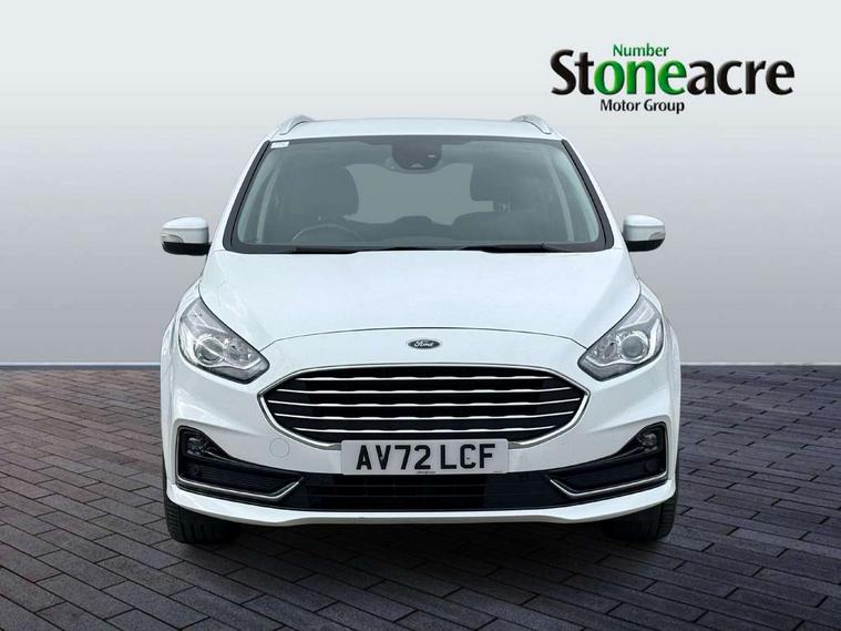 'Ford Power' starter button, Easy fuel capless refuelling system, eCall emergency call system, Ford pass connect embedded modem, Hydraulic PAS, Lane keeping aid - Driver impairment monitor, active steering with lane departure warning, Lights on warning, Outside temperature display, Tailgate, Traffic sign recognition, Trip computer, Unique instrument cluster, Auxiliary input socket, Steering wheel audio controls, Auto dimming rear view mirror, Auto high beam assist, Automatic headlights, Automatic wipers with variable sensitivity adjustment, Body colour bumpers, Body colour door mirrors, Chrome trim to lower side windows, Dual exhaust pipes, Electric front and rear windows + one touch + global open/closing, Front fog lights, Halogen headlight with cornering lights, Headlight courtesy delay, Hybrid badge, LED daytime running lights, LED rear lights, LED third brake light, Lower front grille with chrome surround, Power folding and heated door mirrors, Quickclear heated windscreen, Rain sensor, Rear privacy glass - dark glass to rear windows, Rear side wing doors, Silver roof rails, 2 height adjustable headrests - 3rd row, 230V power outlet in centre console, 2nd row reading lights, 3 height adjustable headrests - 2nd row, 3 individual fold flat 2nd row seats, 3rd row rear seats with manual fold flat, slide/recline and manual easy entry, Ambient interior lighting (excludes 2nd row footwell), Driver/passenger sunvisors with illuminated vanity mirrors + covers, Dual zone air conditioning, Floor mats in all three rows, Front door scuff plates, Front headrests, Front seat armrests, Front seat storage pockets, Front sports seats, ISOFIX attachments for child seats in 2nd row, Leather gear knob, Leather trimmed steering wheel, Manual adjustable front seats + lumbar support, Overhead console with child observation mirror, Pollen filter, Reach + rake adjustable steering column, Rear cupholders, Single passenger seat, Sunglasses storage, Tray tables on front seatbacks, 3 point seatbelts on all seats, ABS, Child proof door locks, Driver and passenger airbags, Driver and passenger side airbags, Drivers knee airbag, Electric handbrake, Electronic brake force distribution, ESP with traction control + emergency brake assist, Pre-Collision assist with AEB, Regenerative braking system, Seatbelt warning, Side curtain airbags, Tyre pressure monitoring system, Immobiliser, Keyless entry, Locking wheel nuts, MyKey system, Remote control central locking, Thatcham Cat.1 alarm, Tyre inflation kit,