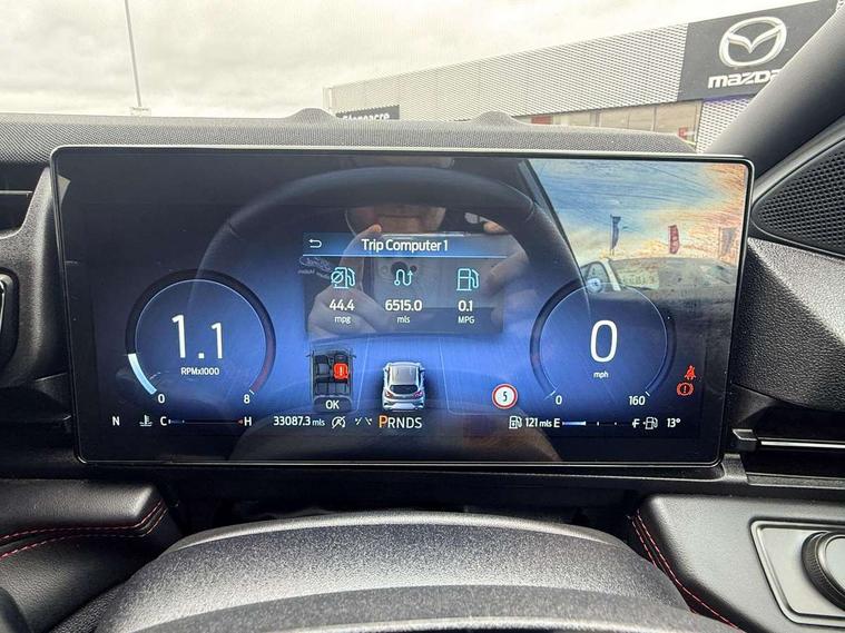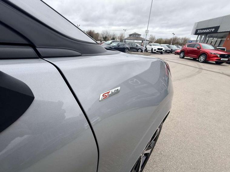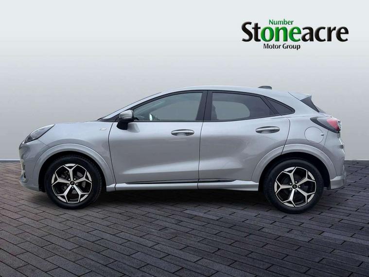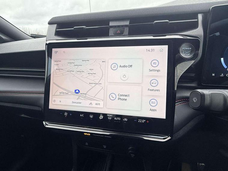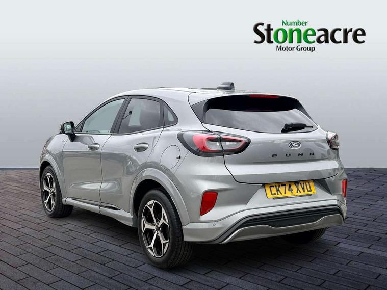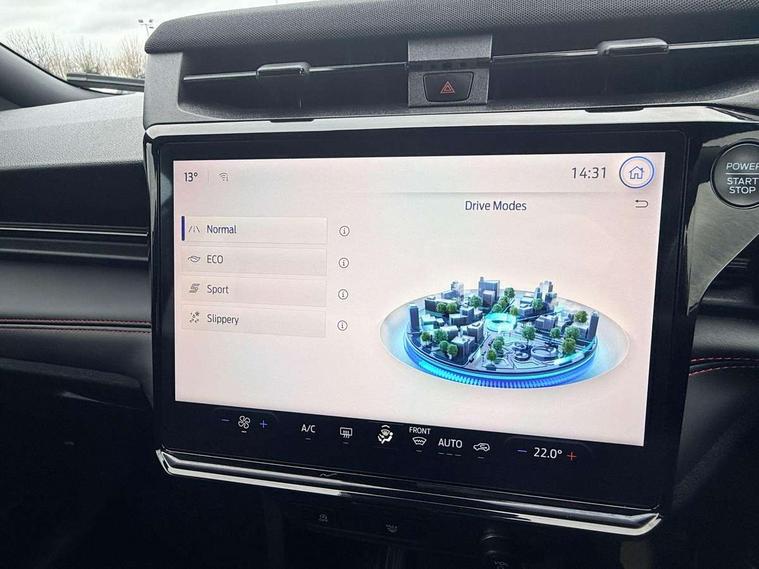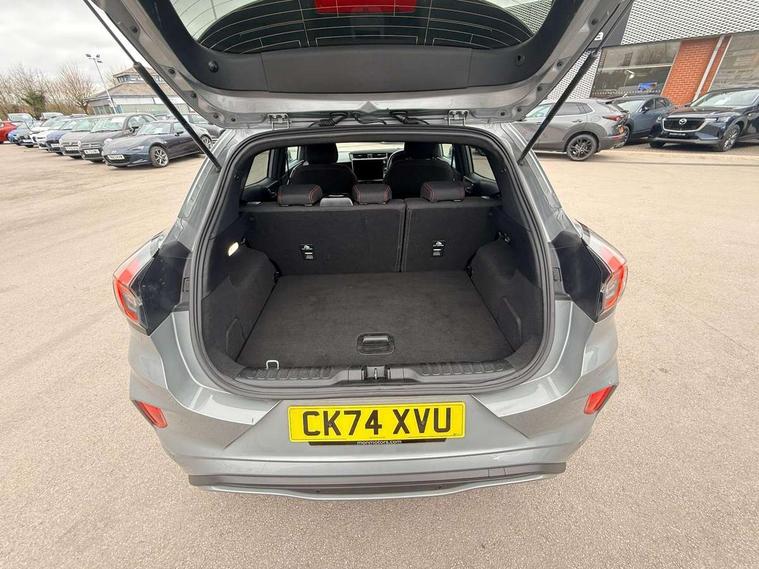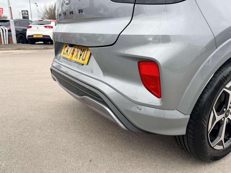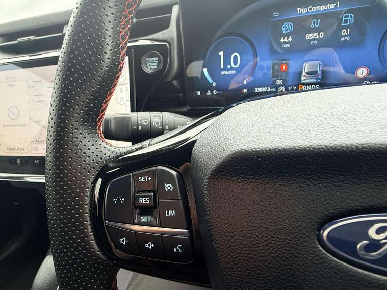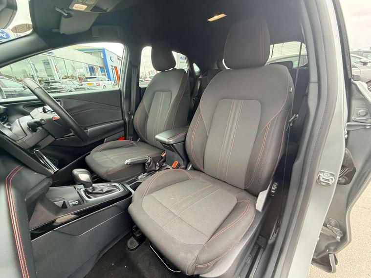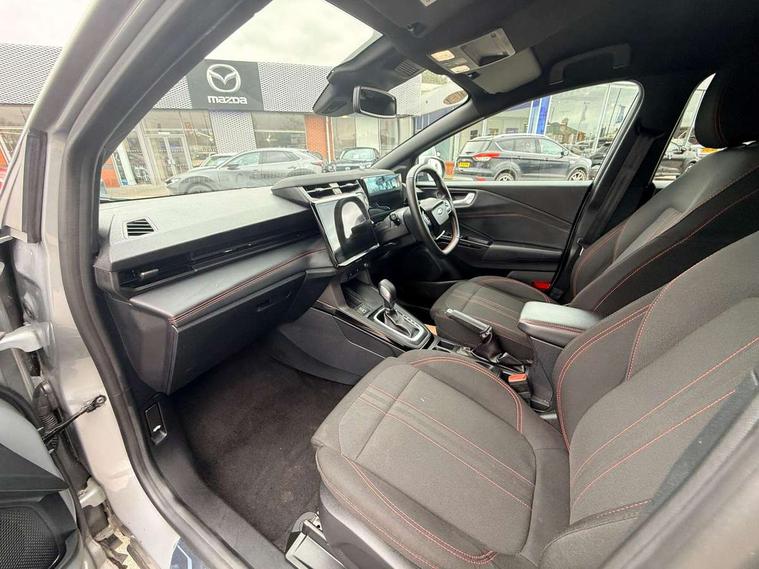 Driver impairment monitor, Emergency call service, Ford easy fuel, Full digital 12.8" instrument cluster, Lane keeping aid with lane departure warning, Power assist steering, Selectable drive modes(Normal, Eco, Sport, Slippery and Trail), Speed sign recognition, Sport suspension, 12" landscape touchscreen display with wireless apple car play and android auto 6 speaker audio system, Ford pass connect and emergency assistance, Ford SYNC4 with connected navigation, Automatic headlights with rain sensing wipers and auto high beam, Front fog lamps, LED daytime running lights, LED rear lamps, LED third brake light, Power foldable heated door mirrors with puddle lamps and puma logo protection, Quickclear heated windscreen, Rear privacy glass, Rear side wing doors, Rear wiper, ST-Line body styling kit with unique grille, 3 seat bench in 2nd row, Centre console with armrest and stowage, Electronic automatic temperature control (EATC), Ford megabox extended bootspace, Front and rear head restraints, Front floor mats, Manual 4 way driver seat adjust with lumbar adjustment, Single front passenger seat, ST- Line cloth trim with red stitching, 3 rear seatbelts, Child safety lock, Electronic stability control (ESC) and hill start assist, Pre-collision assist with autonomous emergency braking, pedestrian/cyclist detection & post-collision braking, Tyre pressure monitoring system (TPMS), Thatcham alarm,