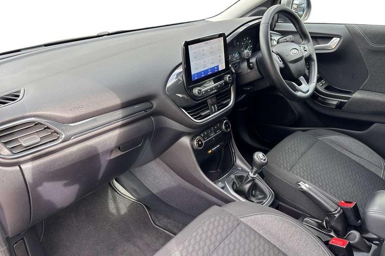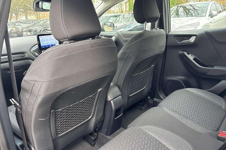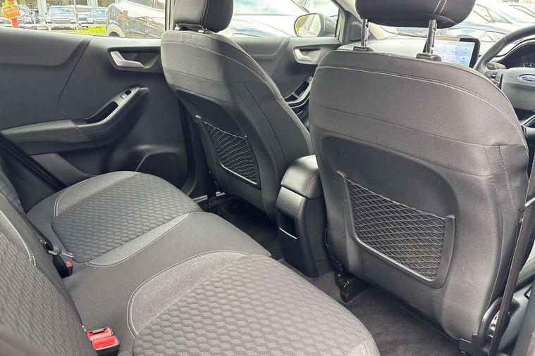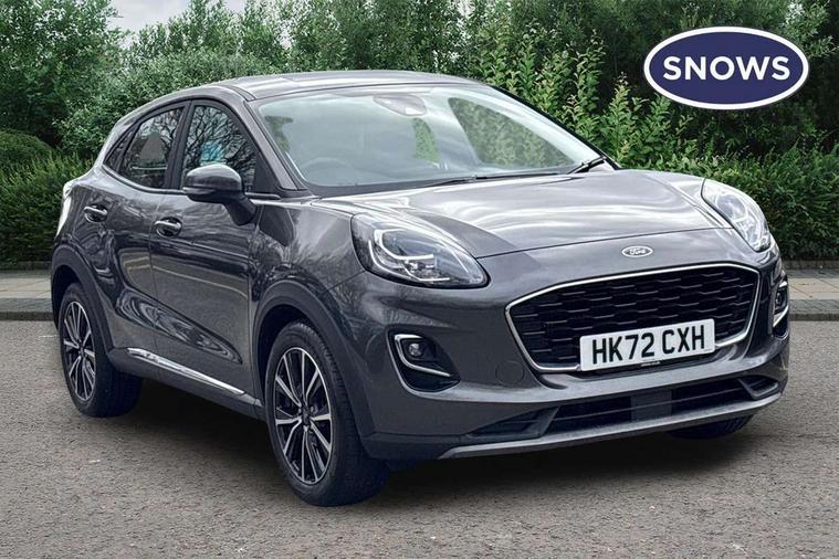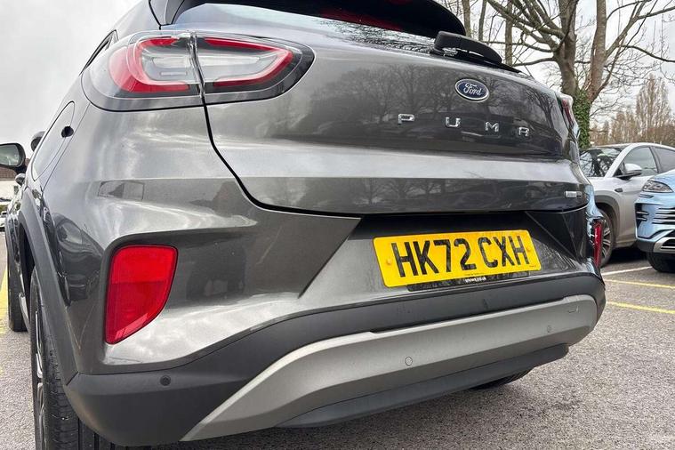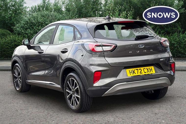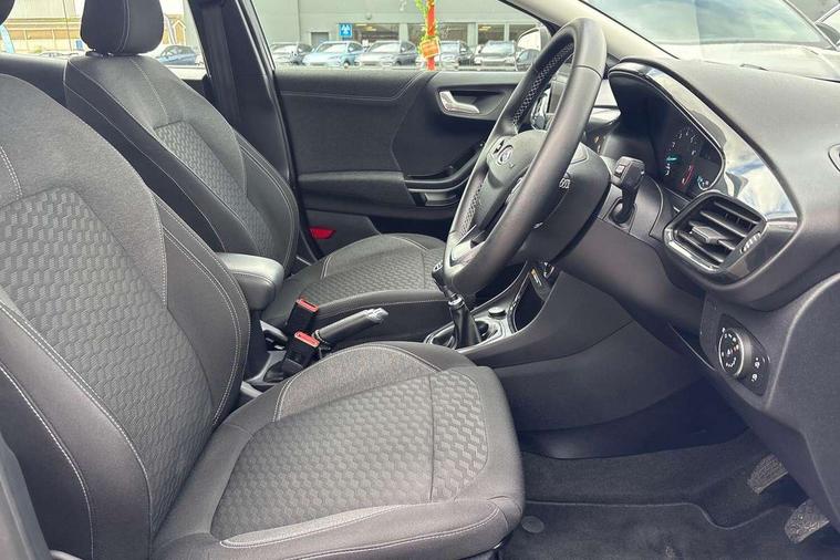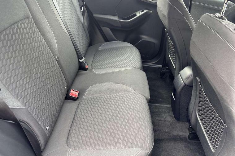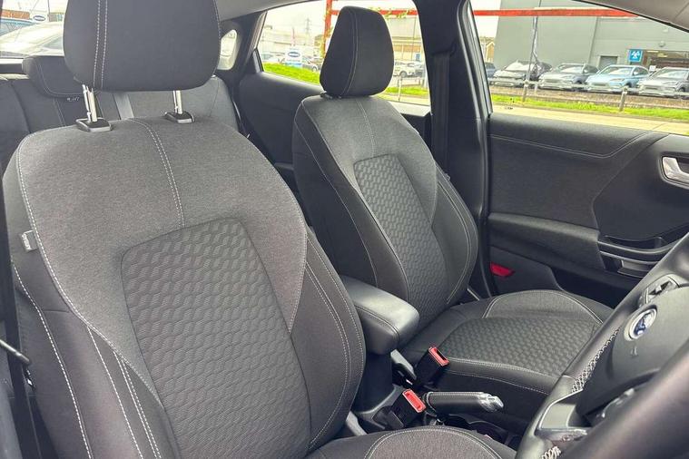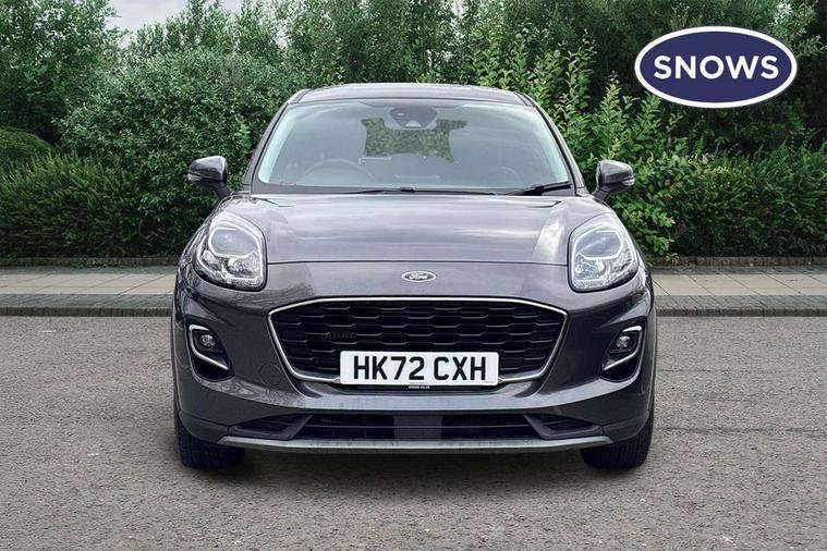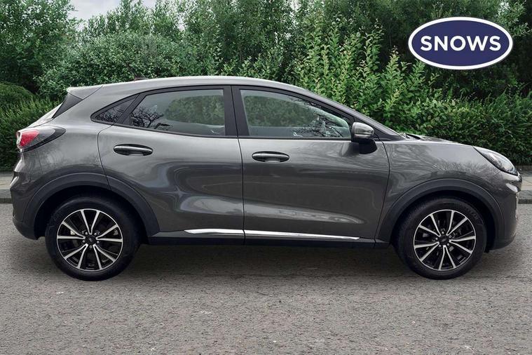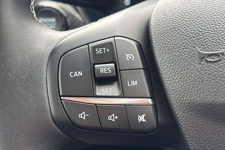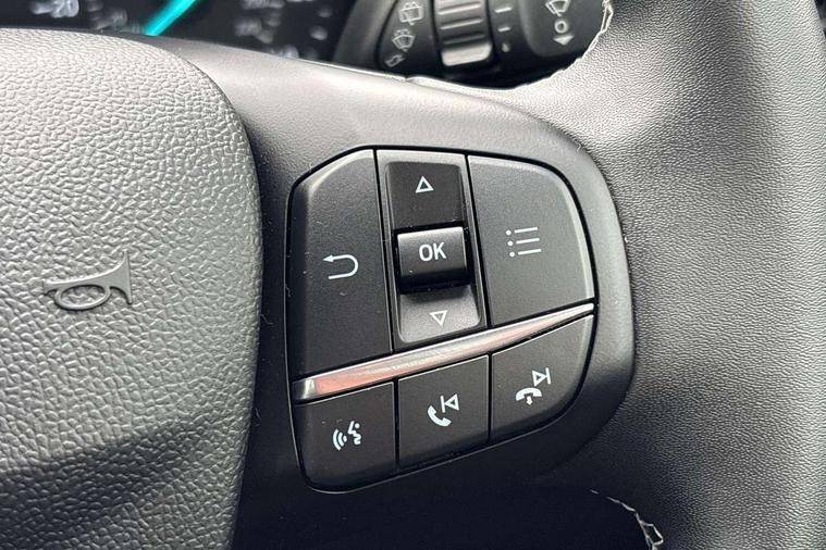 Driver impairment monitor, Emergency call service, Ford easy fuel, Lane keeping aid with lane departure warning, Power assist steering, Power start button, Rear parking sensor, Selectable drive modes(Normal, Eco, Sport, Slippery and Trail), Speed sign recognition, Standard suspension, Automatic headlights with auto high beam, Automatic rain sensing wipers, Body colour rear spoiler, LED rear lamps, Power foldable heated door mirrors with puddle lamps, Projector headlamps with LED day time running lights and front fog lamps, Quickclear heated windscreen, Rear side wing doors, Rear wiper, Third brake light, 3 seat bench in 2nd row, Centre console with armrest and stowage, Electronic automatic temperature control (EATC), Ford megabox extended bootspace, Front and rear head restraints, Front floor mats, Manual 2 way passenger seat adjustment, Manual 4 way driver seat adjust with lumbar adjustment, Sensico leather steering wheel/gear knob/handbrake, Single front passenger seat, Titanium cloth upholstery, Ford SYNC 3 navigation pack - Puma, 3 rear seatbelts, Child safety lock, Electronic stability control (ESC) and hill start assist, Pedestrian/cyclist detection & post-collision braking, Pre collision assist system, Tyre pressure monitoring system (TPMS), Thatcham alarm, 17" 10 spoke absolute black machined finish alloy wheel,