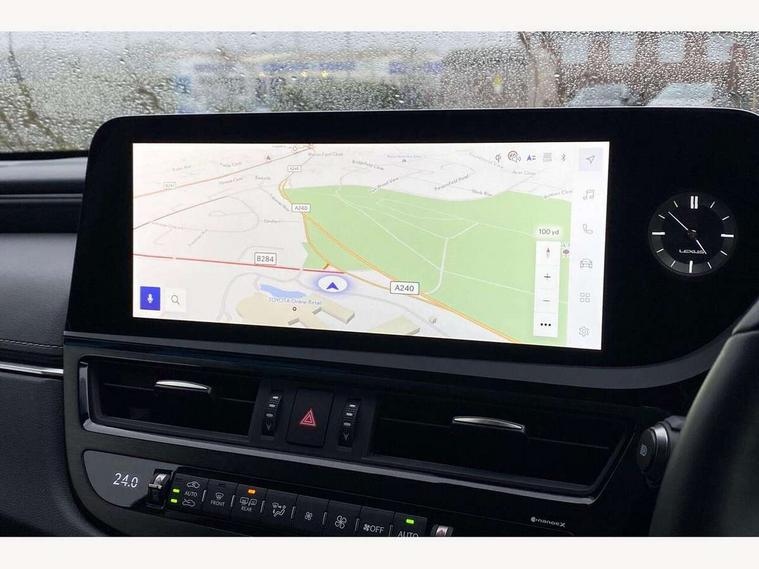 2.5 Lexus safety systems+, 3 driving modes Normal, Eco, Sport, Active Noise Control, Analogue clock with LED illumination, Auto glide control Lexus first - AGC, Blind spot monitoring (BSM) with Rear cross traffic alert and auto brake (RCTAB), Bluetooth connectivity, Drive mode select controller, Dynamic radar cruise control, Emergency services call system, EPS with speed sensitive steering, Intelligent parking sensors, Lane change flasher function, Lane tracking assist - LTA, Lexus link connected services, Lexus Link Pro with 12.3" touchscreen, Lexus navigation system, Pre-collision system (PCS), Push button start, Rev counter, Road sign assist - RSA, Service indicator, Vehicle Stability Control - VSC and drive mode controls on Instrument brinicle, Wireless Apple CarPlay/Android Auto, Wireless Smartphone charger, VDIM, 10 speaker pioneer audio with single CD, DAB, aux, shark fin antenna + Bluetooth system, Multimedia system with remote touch pad, Acoustic front windscreen, Aluminium front scuff plates with Lexus logo, Auto dimming interior rear view mirror, Auto headlight levelling, Auto headlights, Bi LED headlight with Auto high beam, Cornering light, Folding heated auto dimming wide angle door mirrors, Follow me home headlights, Front and rear one-touch automatic power windows equipped with a jam protection, Front grille, Front windscreen de-icer, Green UV glass with water repellent coating on front side windows, Headlight cleaners, LED daytime running lights, LED rear lights, LED third brake light, Privacy glass, Rain sensing windscreen wipers, Rear boot, Rear side wing doors, Rear spoiler for (CO2 saving), Resin rear scuff plates, Sunroof, 12V socket in front and rear, 2 cup holders in the front and rear centre console, 2 USB ports type A and C in front centre console, 2 USB ports type C for charging in rear of centre console, 2 USB ports type C inside console box, 2 x fixed shopping bag hooks in boot, 2 zone climate control with climate concierge and nanoe ion generator, 3 spoke leather heated steering wheel with power adjust, 4 x tie down hooks in the boot, Card holder installed in driver and passengers sun visors, Easy access system with tilt + telescopic, Fixed rear seat with trunk through, Front and rear door pockets, Front and rear head restraints, Front centre armrest with storage, Heated front seats with 8 way electric adjustment and 2 way power lumbar support, LED ambient lighting, Luggage storage tray under deck board to right side, Map pockets on front seats, Paddle shift controls, Rear armrest with 2 cup holders and storage, Self charging hybrid, Single front passenger seat, Smooth leather shift knob, Tahara leather upholstery, Textile carpet mats, Whiplash injury lessening seats, 10 airbags - front, side, knee, front and rear curtain airbag, 2 x Isofix child rear seat restraints, 3 point front seat belts, Active Traction Control (TRC), Adjustable seat belt anchor points, Anti-lock braking system (ABS), Child locks on rear doors, Electronic parking brake, ELR (Emergency locking retractor), Fasten seatbelt reminder, Front and rear outer seat belt pre-tensioners, Front passenger's airbag cut off device, HAC (Hill start assist control) with brake hold, Power assisted brakes, Seat belt force limiter, Three 3 point rear seatbelts, Tyre pressure monitoring system, Alarm, Central locking, Immobiliser, Locking wheel nuts, Smart entry + Smart start, Speed sensitive auto door locking, Two motion door lock with double lock, VIN Window etching, Black grain inlay, 18" Alloy wheels, Tyre repair kit,
