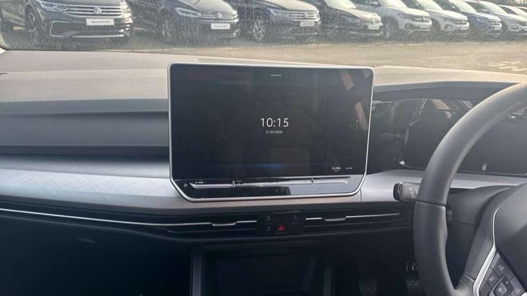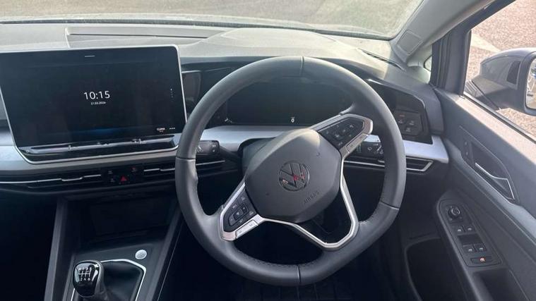 Activated carbon canister, Adaptive cruise control (ACC), Advanced driver attention and drowsiness monitor, Dynamic road sign display, E-Sim card for online connectivity, eCall emergency call system, Multi-color Digital cockpit pro, selection of different info profile possible, Multifunction front facing camera for distance control, Navigation system, Oncoming vehicle braking when turning including swerve support, Speed limiter, Speedo, rev counter, electronic odometer, trip, service interval display, exterior temperature and fuel gauge, Voice enhancer and voice control, Warning signal and warning light for front and rear seatbelts not fastened, We connect plus preparation, We connect preparation, Wireless app connect, Petrol Particulate Filter, Start-stop system with battery regeneration (recuperation - energy recovery during braking), XDS electronic differential lock for improved traction and handling, 2 USB C ports in front, 2 USB charging sockets on the centre console in the rear charging capacity upto 45W, Digital radio reception (DAB), Diversity antenna for FM reception, Gaming platform via car app, Infotainment system with 12.9" display, Mobile phone interface with inductive charging feature, 3rd brake light, Automatic headlamp activation with Coming home and Leaving home feature, Body colour door handles, Body colour door mirrors, Exterior mirrors convex on the left and aspherical on the right, Front and rear electric windows, Heat insulating windshield made of laminated glass, LED separate daytime running light, Rear exhaust tailpipe, Rear fog light on one side and reversing lights on both sides, Rear side wing doors, Rear tinted glass 65% light absorbing from B pillar backwards, Rear windscreen washer and wiper with interval delay, Remote electrically foldable door mirrors, puddle lights and reverse activated passenger's door mirror, Standard bumpers, Welcome light with surround lighting, 12V socket in front centre console, 12V socket in luggage compartment, 3 rear head restraints, 3 seat bench in 2nd row, Chrome plated radiator grille inserts, air vent surrounds and light switch surrounds, Front centre armrest, Front head restraints, ISOFIX anchors for child seats on outer rear bench seats and on front passanger seat compatible for i-Size, Leather gearshift handle, Luggage compartment lighting, Manual height adjustable front passenger seat, Rear cupholder and loadthough, Single front passenger seat, Soul black instrument panel, Split folding backrest with centre armrest and unsplit rear seat bench, Standard pedal cluster, Storm grey roof lining, Sun visors with illuminated vanity mirrors, Parking and comfort pack - Golf Estate/Hatchback, 3 point height adj front seatbelts + pretensioners, 3 rear three point seatbelts, ABS, Autonomous emergency braking front assist with pedestrian and cyclist monitoring, Child locks on rear doors, Driver and front passenger airbag with front passenger airbag deactivation, Electronic parking brake with auto hold, ESC (Electronic Stability Control), Extended pedestrian protection measures, Rear disc brakes, Two tone horn, Tyre pressure loss indicator, Volkswagen roadside assistance, Anti theft wheel bolts, Preparation for alcohol interlock, Nature cross brushed decorative inserts for dashboard and front door panels,