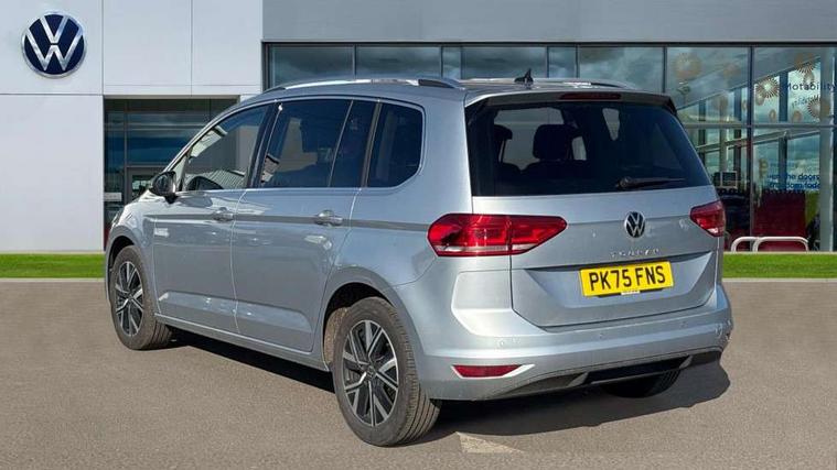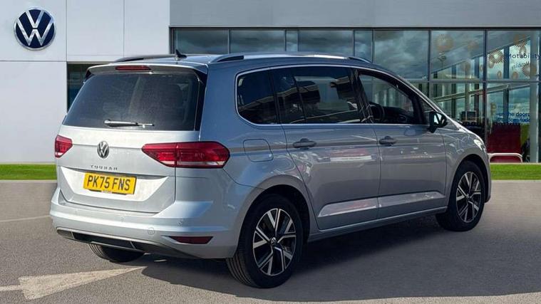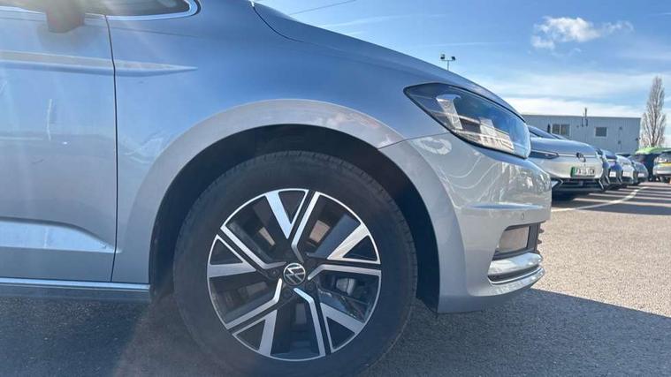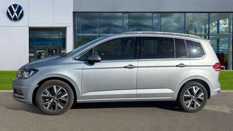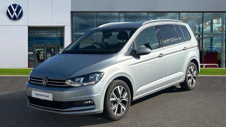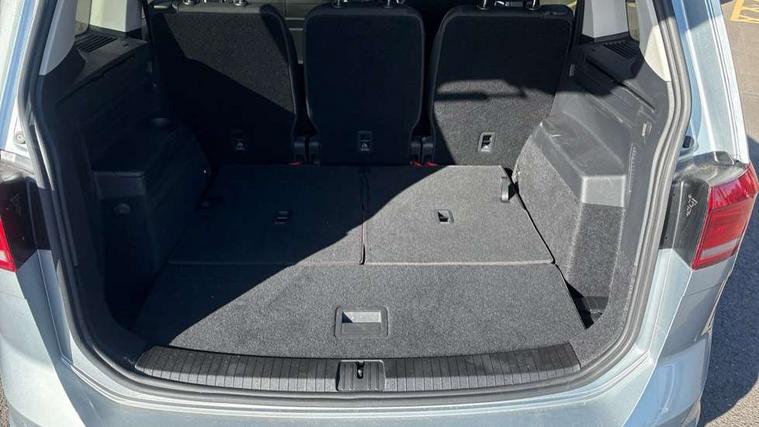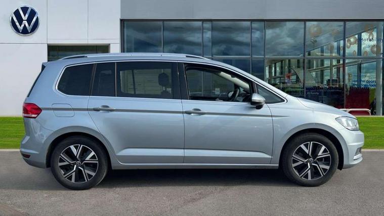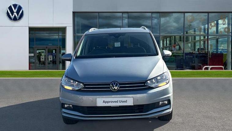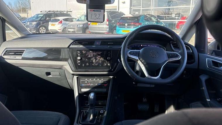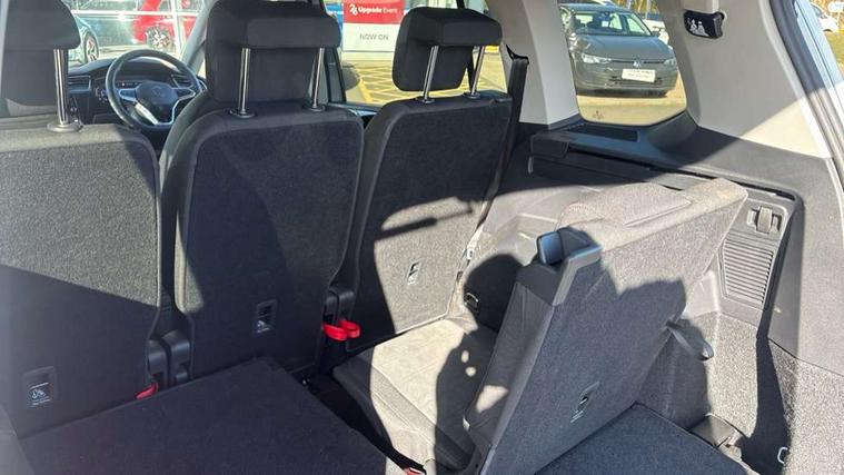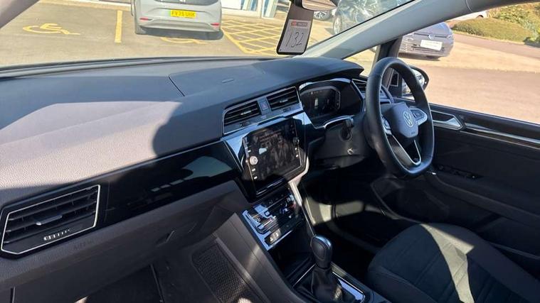 Active info display - Digital cockpit 10.25" HD display screen, Adaptive cruise control, Audible lights on warning, Discover media navigation touchscreen navigation/radio system with streaming and internet, Driver alert system, Driver electronic voice amplification function, Driver profile selection, Dynamic road sign display, Electronic odometer, Emergency services call system, Extended, crash-active and proactive Pedestrian and cyclist monitoring, External temperature gauge, Front parking sensors, Lane change system side assist and rear traffic alert, Lane keep assist, Mobile pairing with SMS function, Mobile phone interface with inductive charging, Rev counter with fuel gauge, Speed limiter, Speed sensitive power steering, Stop/start system, Think blue trainer driver tips and journey analysis, Trip and service interval display, Wireless app connect without mirror link, Petrol Particulate Filter, XDS electronic differential lock, 4x20 watt output, 8 Speakers, Audio Connectivity System, DAB Digital radio, External USB-C data socket with increased charging performance - 2 USB sockets 45W, MP3/WMA compatability, SD card slot, Title and cover art display, USB connection, Aerial integrated into side window, Auto dimming door mirrors, on driver side, surround lighting and front passenger side mirror lowering function, Auto dimming rear view mirror, Automatic coming/leaving home lighting function, Body colour bumpers, Body colour door handles, Body colour door mirrors with integral indicators, Chrome fog light surround, Chrome lower front bumper insert, Chrome trimmed front air intake surrounds, Chrome trimmed radiator grille louvre inserts, Chrome trimmed side windows, Dusk sensor + auto driving lights, Front and rear electric windows, Front fog lights with static cornering function, Fully galvanised body, Gloss black finish B pillar, Green tinted heat insulating glass, High level third brake light, Rain sensor, Rear side wing doors, Rear tinted glass from B-pillar backwards approx 65% tinted, Rear wash/wipe with intermittent wipe setting, Silver roof rails, Tailgate wiper- reverse gear activation, Twin chrome exhaust tailpipes, Volkswagen roundel, Windscreen wipers intermittent wipe, 12V power point for Row 2, 12V socket in luggage compartment, 2 individual fold flat 3rd row seats, 2 three point seatbelts in 3rd row, 2nd row centre armrest, 2nd row centre seat converts into table, 3 single slide/fold/removable 2nd row seats, 3 spoke steering wheel, 3 Zone electronic climate control with automatic air recirculation, 3x3 point seatbelts on 2nd row with height adjust on outer seats, 4 boot load lashing points, 4 way adjustable front head restraints, 5 headrests, Ambient lighting in door trim and foot well, Art velour/Microfibre cloth upholstery, Driver and front passenger under seat drawer, Dust/pollen filters, Foldable front passenger seat backrest, Front + rear carpet mats, Front and rear reading lights, Front centre armrest with storage compartment, Front comfort seats with lumbar support, Front cupholders x 2, Front passenger seat height adjust, Front seat storage pockets, Front seatback folding tables, Height adjustable driver's seat, Height/reach adjust steering wheel, Illuminated glovebox, Illuminated vanity mirrors, Instrument lighting white adjustable panel illumination with red night time illumination, Interior light with delay, Isofix on 2nd row outer seats, Isofix on 3rd row seats, Large storage compartment in roof console, Leatherette on rear of front seats, Low tunnel 2nd row seat, Luggage compartment lighting, Media box in dashboard on passenger side, Multi storage in passenger/luggage areas, Multi-function centre console with storage facilities, Multifunction leather trimmed steering wheel including leather trimmed gear knob with 3.5" screen with multifunction computer, Retractable luggage cover, Split folding rear seat backrests, Storage bins on all doors, Mirror pack - Touran, 3 point height adjustable front seatbelts, Auto hold function, Automatic post collision braking system, Door open warning reflectors, Driver/Front Passenger airbags, Drivers knee airbag, EDL + ASR, Electrically operated child locks on rear doors, Electronic parking brake, Energy recovery system, ESC with ABS, First aid kit, Front and rear (row 2) curtain airbags, Front assist including city emergency braking, Front seat side impact airbags, Front seatbelt pretensioners, Front/rear disc brakes, Hill hold control, Hydraulic Brake Assist (HBA), Loose wheel warning function, Manual passenger airbag deactivation function, Pre crash preventive occupant protection, Proactive passenger protection system with front and side assist, Rear child proof door locks, Seatbelt warning lamp and buzzer, Traction control, Two tone horn, Warning triangle, Alarm with remote central locking and interior protection, Electronic engine immobiliser, Chrome plated instrument surrounds, Piano black decorative inserts, 17" Alexandria alloy wheels with self sealing tyres and anti-theft wheel bolts,