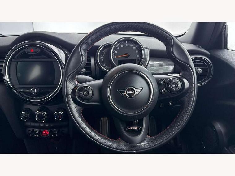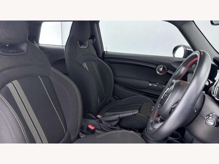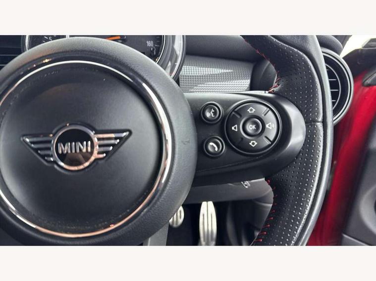 Automatic start/stop function with brake energy recuperation, Compatible mobile phone bluetooth with audio streaming, Electro-mechanical speed dependant steering assistance, Instrument cluster, Mini E-call, MINI TeleServices, On board computer, Service interval indicator, Double Vanos system, Fully variable valve control, High precision injection, Performance Control, 6.5" touchscreen with LED ring, FM tuner and DAB digital radio, Automatic headlight activation switch, Body colour fuel filler cap, Chrome border high gloss black slats radiator grille, Dynamic brake lights, Electric front+rear windows, Heated rear window, Heated windscreen washer jets, John Cooper Works - aerodynamic kit (front and rear apron, spoiler), front and rear sport bumpers and part-painted side sills with door sill finishers, John Cooper Works rear spoiler, LED headlight with closed ring and daytime driving lights, Left exhaust tailpipe with chrome finisher, Metal door sill strips with MINI imprint, Model logo Cooper on right of tailgate, Rain sensor window wipers, Rear fog lights, Rear LED lights with union jack design, Rear window wiper, Side scuttle panel with integrated indicator, Sun/heat protection glass, White indicator lenses, 12V Accessory socket in centre console, 4 lashing eyes in luggage compartment, 60/40 split folding rear seat, Anthracite headlining, Chrome interior highlights, Cupholders, Front and rear head restraints, Front and rear isofix with front passenger airbag deactivation, Glove compartment, Height and length steering column adjustment, Interior lighting with 12 basic colours selectable via toggle switch in roof, John Cooper Works leather steering wheel with contrasting stitching in Chilli Red with John Cooper Works logo, John Cooper Works Logo in seat, Leather gearshift lever and handbrake gaiters, LED reading lights, vanity mirror lights, front foot well light and spotlight on front seats, Manual air conditioning, Mechanical seat adjustment, driver seat height adjust, forward/back and front seats backrest, Mini logo projection on floor from drivers exterior mirror, Multifunction steering wheel, Storage compartments in doors, Sunvisors with vanity mirrors, 3 point seatbelts on all four seats, 6 Airbags - front, side, head and seat belt tensioners, Anti-lock braking system (ABS), DSC - Dynamic Stability Control, Front and rear disc brakes, Hill start assist, Single tone fanfare horn, Tyre pressure monitoring system, Alarm system with tilt sensor, monitoring doors, bonnet interior and tailgate, Electronic vehicle immobiliser, Start/stop toggle with keyless go, Tool kit,