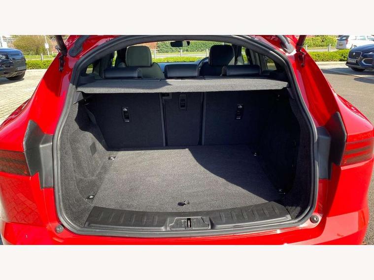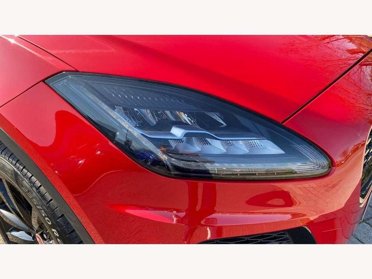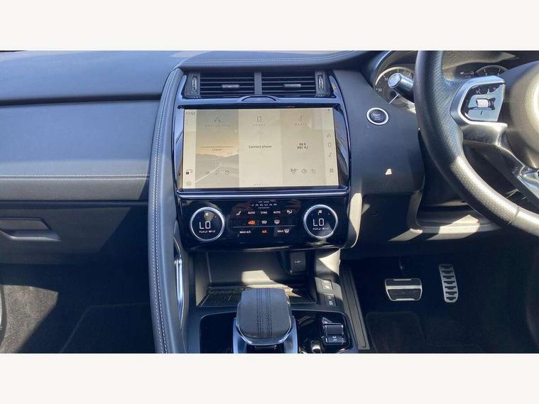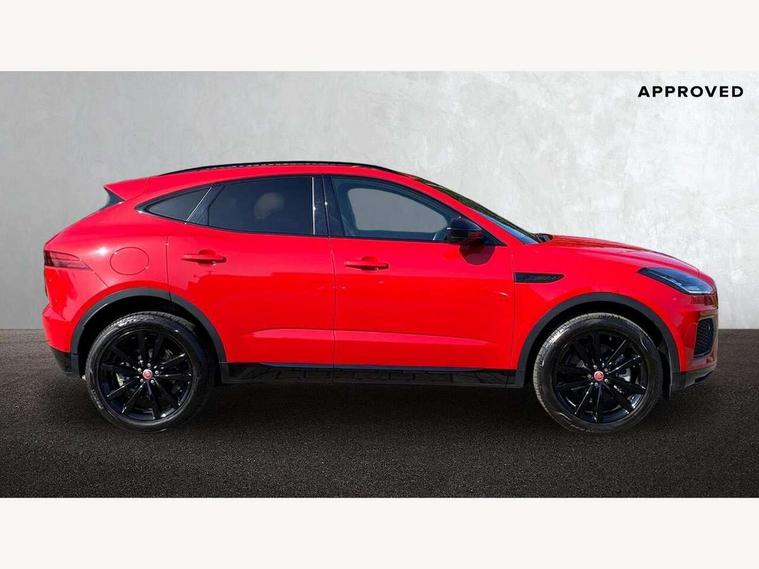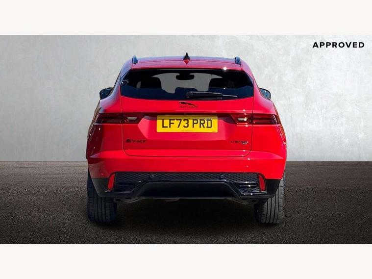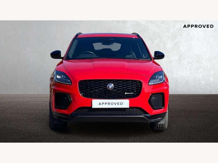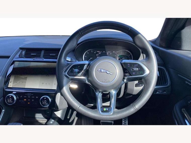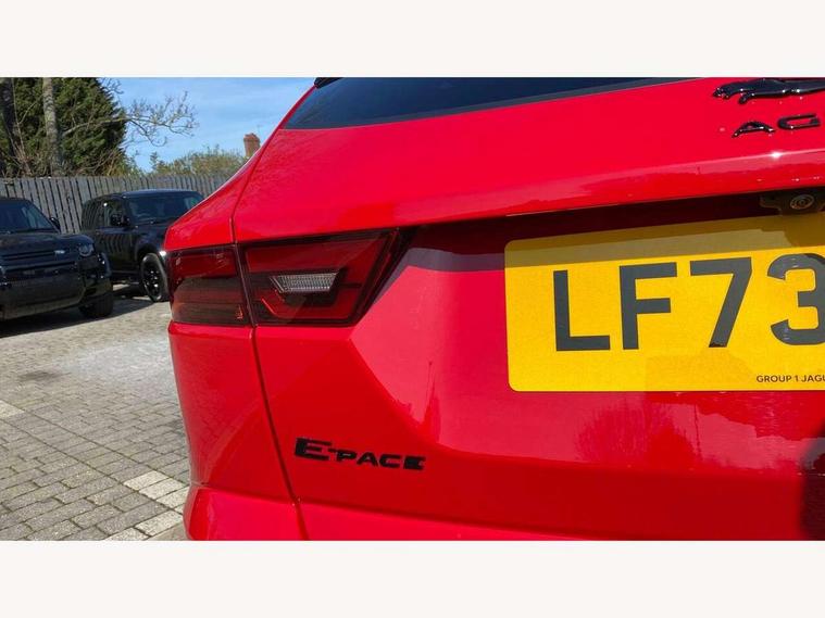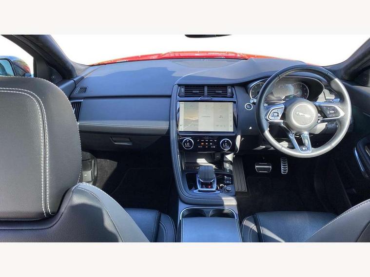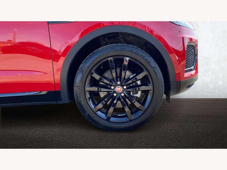 11.4" touchscreen with central ICP, 12.3" full digital instrument panel, Adaptive cruise control, Android Auto, Apple car play, Driver condition monitor, Eco driving style assistant, Electric power assisted steering, Emergency services call system, Front and rear parking aid, InControl remote, Jaguar drive control with adaptive surface response, Jaguar Toggle sport shift selector, Lane keep assist, Outside temperature gauge, Pivi pro connected infotainment system with smart settings and navigation pro, Push button start, Speed proportional steering, Traffic sign recognition with adaptive speed limiter, Trip computer, Voice control system, 7 kW onboard charger, Configurable dynamics, Electric rear axle drive, Home charging cable Mode 2, Large fuel tank, Passive suspension, Public charging cable Mode 3, AM/FM DVD MP3 radio, Bluetooth connectivity including audio streaming, DAB digital audio broadcast, Dynamic volume control, 3 flash lane change indicators, Approach Illumination, Auto high beam assist, Automatic headlights, Body colour door handles, Body colour upper spoiler, Body coloured side sills, Centre high-mounted stop light, Electric front/rear windows with one touch/auto up/down, Electric heated/power fold memory door mirrors with approach lights and auto dimming driver side, Embossed leaper for grained and windsor leather, Fixed panoramic glass sunroof, Heated washer jets, Heated windscreen, Jaguar script and leaper, LED tail lights, LED third brake light, Narvik black antenna pod and side pillar finisher, Narvik black door mirrors, Narvik black front and rear low bumpers, Narvik black lower side cladding, P300e AWD badge, Privacy glass, R Dynamic badge, Rain sensor windscreen wipers, Rear fog lights, Rear side wing doors, Rear wash wiper, Satin black grained front outer grille, low grill mesh and low bumper valence, side fender vent mesh and finisher, rear tow eye cover and grille mesh, Twin exhaust tailpipe, Variable front intermittent wipers, 3 rear head restraints, 3 seat bench in 2nd row, 40:20:40 rear seat fold, Bright metal pedals, Carpet mats, Centre console with armrest, Enhanced ambient lighting, Hooks loadspace, ISOFIX on outer rear seats, Loadspace cover, Loadspace light, Loadspace storage net, Luggage tie-downs in loadspace, Manual height/reach adjust steering wheel, Multifunction steering wheel, Overhead lighting console, Passive front head restraints, Power sockets, R-Dynamic branded leather steering wheel, Rear air vents, Rear bench seats, Satin chrome gearshift paddles, Single front passenger seat, Sunvisors with illuminated vanity mirrors, Twin front cupholders, Two zone climate control, Exterior black pack - E-pace, 3x3 point rear seatbelts, ABS, All surface progress control (ASPC), Child locks on rear doors, Customer configurable autolock, DSC - Dynamic Stability Control, Electronic brake force distribution, Electronic parking brake, Emergency brake assist, Emergency braking, Front airbags with passenger seat occupant detector, Front and rear curtain airbags, Front and rear seatbelt reminder, Front passenger airbag deactivation, Front seatbelt pretensioners, Front side airbags, Height adjustable front seatbelts, Hill start assist, Low friction launch, Power child locks, Torque vectoring brake, Tyre pressure monitoring system, Intrusion sensor and alarm, Locking wheel nuts, Remote central locking,