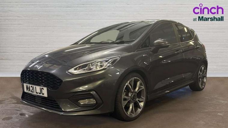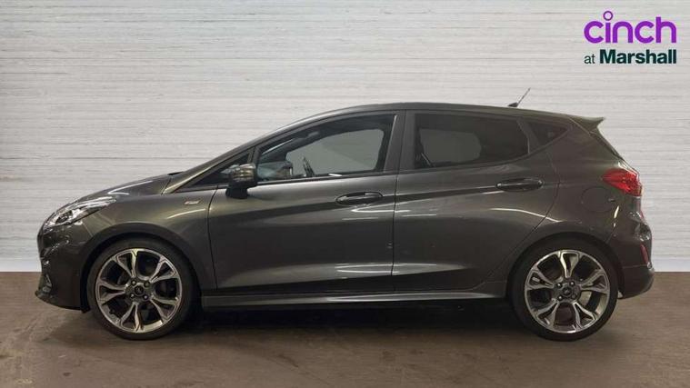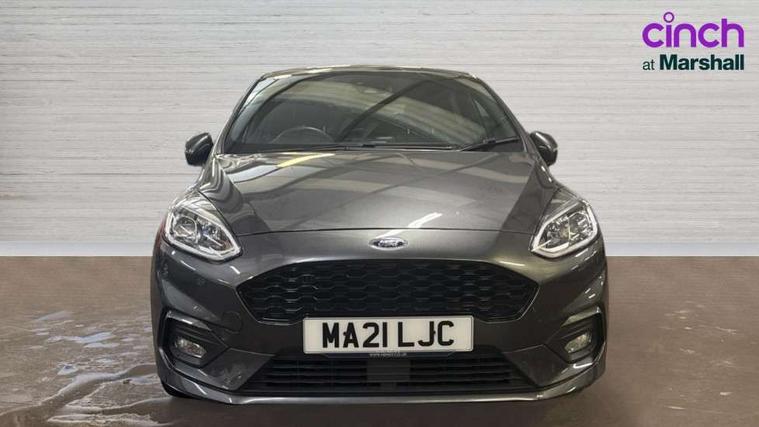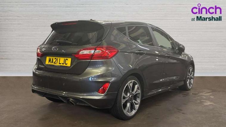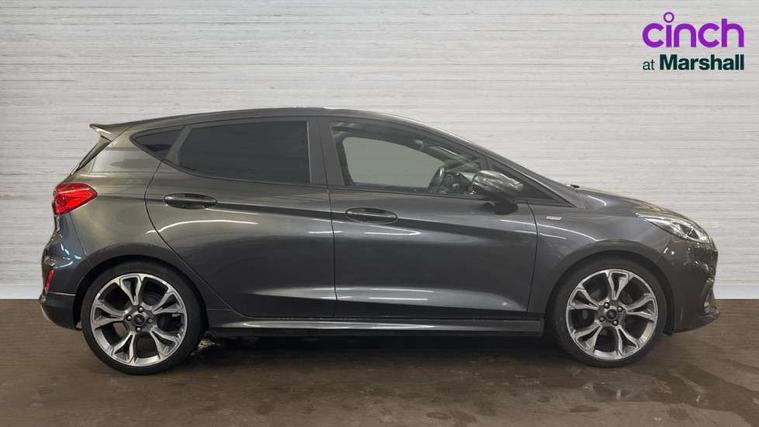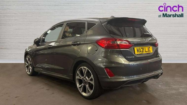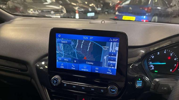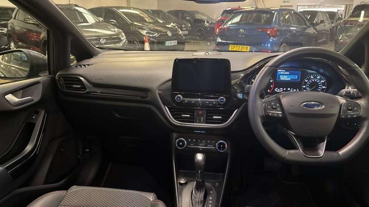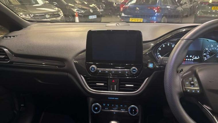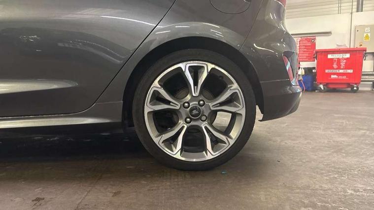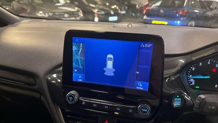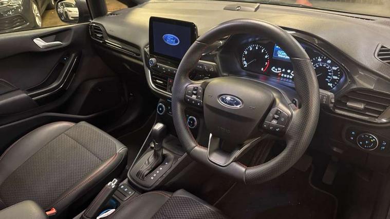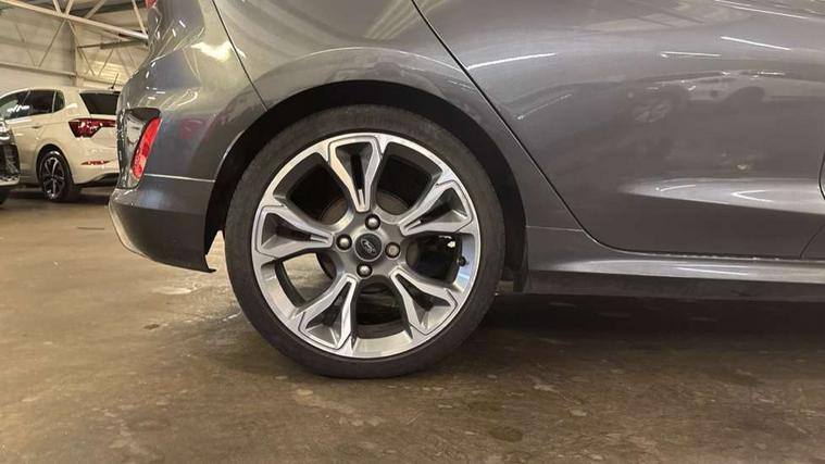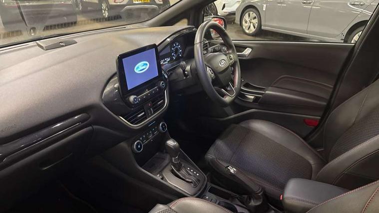 4.2" TFT instrument cluster screen, Bluetooth system, Electric power steering, Ford easy fuel, Rear parking distance sensors, Traffic sign recognition, Trip computer, Wireless charging, Sports suspension, 2 USB ports, Auxiliary input socket, B&O Premium audio system with 8" touchscreen, 10 speakers, 360 degree sound system, Ford SYNC 3 navigation system and Ford pass connect, DAB Digital radio, Steering wheel mounted controls, Auto high beam, Body colour bumpers, Body colour door handles, Body colour large rear spoiler, Body coloured electrically operated and heated door mirrors with side indicators, Cornering front fog lights, Electric front windows/one touch facility, Electric rear windows, LED Night signature to rear lights, Power foldable door mirrors with puddle lights, Quickclear heated windscreen, Rain sensing wipers and auto dimming rear view mirror, Rear privacy glass, Rear wiper, Unique ST-Line upper grille & full bodystyling kit with ST-Line wing badges, 12V Accessory socket in centre console, 3 spoke flat bottomed leather steering wheel, 60/40 split folding rear seat, Adjustable head restraints, Black headlining, Boot carpet, Centre console with armrest and illuminated cupholders, Chrome inner door handles, Drivers and Passenger lumbar support, EATC - Electronic Auto Temperature control, Footwell illumination, Front floor mats, Front map reading lights, Front seat and rear pockets, Height adjustable driver's seat, Height adjustable passenger seat, Illuminated glovebox, LED ambient lighting, Load area light, Overhead console with sunglasses holder, Pollen filter, Rake/reach adjustable steering wheel, Sensico leather steering wheel/gear knob/handbrake, Sports front seats, NCAP Pack - Fiesta, ST-Line X Trim Pack - Fiesta, 3 point seatbelts on all rear seats, ABS+EBA, Curtain airbags, Driver and passenger airbags, Drivers knee airbag, Electronic stability control with hill start assist, Front passenger airbag deactivation, Front side airbags, Seatbelt warning, Two tone horn, Tyre pressure monitoring system, Ford keyfree system with Keyless entry and keyless start, MyKey system, Remote central locking & engine immobiliser, Thatcham Cat.1 alarm, 18" 5 spoke alloy wheels with rock metallic machined finish,