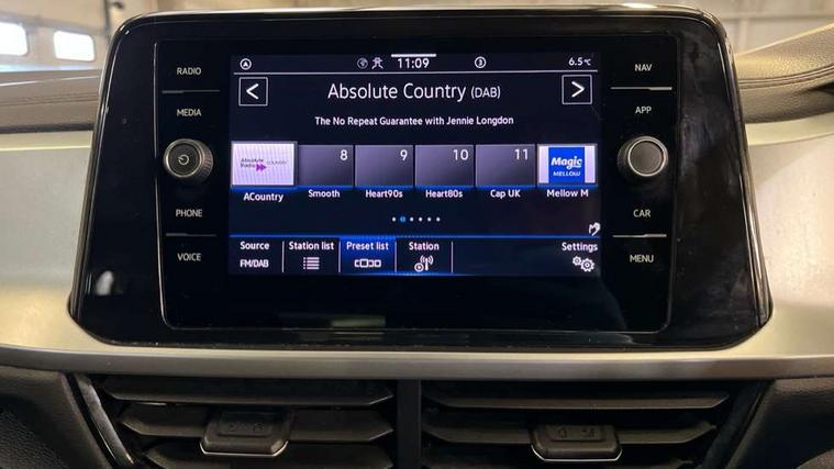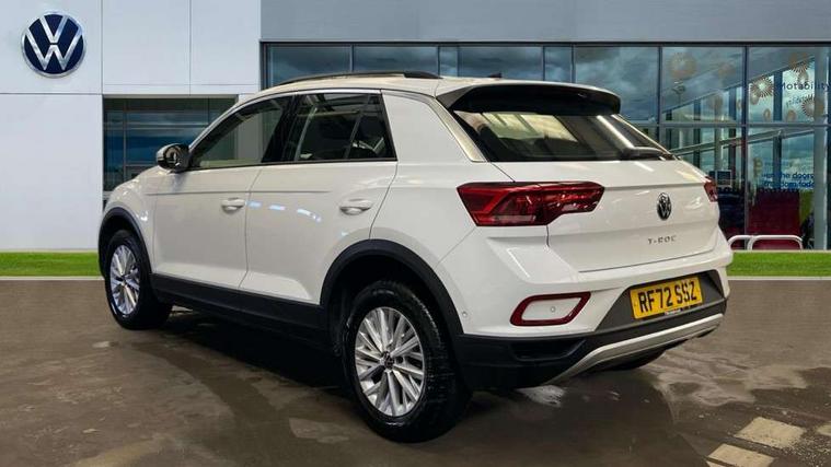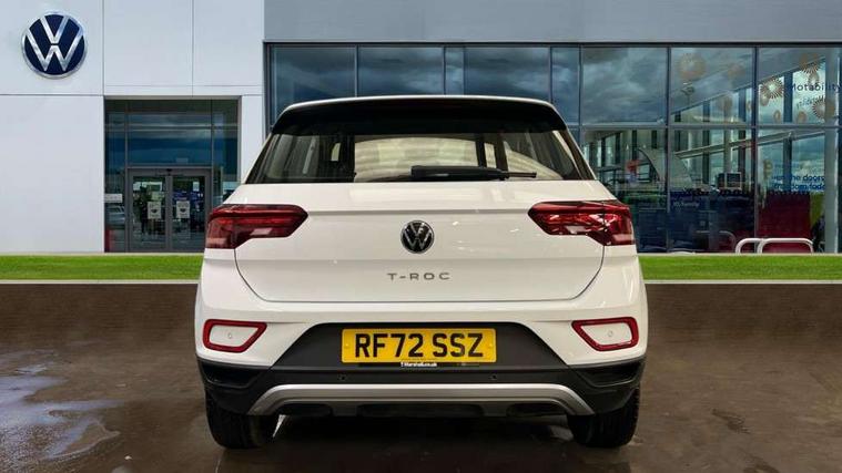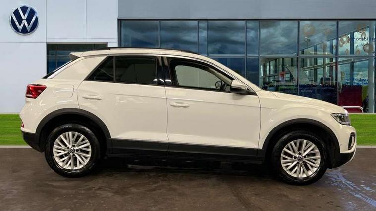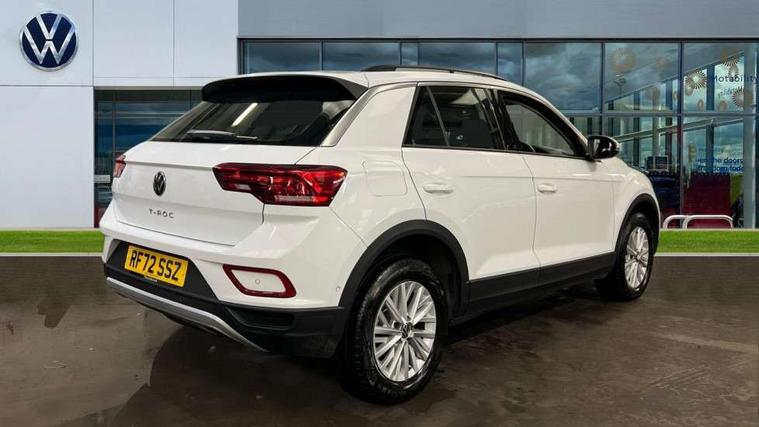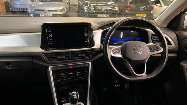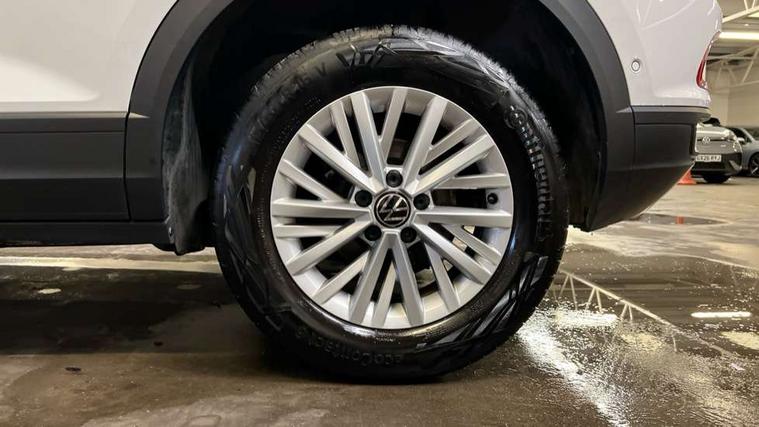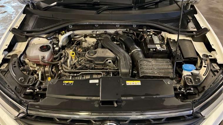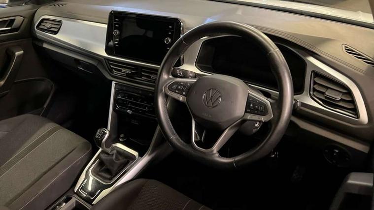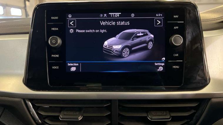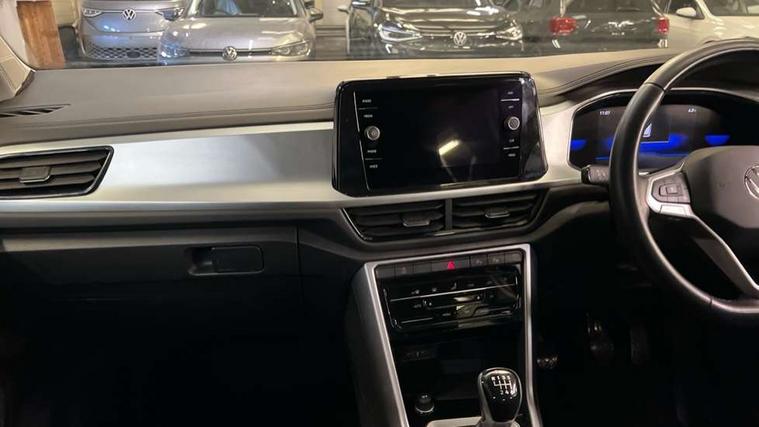 Bluetooth mobile phone interface, Driver alert system with fatigue detection, Driver tips and journey analysis, Emergency call service, Lane keeping system Lane Assist, Modified key software - reduce switch off time for key status change to Long no motion, Online services, Park assist including front and rear parking sensors, Power assisted speed sensitive steering, Service interval indicator, Tailgate/trunk lid release from outside, Think blue trainer driver tips and journey analysis, Warning sound and light for front seatbelts unfastened, Wireless app connect, Battery regeneration during braking, Front shock absorption, Rear shock absorption chassis with increased ride height, Start/stop function with battery regeneration, DAB Digital radio, Diversity antenna for FM reception, Front and rear 6 speakers, Music playback - MP3, WMA and AAC files, Premium USB cable in choice of either Apple or Android smartphone compatibility, SD card slot, Simultaneous pairing of 2 compatible mobile devices, Title and cover art display, We Connect and We Connect Plus functionality, 3rd brake light, Auto dimming interior rear view mirror, Automatic hazard lights activation under emergency braking, Automatic headlight control with LED separate daytime running lights with coming/leaving home function, Black roof rails, Body coloured bumpers and radiator grille with chrome trim and front fog lamps with chrome bezel, Body coloured exterior mirror housings and door handles, Extended roof spoiler, Exterior mirrors aspherical on driver side, convex on front passenger side, External USB type C socket and charging sockets, Front windscreen wiper with intermittent wipe and 4 position delay, Heated rear window, LED Headlights, LED rear combination lamps, LED rear number plate lights, LED tail lamp rear comination lamps, Power windows with comfort operation and circuit breaker, Rain sensor, Rear exhaust tailpipe, Rear fog light on one side and reversing lights on both sides, Rear side wing doors, Rear wash/wipe with intermittent wipe setting, Remote electrically foldable door mirrors, puddle lights and reverse activated passenger's door mirror, 12V power socket in centre console, 3 rear head restraints, 3 seat bench in 2nd row, 4 load lashing points in luggage compartment, Air care climatronic air conditoning system with active combination filter and 2-zone temperature control, Ambient lighting with mirror logo projection, Cloth upholstery, Door and side trim panel in cloth, Drawer under drivers seat, Driver/front passenger seat height adjustment, Front centre armrest, Front comfort sports seats, Front cupholders x 2, Front reading light, Instrument lighting, white adjustable panel illumination, Interior light delay, Isofix child seat preparation, Leather gearshift handle, Load-through provision with cup holder when folded down ('Unsplit rear seat bench, split folding backrest, with centre armrest), Luggage compartment lighting, Lumbar support for driver's and front passengers seat, Non-folding front passenger seat backrest, Single front passenger seat, Storage compartment in left and right luggage area, Storage compartment in rear doors, Storage compartments in driver and front passenger doors, Sunvisors with illuminated vanity mirrors, Variable boot floor, height adjustable and removable, Driver assistance pack without proactive passenger protection - T-Roc, 3 point height adj front seatbelts + pretensioners, 3 point seatbelts in outer rear with ECE label, ABS, Child locks on rear doors, Driver and front passenger airbag with front passenger airbag deactivation, Driver and front passenger safety-optimised head restraints, Drivers seatbelt reminder, Electronic parking brake, Electronic Stability Control (ESC) inc EDL (Electronic Differential Lock) and ASR (Traction Control), Front and rear passengers curtain airbag system including front side airbags, Front assist with city emergency braking and pedestrian monitoring, Front disc brakes, Front seat side impact airbags, Hill start assist, Predictive pedestrian protection, Rear disc brakes, Single tone horn, Tyre pressure loss indicator, Volkswagen roadside assistance, Alarm with interior protection, Anti-theft alarm system with interior monitoring, backup horn, and towing protection, Remote central locking with SAFELOCK, radio remote control with 2 remote control folding keys, Pewter matt decorative inserts for intrument panel, centre console and door panels at the front, Trims for alloy wheels,