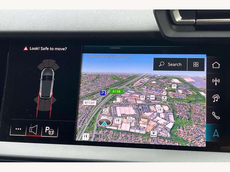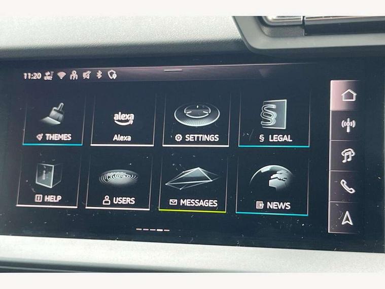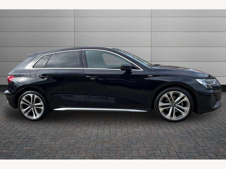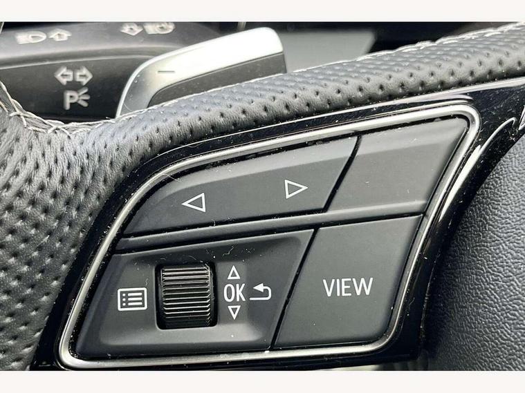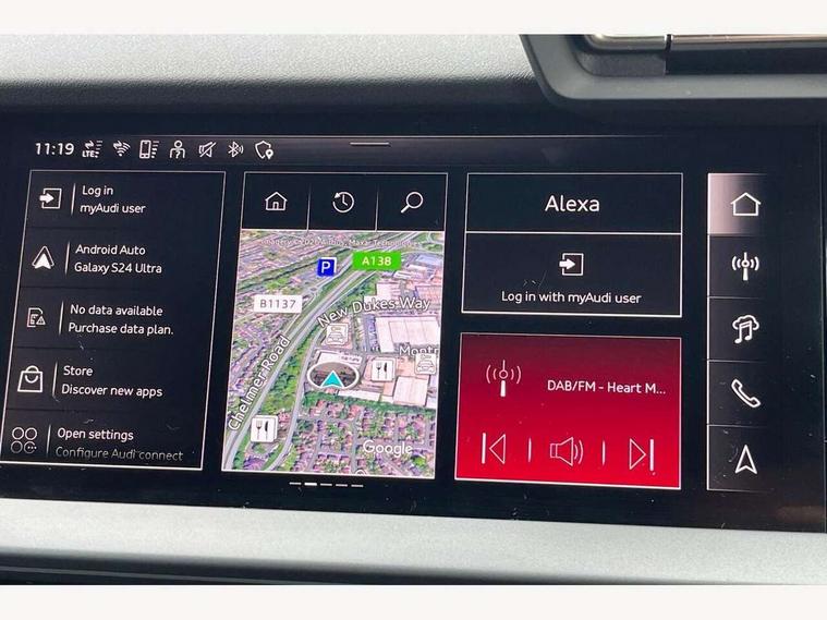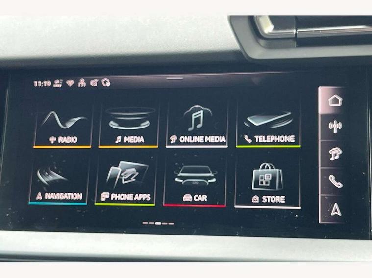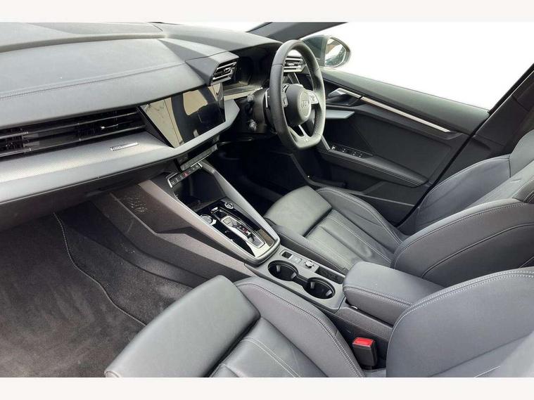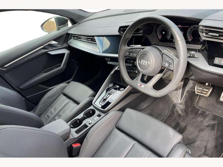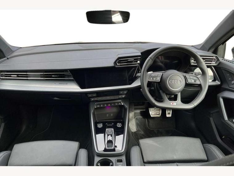 Adjustable speed limiter, Audi drive select, Audi smartphone interface with app store includes wireless Apple carplay, Android auto and Amazon alexa integration, Audi virtual cockpit plus - 12.3" full HD resolution dynamic digital instrument cluster, Automatic start/stop system with recuperation, Bluetooth interface, Camera based traffic sign recognition, Collision avoidance assistant, Cruise control, Distraction and Fatigue warning, e-Call (emergency call), Electromechanical power speed sensitive steering, Emergency assist, Lane departure warning system, MMI Navigation Plus with high resolution 10.1" colour touch screen display, Park Assist with parking system Plus, Service indicator, Tailgate, Trip computer, Voice control system with natural language interaction, Sports suspension, Audi Phonebox light with wireless charging, Audi sound system - 10 loudspeakers including centre loudspeaker and subwoofer, DAB Digital radio, USB ports with charging function in the rear, Acoustic glass windscreen, All weather light, Aluminium window trim, Auto dimming frameless rear view mirror, Automatic dynamic range control, Body colour exterior mirrors, Chrome exhaust tailpipes, Dipped beam, main beam, position light and turning light, Electrically adjustable/heated/folding/auto dimming door mirrors with integrated LED indications + kerb view function for passenger side, Exterior model badging, Front and rear side air inlets in grained matt black with dark liquid chrome frame, Front electric windows, Front radiator grill in high gloss dark chrome, Heat insulating glass windscreen, Illuminated door sills with aluminium inserts at the front with S logo, Intersection light, LED 3rd brake light, LED brake lights, LED daytime running x3, LED headlights with LED rear lights and dynamic rear indicators, LED rear number plate lights, LED reverse light, LED tail lights, Light and rain sensors, Manoeuvring light, Motorway light, Privacy glass - dark tinted rear window, rear door and side windows, Rear diffuser and grill in grained matt black with inlay in dark liquid chrome, Rear electric windows, Rear side wing doors, Rear wiper, S line bumpers, S roof spoiler, Side S line emblems on front wings, Side sill trim in dark liquid chrome, Static Cornering lights, 12V socket and storage compartment in front centre console, 3 seat bench in 2nd row, 3 spoke flat bottomed leather multifunction sport steering wheel with gear shift paddles, 3-zone deluxe automatic air conditioning, 4 way electrically adjustable lumbar support for driver and front passenger, 40/20/40 split folding rear seat bench, Black cloth headlining, Black front and rear floor mats, Front and rear centre armrest in artificial leather with contrasting stitching on armrests and instrument panel, Front and rear headrests, Heated front seats, Height and reach adjustable steering wheel, Manual boot compartment lid, Manually adjustable front seats, Rear centre armrest with cupholder, S badging on the steering wheel, Seat side bolsters, Single front passenger seat, Stainless steel pedals and front footrest in black, Twin leather upholstery with front sports seats S embossed logo, Aluminium interior elements pack - A3, Multi-coloured LED interior lighting package with Multi-coloured contour lighting of instrument panel - A3, 3x3 point rear seat belts, Driver and front passenger airbag with passenger airbag deactivation, Electronic Stabilisation Control (ESC) including ABS, ASR and EDL, First aid kit with warning triangle and 2 safety vests, Front side airbags with head airbags and interaction airbag, Hill hold assist, Pre-sense front with pedestrian and cyclist detection, Seatbelt monitoring, Tyre pressure loss indicator, Anti theft alarm, Anti-theft wheel bolts, Electronically operated child locks, Immobiliser, Remote central locking with safelock, Black dashboard, Inlay in dark aluminium spectrum,