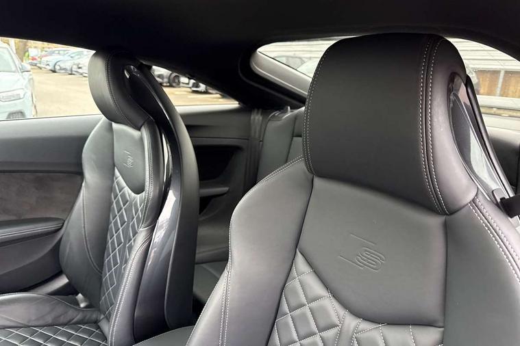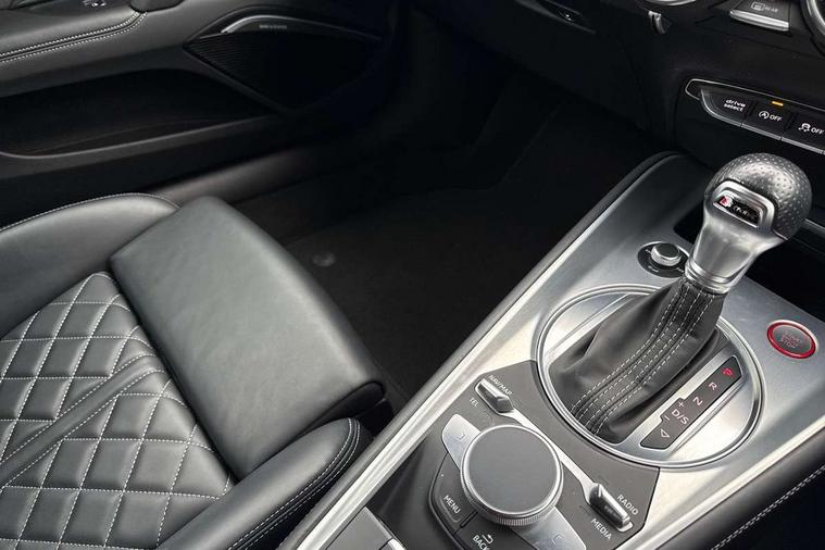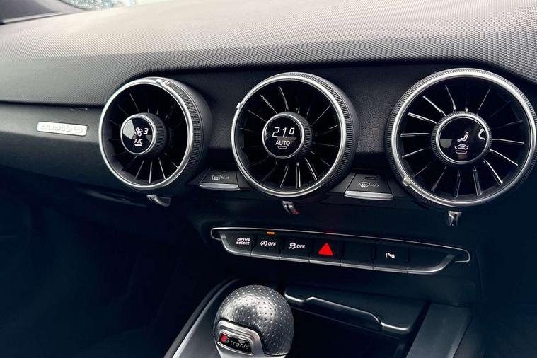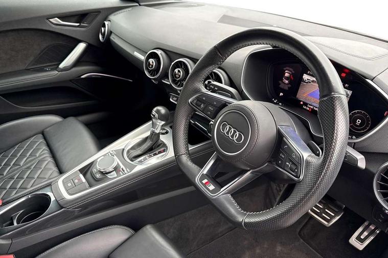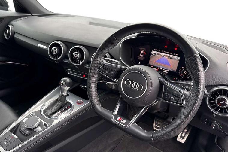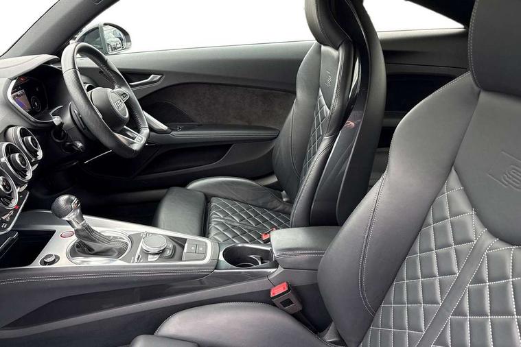 Audi drive select with 4 Pre configured modes, Audi smartphone interface, Audi Virtual Cockpit with sport gauge, Cruise control + speed limiter, Emergency call service, Mobile phone preparation with bluetooth interface, Progressive power assisted steering, Service interval indicator, Start/Stop system with energy recuperation, TP memo, Audi magnetic ride, TTS suspension, AM/FM radio, Audi Sound System with 9 speakers, Bluetooth audio streaming, DAB Digital radio, MMI Radio with CD player and SD/XC card slot, Audi Beam uses LEDs to project the Audi Sport logo, Auto dimming rear view mirror, Auto headlight range control, Black door mirrors, Dark privacy glass from B-pillar backwards, Electric folding door mirrors, Electric front windows, Electrically adjustable and heated door mirrors with integrated LED side indicators, Green tinted heat insulating glass, LED 3rd brake light, LED daytime running lights, LED headlights with LED rear lights + dynamic rear indicators, Light and rain sensors, Rear boot, Sunband for windscreen, 12V socket, 2 rear seats, 3 spoke flat bottomed contour leather multi-function TTS sport steering wheel and TTS badging, 4 way electric lumbar support for driver and front passenger, Black headlining, Black roll bar, Deluxe auto air conditioning with integrated digital display, Door sill trims with aluminium inlay and TTS logo, Front centre armrest, Front passenger seat, Heated front seats, Height adjustable driver's seat, Height adjustable front head restraints, Height/reach adjust steering wheel, ISOFIX child seat mounting for front passenger seat with airbag deactivation, Perforated leather gearknob in black, Rear head restraints, Rear top tether child seat ISOFIX attachment, Split folding rear seat, Stainless steel pedals, Tool kit, Black styling pack - TT, Leather pack - TTS, LED interior light pack - TTS, Non smoking pack - TT/TT RS, Technology pack without Audi phone box - TT, 3 point front seat belts, ABS, ASR traction control, Curtain airbags, Driver and front passenger airbag with front passenger airbag deactivation, EDL traction control, Electromechanical parking brake, ESP, First aid kit, Front side airbags, Head airbags, Hill hold assist, Seatbelt warning, Tyre pressure loss indicator, Warning triangle, Anti theft alarm, Anti theft wheel bolts, Immobiliser, Keyless Go, Remote central locking, Matt brushed aluminium inlays, Tyre repair kit,
