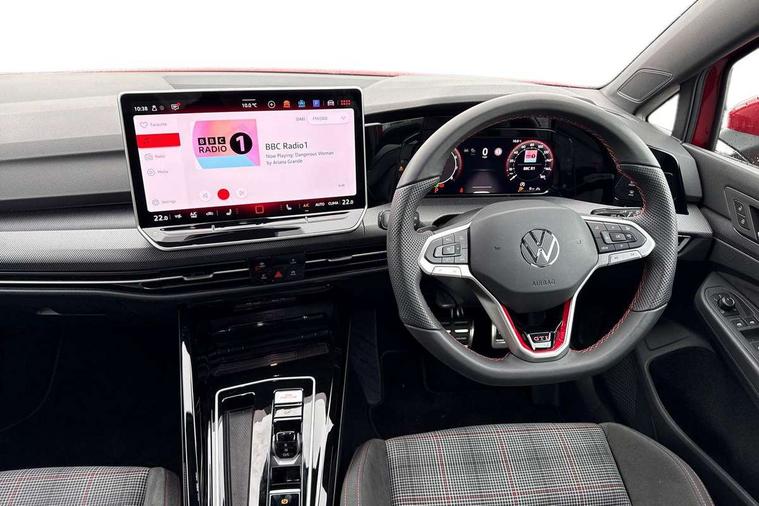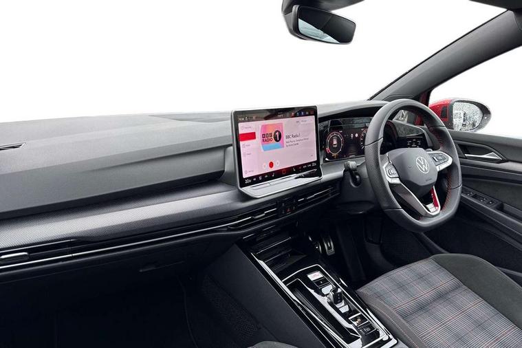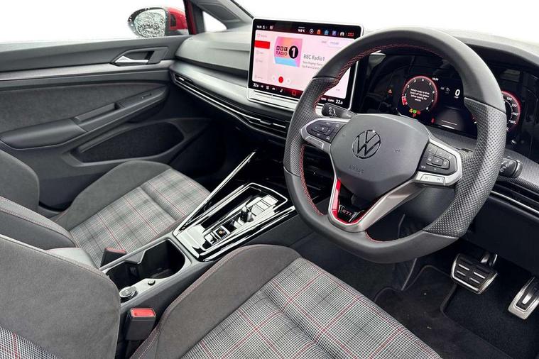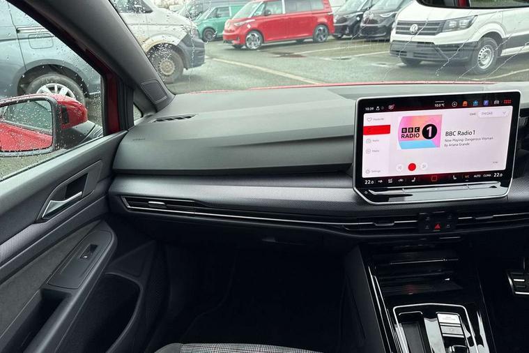 Activated carbon canister, Adaptive cruise control (ACC), Advanced driver attention and drowsiness monitor, Dynamic road sign display, E-Sim card for online connectivity, eCall emergency call system, Multi-color Digital cockpit pro, selection of different info profile possible, Multifunction front facing camera for distance control, Navigation system, Oncoming vehicle braking when turning including swerve support, Side assist blind spot lane change system, rear traffic alert and exit warning system, Speed limiter, Speedo, rev counter, electronic odometer, trip, service interval display, exterior temperature and fuel gauge, Traffic jam assist, Voice enhancer and voice control, Warning signal and warning light for front and rear seatbelts not fastened, We connect plus preparation, We connect preparation, Wireless app connect, Front differential lock, Petrol Particulate Filter, Start-stop system with battery regeneration (recuperation - energy recovery during braking), 2 USB C ports in front, 2 USB charging sockets on the centre console in the rear charging capacity upto 45W, Digital radio reception (DAB), Diversity antenna for FM reception, Gaming platform via car app, Infotainment system with 12.9" display, Mobile phone interface with inductive charging feature, 3rd brake light, Auto dimming rear view mirror, Automatic headlamp activation with Coming home and Leaving home feature, Body colour door handles, Body coloured bumpers, air intake in honeycomb structure, Exterior mirrors convex on the left and aspherical on the right, Front and rear electric windows, Front fog lamps and cornering light, Heat insulating windshield made of laminated glass, Illuminated lighting animation with wake up/goodbye scenario, LED separate daytime running light, Nameplate 'GTI' set, Rain sensor, Rear exhaust tailpipe, Rear fog light on one side and reversing lights on both sides, Rear side wing doors, Rear windscreen washer and wiper with interval delay, Remote electrically foldable door mirrors, puddle lights and reverse activated passenger's door mirror, Welcome light with surround lighting, 12V socket in front centre console, 12V socket in luggage compartment, 3 rear head restraints, 3 seat bench in 2nd row, 30 colour ambient lighting, illuminated center console storage compartment in front, Air care climatronic 3 Zone automatic climate control with rear air conditioning control panel, Aluminium gearshift handle, Brushed stainless steel pedals, Chrome plated radiator grille inserts, air vent surrounds and light switch surrounds, Entry lights, Front + rear black carpet mats, Front centre armrest, ISOFIX anchors for child seats on outer rear bench seats and on front passanger seat compatible for i-Size, Luggage compartment lighting, Rear cupholder and loadthough, Single front passenger seat, Soul black instrument panel, Soul black roof lining, Split folding backrest with centre armrest and unsplit rear seat bench, Sun visors with illuminated vanity mirrors, Driver assistance pack - Golf Estate/Hatchback Auto, Technology park and comfort pro package - Golf Hatchback, 3 point height adj front seatbelts + pretensioners, 3 rear three point seatbelts, ABS, Autonomous emergency braking front assist with pedestrian and cyclist monitoring, Child locks on rear doors, Driver and front passenger airbag with front passenger airbag deactivation, Electronic parking brake with auto hold, ESC (Electronic Stability Control), Extended pedestrian protection measures, Hill start assist, Rear disc brakes, Two tone horn, Tyre pressure loss indicator, Volkswagen roadside assistance, Anti theft wheel bolts, Preparation for alcohol interlock, Decorative inserts carbon grey for dashboard and front door trim panels, Sporty vehicle dynamics, Tool kit for tyre mobility set, Tyre mobility kit Includes 12V compressor and tyre sealant,