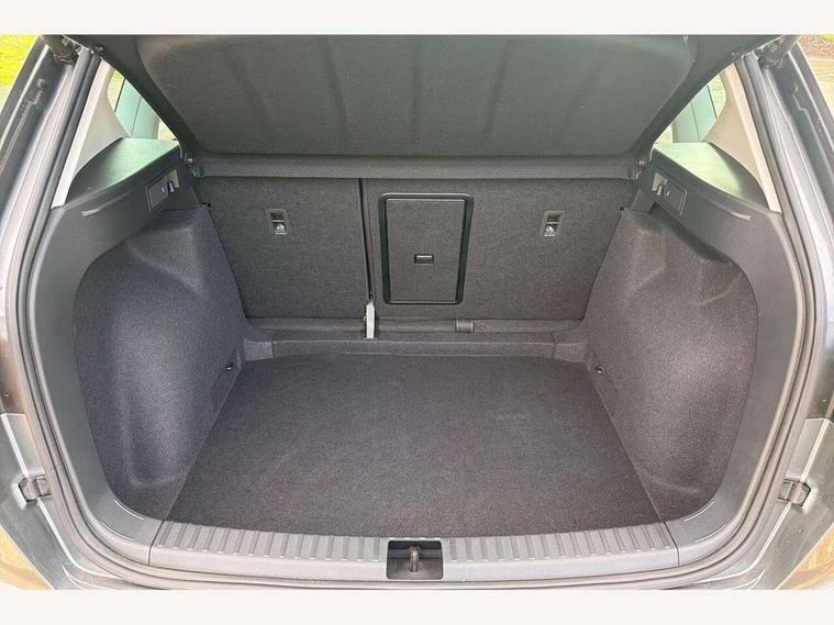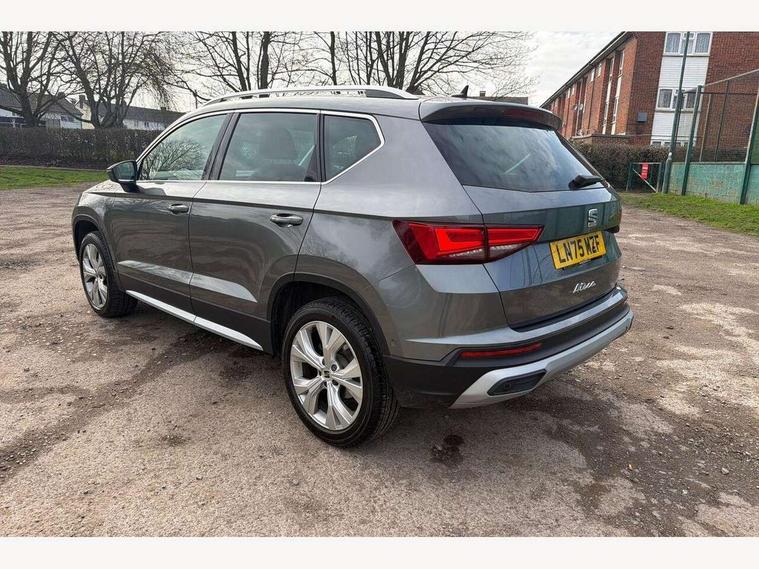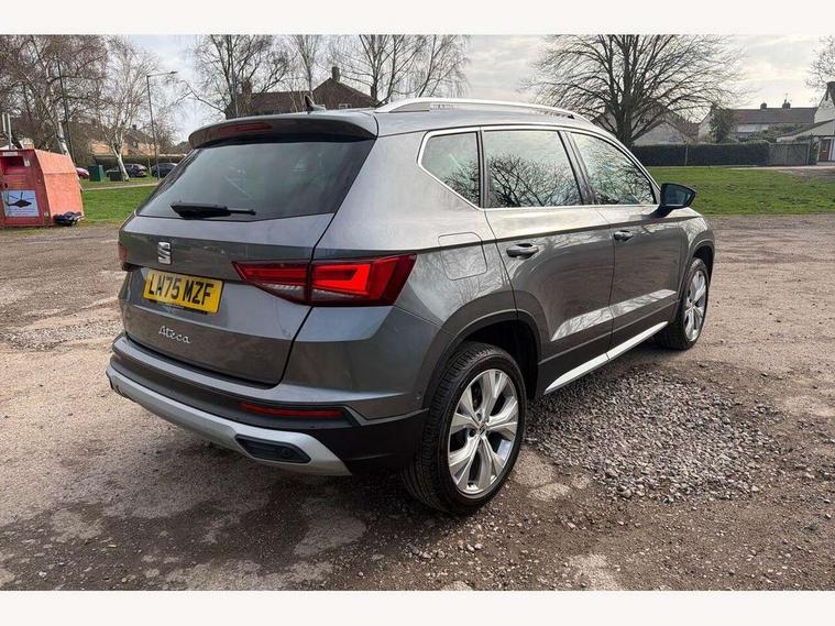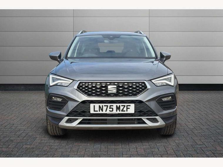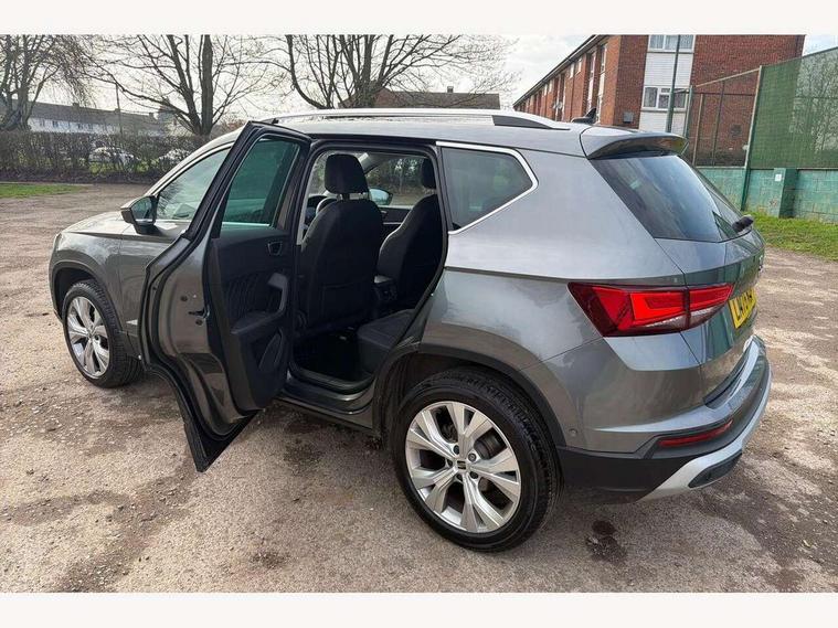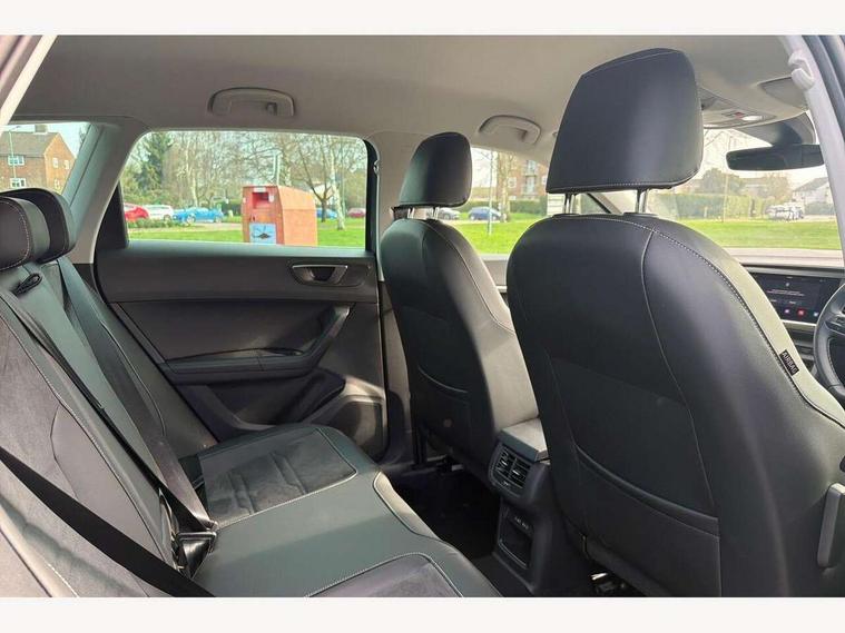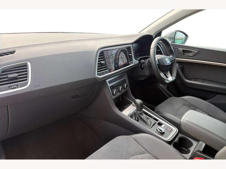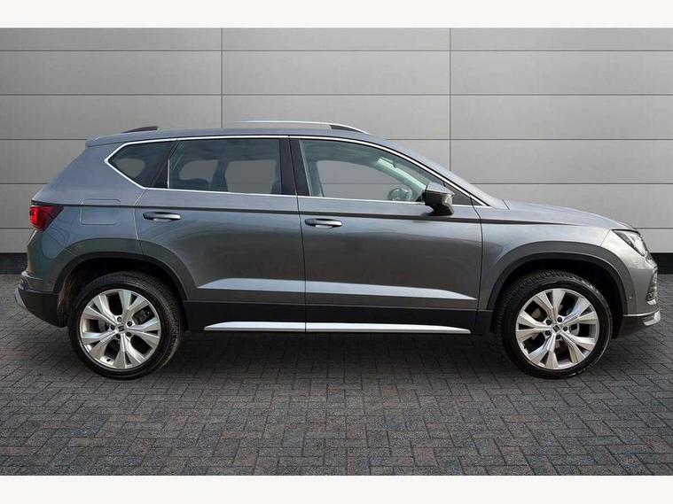 8" Digital cockpit, Colour multi-function on board computer display, E-call, Electric tailgate, Outside temperature gauge, Progressive power assisted steering, Rear view camera, SEAT drive profile with driving experience button - Normal, Sport, Eco and Individual mode, gearshift, steering and throttle response, Self parking functionality (includes front and rear parking sensors), Start/stop system, Trip computer, wired and wireless full link smartphone integration, Wireless phone charger, Steering wheel mounted audio/phone controls, Black wheel arch surrounds, Body colour bumpers, Chrome front grille frame, Chrome roof rails, Chrome side window trim, Dark tinted rear windows, Daytime running lights, Door mirrors with welcome light silhouette, Dynamic headlight range control with self adjusting whilst driving, Electric adjustable/heated/folding door mirrors, Front and rear electric windows, Front grille hot stamping, Full LED headlamps with lens and LED front fog lamps with cornering function, Heat reflecting windscreen, Illuminated aluminium front door sill, LED 3rd brake light, LED rear tail lights with dynamic indicators, Rear exhaust tailpipe, Rear fog lights, Rear side wing doors, Rear wash/wipe, Reflex silver side mouldings, Variable front intermittent wipers, 12V socket in front, 3 seat bench in 2nd row, 60/40 split folding rear seat, Dinamica upholstery with front comfort seats, Drawer under right front seat, Dual zone climate control, Front and rear head restraints, Front centre armrest, Front seat back storage pockets, Height adjustable driver and passenger seat with lumbar adjustment, ISOFIX points in outer rear seats with top tether anchorage points, Leather sports steering wheel and gear knob, Rear armrest and easy back seat release mechanism from boot, Single front passenger seat, Steering wheel mounted gearshift paddles, Convenience pack - Ateca, Interior lighting pack - Ateca, Navigation system pack with DAB - Ateca, Safety and driving pack (M) - Ateca, Safety and driving pack with attention and drowsiness assist - Ateca, 3x3 point rear seatbelts, ABS, Traction control system (TCS), Electronic stability control (ESC) and Electronic differential lock system (XDS), Airbags - Driver and front passenger airbag with deactivation, front side, two curtain and driver's knee airbags, Electric parking brake with auto hold function, Front and rear seatbelt reminder, Hill hold control, Manual rear child locks, Single tone horn, Tiredness recognition system, Tyre pressure monitoring system, Alarm, Keyless entry, Locking wheel bolts, Remote central locking, Chrome interior detailing, 18" Brillaint silver alloy wheels,