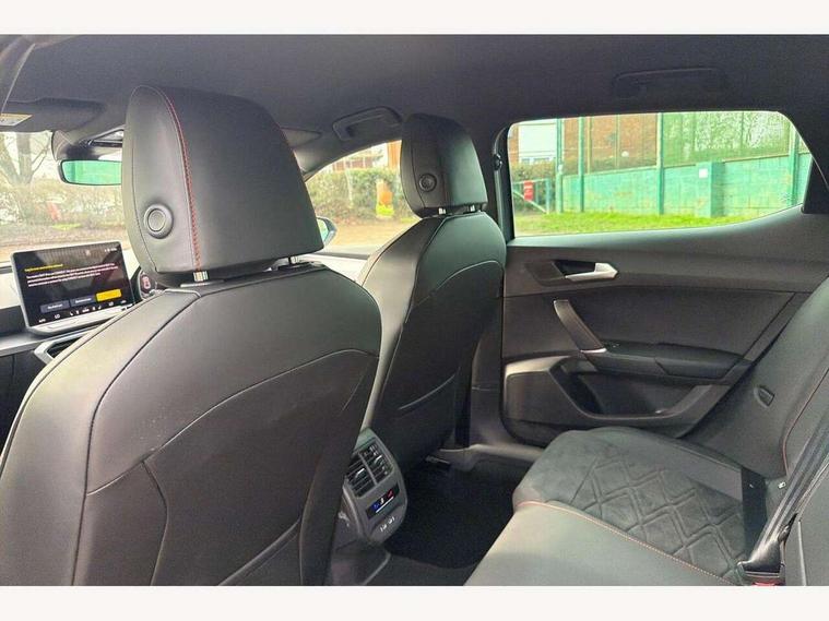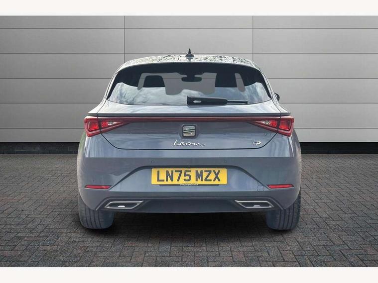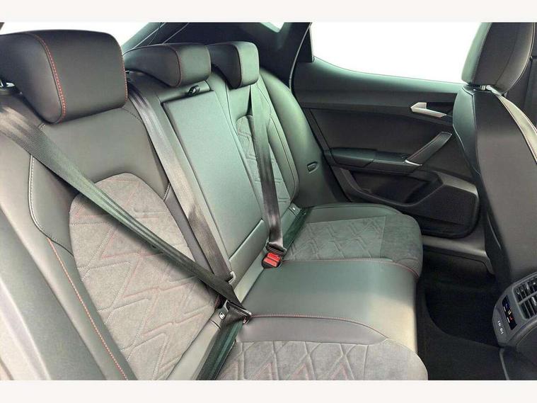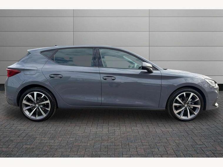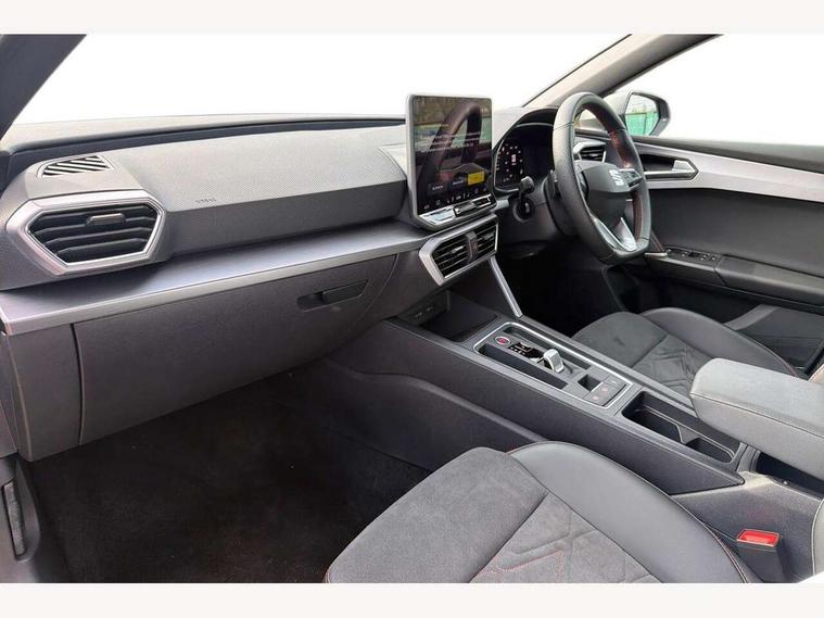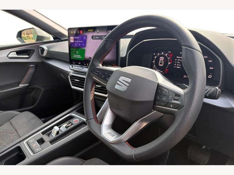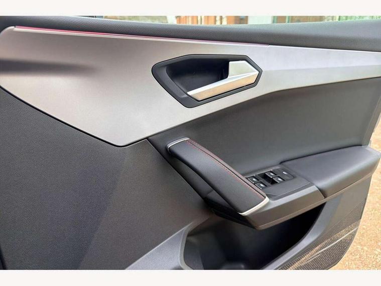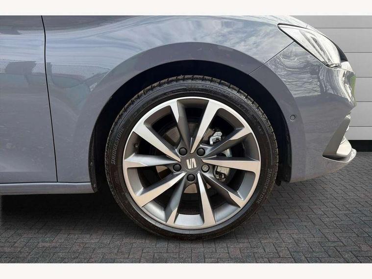 Digital cockpit, E-call, Front assist with forward collision warning braking reaction to vehicles, pedestrians and cyclists, Full link smartphone integration with Mirror Link, wireless Apple CarPlay and wired Google Android Auto, Lane assist, Lockable tailgate, Park assist (inc front/rear parking sensors), Power assisted speed sensitive electro-mechanical steering, Rear view camera, RPM, trip computer, outside temp gauge, instrument light brightness, low fuel warning light, lights on reminder, gearshift indicator, SEAT drive profile with 4 modes (Eco/Normal/Sport/Individual), throttle response and gearshift mode, Service interval indicator, Start/stop system with regenerative braking, Sports suspension, XDS electronic differential lock and dynamic traction support, 7 speakers, Auxiliary input socket, Auto dimming rear view mirror, Body colour door handles, Body coloured bumpers, Dark tinted rear windows, Door mirror LED indicator lights, Dynamic headlight range control, Electric adjustable/heated/folding door mirrors with memory, Electric front/rear windows, FR sports bumper, Illuminated front door sill, LED front fog lamps, LED Headlights with dynamic turn signals, LED tail lights and rear fog lights with rear coast to coast lighting, Rear side wing doors, Rear wash/wipe, Separate daytime running light with automatic headlight control and coming home feature, Third brake light, Welcome light silhouette from exterior mirrors, Windshield wiper intermittent control with light/rain sensor, 12v power point in centre console, 3 seat bench in 2nd row, 60/40 split rear bench seat with armrest, Ambient lighting with glovebox, footwell and single monocolour, Black headlining, Dust/pollen filter, Folding boot cover, Four x USB Type C ports, Front and rear height adjustable headrests, Front and rear reading lights X 4, Front centre armrest, Front seatback storage pockets, Heated front seats, Height/reach adjust steering wheel, Interior wraparound lighting (FR), ISOFIX points in outer rear seats with top tether anchorage points, Luggage tie-down hooks, Lumbar adjustment for front seats, Manual driver seat with memory and height adjustable passenger seat, Microsuede cloth upholstery, Single front passenger seat, Sunvisors with covered illuminated mirror, Three zone climate control, Media system plus with navigation - Leon, 3 point seatbelts on all rear seats, ABS, Brake control system - ESC and brake booster, Child proof door locks, Driver and front passenger airbags with front passenger airbag de-activation, front side and curtain airbags, Electronic parking brake, Extended safety system - seat belt tensioner, window closure and hazard lights, Hill hold control, Rear disc brakes, Seat belt reminder for front and rear seats, Tiredness recognition system, driver alert system, Tyre pressure monitoring system, Anti theft alarm system with interior monitoring in cab, backup horn and towing protection, KESSY Go (Keyless start), Locking wheel bolts, Wireless phone charging, Chrome interior detailing, 18" Performance machined alloy wheels with 92Y tyres, Tool kit,