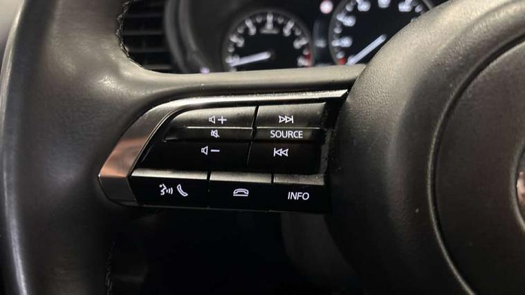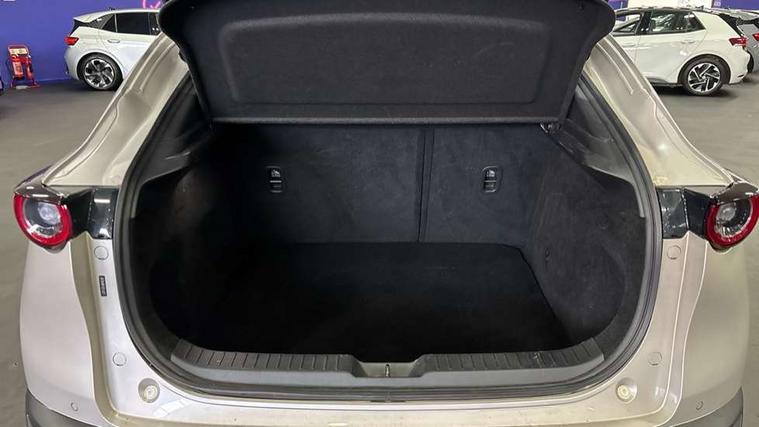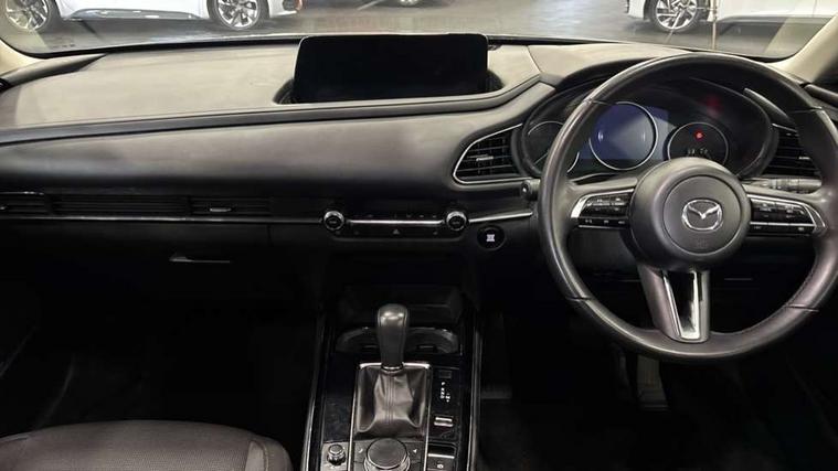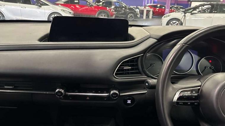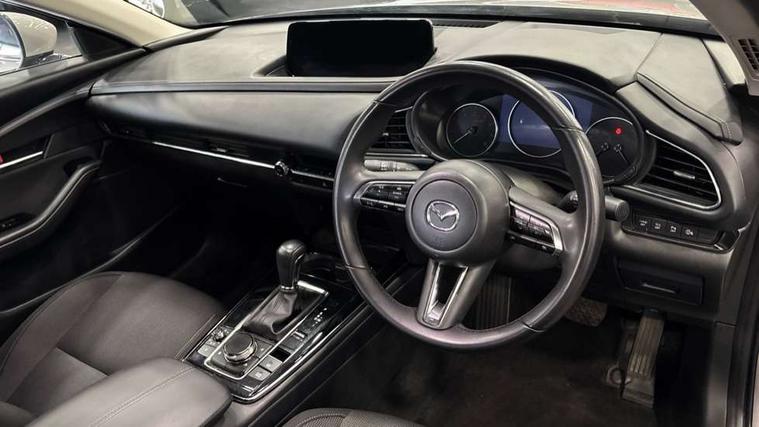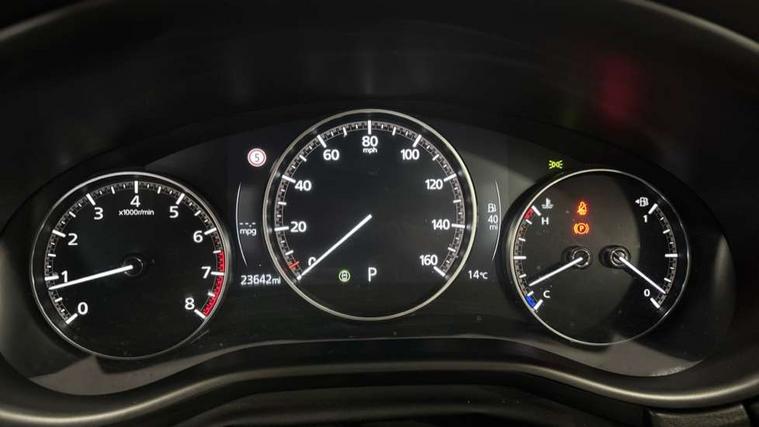 10.25" display with Mazda Connect infotainment, 7" TFT Colour driver instrument panel display, Adaptive cruise control (Mazda radar cruise control) features stop and go, Blind spot monitoring with rear cross traffic alert, Drive mode selector, Driver attention alert system, E-call with GPS, Emergency stop signalling system, Engine start/stop button, Front and rear parking sensors, Integrated Alexa Voice Assistant, Integrated bluetooth, Integrated Mazda navigation system, Intelligent speed assist, Lane keep assist system (LAS) with Lane departure warning system (LDWS), Mazda connected services, PAS, Qi wireless charging, Reversing camera, Service indicator, Tailgate, Traffic sign recognition, Trip computer, Windscreen projected colour active driving display (HUD), Wireless Apple CarPlay/Android Auto, Cylinder Deactivation, i-stop, 2 x USB Type-C inputs, AM / FM / DAB radio with 8 speakers, Multimedia Commander including separate volume dial, Steering wheel mounted audio/bluetooth controls, B-pillar and C-pillar garnishes in satin black finish, Auto dimming driver's door mirror, Auto dimming rear view mirror, Body coloured, electrically adjustable, heated auto power folding door mirrors with integrated indicators, Chrome finish signature wing in front grille, Coming/leaving home lighting function, Dual bright finish exhaust tip trim, Dusk sensing headlights, Electric front/rear windows with one touch auto up/down, Front kodo turn signal, Gloss black rear roof spoiler, LED auto headlight levelling, LED headlights with halogen daytime running lights and high beam control, LED rear combination lights, Rain sensing front wipers with adjustable speed and intermittent wipe, Rear fog lights, Rear side wing doors, Rear wiper, Satin black front grille, Third brake light, 12V power outlet in centre console, 3 seat bench in 2nd row, 60/40 split fold down rear seats, Cloth upholstery with interior accents, Dark cloth door panel inserts, Dashboard, door cards and front centre armrest in black cloth, Driver and front passenger visors with covered vanity mirror and driver ticket holder, Driver seat manual slide, recline, height and seat tilt adjust, Driver, front passenger and two rear door storage, Driver, Front passenger and two rear grab handles with coathooks, Dual zone climate control air conditioning with rear air vents, Folding rear centre armrest with two cup holders, Front and rear (x3) head restraints, Front and rear LED lighting, Front armrest, Front centre storage with two cupholders, Front passenger seatback pockets, Front passengers seat manual slide, recline and height adjustment, Gear shift indicator, Glovebox illumination, Heated front seats with 3 stage setting, ISOFIX child seat anchorage points attached on outer rear seats, Leather wrapped gear shift knob, Leather wrapped steering wheel with telescopic and tilt adjustment, LED luggage compartment lighting, Light roof headlining and pillars, Roof mounted sunglasses holder, Single front passenger seat, 3 point ELR front seat belts x2 with pretensioners, 3 point ELR rear seat belts, Anti-lock braking system (ABS), Drivers knee airbag, DSC - Dynamic Stability Control, Electronic parking brake with auto disengage function and auto hold function, Front and rear curtain airbags, Front dual stage driver and single stage front passenger airbags, Front passenger airbag cut-off switch, Front side airbags, Front smart city brake support, G-Vectoring control plus, Hill launch assist, Manual child lock in rear doors, Mild Hybrid system with regenerative braking, Seatbelt reminder for driver/front passenger and rear seats, Traction control system (TCS), Tyre pressure monitoring system (TPMS), Remote central locking with deadlocking and automatic door lock when driving, Smart keyless entry, Thatcham accredited alarm and immobiliser, 16" Grey metallic alloy wheels, Emergency tyre repair kit,