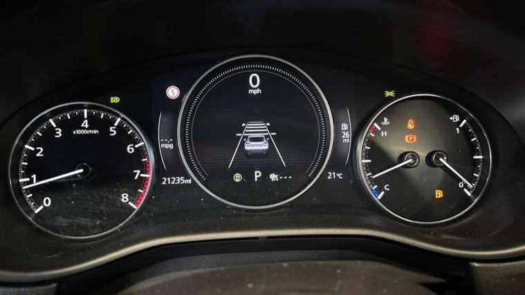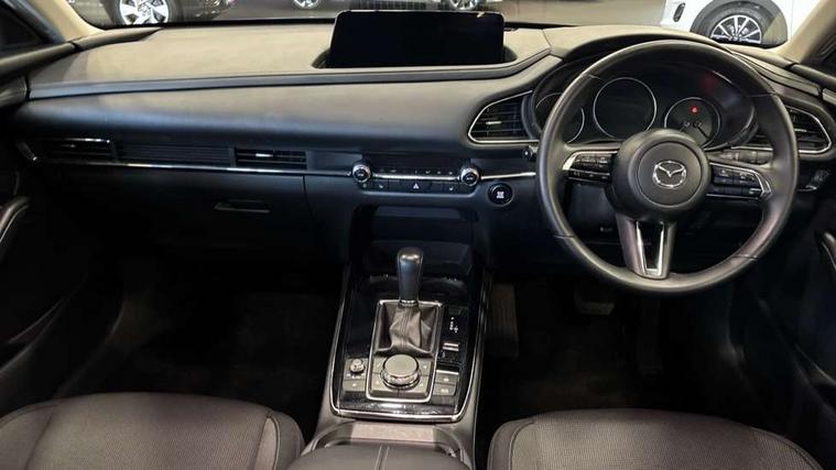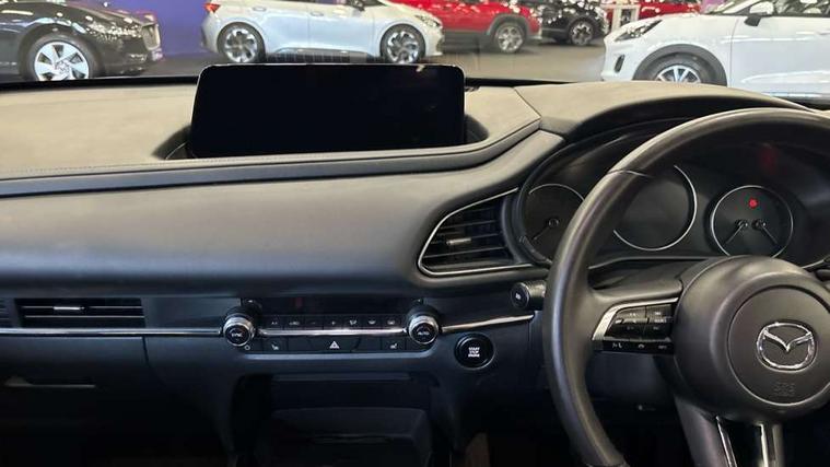 10.25" display with Mazda Connect infotainment, 7" TFT Colour driver instrument panel display, Adaptive cruise control (Mazda radar cruise control) features stop and go, Blind spot monitoring with rear cross traffic alert, Drive mode selector, Driver attention alert system, E-call with GPS, Emergency stop signalling system, Engine start/stop button, Front and rear parking sensors, Integrated Alexa Voice Assistant, Integrated bluetooth, Integrated Mazda navigation system, Intelligent speed assist, Lane keep assist system (LAS) with Lane departure warning system (LDWS), Mazda connected services, PAS, Qi wireless charging, Reversing camera, Service indicator, Tailgate, Traffic sign recognition, Trip computer, Windscreen projected colour active driving display (HUD), Wireless Apple CarPlay/Android Auto, Cylinder Deactivation, i-stop, 2 x USB Type-C inputs, AM / FM / DAB radio with 8 speakers, Multimedia Commander including separate volume dial, Steering wheel mounted audio/bluetooth controls, B-pillar and C-pillar garnishes in satin black finish, Auto dimming driver's door mirror, Auto dimming rear view mirror, Body coloured, electrically adjustable, heated auto power folding door mirrors with integrated indicators, Chrome finish signature wing in front grille, Coming/leaving home lighting function, Dual bright finish exhaust tip trim, Dusk sensing headlights, Electric front/rear windows with one touch auto up/down, Front kodo turn signal, Gloss black rear roof spoiler, LED auto headlight levelling, LED headlights with halogen daytime running lights and high beam control, LED rear combination lights, Rain sensing front wipers with adjustable speed and intermittent wipe, Rear fog lights, Rear side wing doors, Rear wiper, Satin black front grille, Third brake light, 12V power outlet in centre console, 3 seat bench in 2nd row, 60/40 split fold down rear seats, Cloth upholstery with interior accents, Dark cloth door panel inserts, Dashboard, door cards and front centre armrest in black cloth, Driver and front passenger visors with covered vanity mirror and driver ticket holder, Driver seat manual slide, recline, height and seat tilt adjust, Driver, front passenger and two rear door storage, Driver, Front passenger and two rear grab handles with coathooks, Dual zone climate control air conditioning with rear air vents, Folding rear centre armrest with two cup holders, Front and rear (x3) head restraints, Front and rear LED lighting, Front armrest, Front centre storage with two cupholders, Front passenger seatback pockets, Front passengers seat manual slide, recline and height adjustment, Gear shift indicator, Glovebox illumination, Heated front seats with 3 stage setting, ISOFIX child seat anchorage points attached on outer rear seats, Leather wrapped gear shift knob, Leather wrapped steering wheel with telescopic and tilt adjustment, LED luggage compartment lighting, Light roof headlining and pillars, Roof mounted sunglasses holder, Single front passenger seat, 3 point ELR front seat belts x2 with pretensioners, 3 point ELR rear seat belts, Anti-lock braking system (ABS), Drivers knee airbag, DSC - Dynamic Stability Control, Electronic parking brake with auto disengage function and auto hold function, Front and rear curtain airbags, Front dual stage driver and single stage front passenger airbags, Front passenger airbag cut-off switch, Front side airbags, Front smart city brake support, G-Vectoring control plus, Hill launch assist, Manual child lock in rear doors, Mild Hybrid system with regenerative braking, Seatbelt reminder for driver/front passenger and rear seats, Traction control system (TCS), Tyre pressure monitoring system (TPMS), Remote central locking with deadlocking and automatic door lock when driving, Smart keyless entry, Thatcham accredited alarm and immobiliser, 16" Grey metallic alloy wheels, Emergency tyre repair kit,