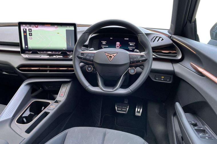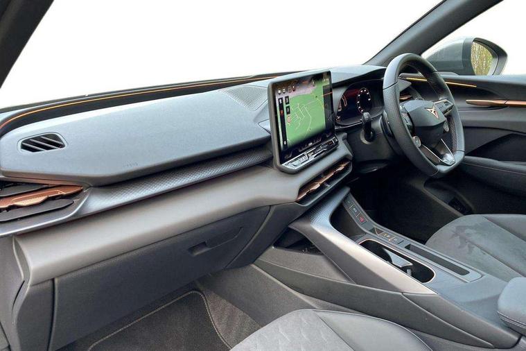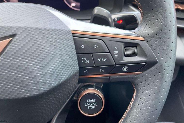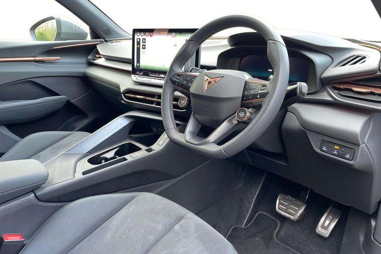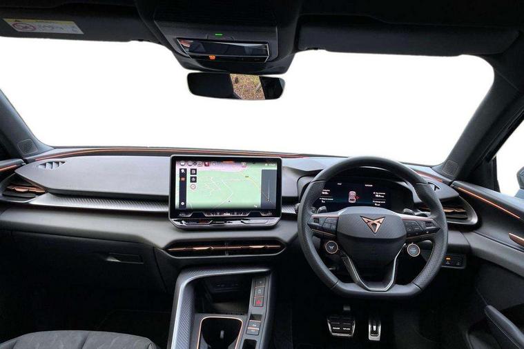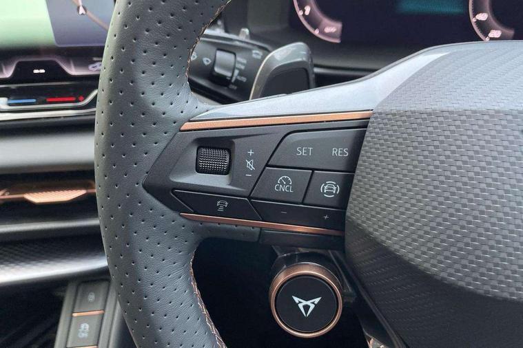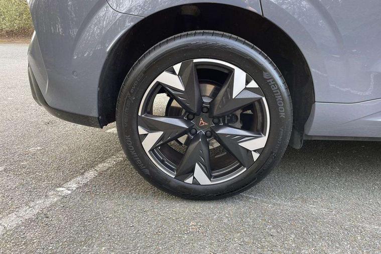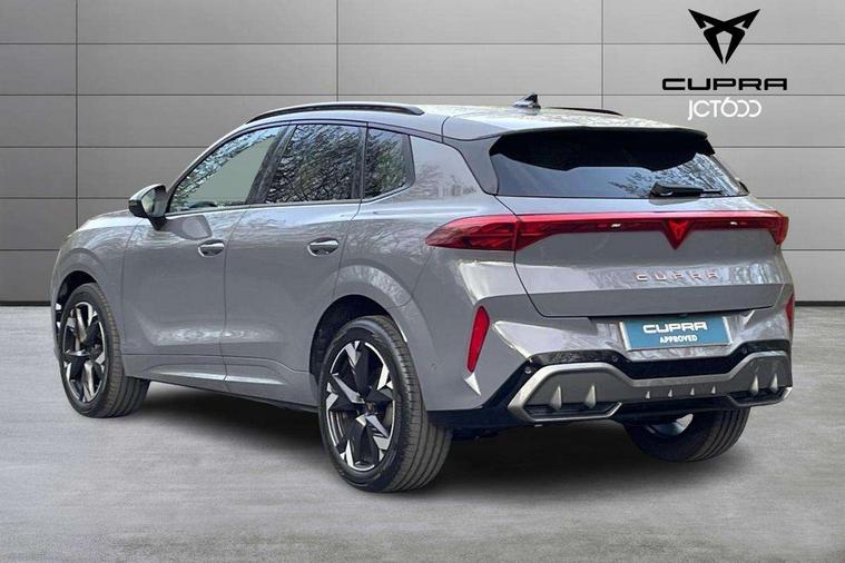 10.25" digital cockpit and configurable dashboard, Adaptive cruise control with follow-to-stop and speed limiter, Advanced driver alert system, Advanced lane assist with semi-automatic vehicle control in a medical emergency and traffic jam assist, Driving profile selection and conventional shock absorber, Dynamic road sign display, E-call, Electric tailgate with virtual pedal, Emergency steering support with turn assist, Front and rear parking sensors, Front assist (Forward collision warning with automatic braking) with multifunction camera and front cross traffic assist, Head up Display, Intelligent park assist, Media system with Nav - 12.9" touch display, voice control, full link phone (wired/wireless), DAB and Steering wheel mounted controls, Rear traffic assist, Side and exit assist, Speed sensitive power steering, Start/stop system with regenerative braking, Top view camera (front camera, rear camera, 2 side cameras), Wireless phone charger, Auto dimming rear view mirror, Black roof rails, CUPRA 3D rear lights with ceremony & swiping indicator and illuminated logo, Dark tinted rear windows, Daytime running lights with automatic headlight control and Coming and Leaving home function, Door mirrors with memory function and lowing function on passenger mirror, Dynamic headlight range control, Electric front/rear windows, Electrically adjustable, heated and folding door mirrors, Front fog lamps with cornering function, Heat reflecting windscreen, High beam assist, LED headlamps with signature "CUPRA LED", Rain sensing wipers, Rear fog light on one side, back up light on both sides, Rear side wing doors, Rear wash/wipe, Third brake light, Welcome lights (within exterior mirror housing), 3 seat bench in 2nd row, Black roof lining, Cupra sports pedals, Dinamica cloth upholstery, Driver seat memory function, Electrically adjustable front seats including lumbar support, Four x USB Type C ports (2 in front and 2 in rear), Front and rear head restraints, Front and rear reading lights X 4, Front centre armrest, Heated front seats, Heated leather wrapped multi function sports steering wheel with tiptronic, Illuminated interior front door sills, Isofix, Operating voltage 12V, Single front passenger seat, Smart wraparound interior lighting, Sunvisors with illuminated mirror, Three zone climate control with control panel in rear, Unsplit rear seat bench, split folding backrest, with centre armrest, Variable luggage/load compartment floor, 3 point seatbelts in front with pretensioner and electric height adjustment, 3 point seatbelts on all rear seats, Brake control system - ESC and brake booster, Child proof door locks, Driver and front passenger airbags, Electronic parking brake, Front and rear disc brakes, Front interaction airbag, Front passenger airbag deactivation switch, Front side airbags with curtain airbags, Pre-crash front and rear seat belt tensioner, window closure and hazard lights, Tyre pressure monitoring system, Visual and acoustic seat belt reminder, electric contact in front and rear, Anti theft alarm, Keyless locking and starting system with keyless access, Locking wheel bolts, Black decorative trims, Chrome interior detailing, 19" Spectrum exclusive machine alloy wheels, Tool kit,