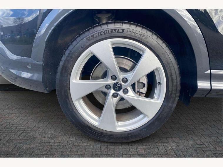 Adaptive cruise control, Advanced driver attention alert, Audi application store, Audi connect emergency call and service, Audi drive select, Audi smartphone interface, Audi virtual cockpit plus with 11.9" OLED colour display, Camera based traffic sign recognition, Fatigue monitor, Front cross traffic intersection assist, Lane departure warning system, MMI navigation plus with high resolution 14.5" OLED touchscreen colour display, Park assist plus, Parking system plus with 360 display, PAS, Reversing camera, Swerve assist and turn assist, Traffic sign based speed limiter, 2 USB-C ports in both the front and rear, Audi sound system impressive sound with 8 loudspeakers including centre speaker and subwoofer, 6-channel amplifier with a total output of 180 watts, DAB Digital radio, Smartphone compartment with wireless charging, Auto dimming rear view mirror, Body coloured door mirrors, Coming/leaving home lighting function, Electrically adjustable heated and folding + automatically dimming exterior mirrors, Front and rear electric windows, Front door sill trims with aluminium inlays, illuminated with 'S' logo, Grill frame, inlay and front air inlets in matt anthracite chrome, Headlight cleaning system, Heated rear window, High beam assist, High gloss window surrounds, LED headlights plus incl. digital DRL, dynamic coming and leaving home function with turning/all weather/motorway/manouevring and intersection lights, LED rear lights pro incl. dynamic rear indicators and illuminated light strip with animated coming and leaving home function, Logo projection light in exterior mirrors, Privacy glass, Projection third brake light for rear window in LED, Radiator grille in phantom black, Rear and side windows with heat insulating glass, Rear honeycombe grille in matt black with inlay in matt anthracite chrome, Rear side wing doors, Rear wash/wipe, S Line badge on the front wings, S line bumpers in contrasting Volcano grey metallic paint finish, Towbar preparation, Windscreen with acoustic glazing, 3 rear head restraints, 3 seat bench in 2nd row, 3 spoke leather steering wheel with multi-function buttons with touch control, flattened on top and bottom, with S badging and contrast stitching, 40:20:40 split folding rear seat bench with centre armrest and cup holders, Comfort centre armrest front, Deluxe 3 zone electronic climate control, Front and rear floor mats, Front seats with manual adjustment for position and 4-way electric lumbar support, Front sport seats with integrated head restraints, Headlining in black cloth, Heated front seats, i-Size child seat mounting on the front passenger side and outer rear seats, i-Size and top tether on the outer rear seats, Interior trim in aluminium look, Luggage compartment lid, electrically opening and closing, Manual steering column adjustment, S embossed logo on front sport seats, Single front passenger seat, Softwrap in leatherette, Stainless steel pedals and footrest, Steering wheel grips in perforated leather and shift paddles, Ambient lighting package plus - Q5, Storage and luggage compartment pack - Q5, 3x3 point rear seatbelts, ABS, Acoustic vehicle alerting system, Driver and front passenger airbag with passenger airbag deactivation, Electric child safety locks, First aid kit with warning triangle and high visibility vests, Front emergency brake assist, Front side airbags with head airbag system and front interaction airbag, Hill hold assist, Rear seat occupant reminder, Tyre pressure loss indicator, Anti theft alarm, Anti-theft wheel bolts, Remote control key with SAFELOCK and keyless go, Accent surfaces and control buttons in gloss black, Anthracite matt brushed aluminium inlays with linear embossing, Black dashboard with contrast stitching, Upper and lower interior elements in artificial leather, Tyre repair kit,