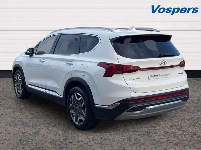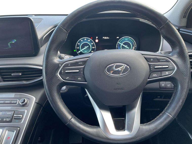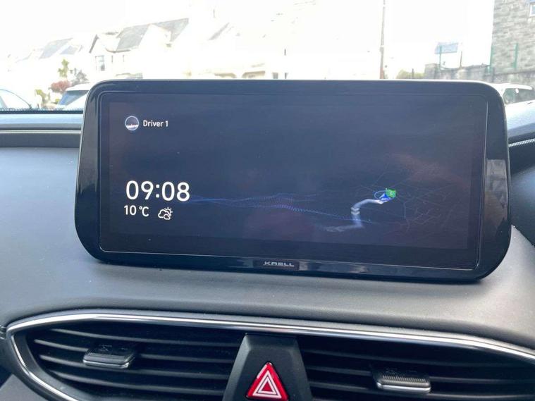 10.25" touchscreen satellite navigation includes traffic messaging channel, mapcare, live services and bluelink, 12.3" TFT supervision cluster display, Apple car play/Android Auto, Blind spot collision avoidance assist, Blind spot monitor, Bluetooth connectivity with voice control, Cruise control - smart adaptive speed control with stop and go function, Drive mode selector, Driver attention alert system, E-call, Emergency stop signalling system, Forward Collision Avoidance Assist (FCA) - Car, Pedestrian and Cycle, Forward Collision Avoidance Assist Junction Turning (FCAJX), Front parking sensor, Head up Display, Highway driver assist, Intelligent speed limit warning, Lane departure warning system with lane keep assist - LKAS, Parking system with surround view monitor, PAS, Rear parking sensor, Remote smart parking, Reverse parking collision aviodance assist, Safe exist assist (SEA), Smart electric tailgate with hand's free opening function, Smart posture control, Smartphone connectivity, Smartphone wireless charging plate, Trip computer, Self levelling suspension, Auxiliary input socket, DAB Digital radio, Krell premium audio with 10 speakers including external amplifier and subwoofer, Rear USB port, Steering wheel mounted controls, USB connection located in centre console, Automatic defog system, Automatic dimming rear view mirror, Automatic headlights with dusk sensor, Automatic windscreen wiper control, Body colour door handles with chrome inserts, Body coloured bumpers, Body coloured door mirrors, Dynamic bending headlight/cornering lights, Electric adjustable/heated/folding door mirrors, Electric front/rear windows/one touch/anti trap, Electric glass tilt and slide panoramic sunroof, Follow me home headlights, Heated rear windscreen with washer, LED daytime running lights, LED front fog lights, LED Headlights, LED rear fog light, LED rear lights, Positioning Lights - LED, Privacy glass in rear window and tailgate, Puddle lights, Rain sensor, Rear wash/wipe with intermittent wipe setting, Roof rails, Smart high beam headlights, Solar glass with windscreen shade band, Trailer stability assist, Variable front intermittent wipers, Windscreen wiper de-icer, 12V power point in luggage area, 12V power points in front + rear centre consoles, 50/50 split/folding 3rd row of seats, 60/40 split folding slide/recline seats 2nd row, Adjustable head restraints, Air conditioning - rear manual temperature control, Bottle holders, Driver seat memory function, Driver's lumbar support, Driver's seat electric adjustments, Driver/passenger sunvisors + illuminated vanity mirrors (drivers with ticket holder), Dual zone climate control, Faux leather door trim, Front and rear door pockets, Front armrest with storage compartment, Front cupholders, Front map reading lights, Front passenger's seat electric adjustments, Front seat and rear pockets, Front/rear interior lights, Grab handles, Heated front seats, Heated outer rear seats, Heated steering wheel, Height/reach adjustable steering column, Isofix child seat preparation for front passenger seat, Isofix on 2nd row outer seats, Leather upholstery, Leather wrapped gear shift knob, Leather wrapped hand brake, Lockable/illuminated air conditioned glovebox, Luggage compartment lighting, Luggage hooks, Luggage net, Manual rear door side blinds, Multifunction leather steering wheel, One-touch folding rear seats, Overhead console with sunglasses holder, Rear armrest with storage, Retractable load area cover, Underfloor storage system in load area, Ventilated front seats, Trailer wiring pack - Santa Fe, 3 point seatbelts on all seats, ABS/EBD, Childproof rear door locks, Curtain airbags, Downhill brake control, Driver and passenger airbags, Electric parking brake, ESP, Front seatbelt pretensioner, Front side airbags, Height adjustable front seatbelts, Hill start assist control (HAC), Passenger airbag deactivate switch, Rear seat belt pretensioners, Rear seat Occupancy alert, Seat belt reminder, Seatbelt warning lamp, Traction control, Tyre pressure monitoring system, Deadlocks, Engine immobiliser, Keyless entry with start/stop button, Locking wheel nuts, Remote control central locking, Speed sensitive auto door locking, Thatcham category 1 alarm, Faux leather wrapped dashboard, 19" Alloy wheels, Tyre repair kit,