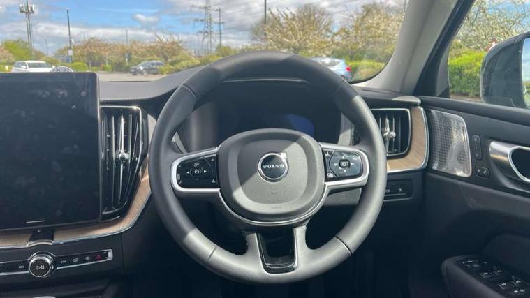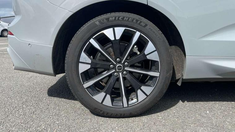 11.2" centre console touch screen, 12.3" Progressive Driver Display, 360 degree surround view parking camera with side proximity sensors, Adaptive cruise control, Adjustable steering wheel force, Android auto (Wired), Apple carplay (wired), Bluetooth handsfree system, Drive mode settings, Driver alert control with lane keeping aid, Emergency services call system, Front and rear park assist, Google Automotive Services, Intelligent speed assistance, Oncoming Lane Mitigation, PAS, Power operated tailgate with handsfree opening and closing, Service interval indicator, Speed limiter, Speed sensitive steering, Trip computer, Volvo cars services with app, Volvo on call with App, Wireless/Inductive Mobile Phone Charging, 2 phase on board charger 6.4kW (home charging limited to 3.7kW), 6m 3 phase 16amp Type 2 / mode 3 charge cable, 8 speed automatic transmission with start/stop + manual change functions, Active four-C chassis + four corner adaptive damper with electronic rear air suspension, Electric rear axle drive, Recharging port located in nearside front wing, DAB Digital radio, Low speed exterior sound speaker, Premium sound by Bowers and Wilkins, dirac live, dolby pro logic II surround sound, 14 speakers/1100W output and fresh air subwoofer, Steering wheel remote infotainment controls, Active bending headlights with adaptive shadow technology, Adaptive brake lights with high level LED brake lights, Auto dimming interior + exterior mirrors, Automatic headlight levelling system, Automatic LED Headlights + Active high beam incorporating daytime running lights, Dark tinted windows for rear side windows and cargo area, Electric adjustable/heated/auto power folding door mirrors, Electric front+rear windows, Front aluminium tread plates, Headlight cleaning system, High gloss black door mirrors and window surround, High gloss black front and rear bumper decoratives, High gloss black mesh front grille with high gloss black surround, Home safe and approach lighting, Integrated roof rails in high gloss black, Power glass tilt and slide panoramic sunroof with sun curtain, Puddle lights, Rain sensor with automatic windscreen wiper activation, Rear side wing doors, Rear wiper, Roof antenna, Roof spoiler, Tinted windscreen, Visible VIN plate, 12V socket in front tunnel console and luggage compartment, 2 zone electronic climate control with Clean zone air quality system and pollen filter, 3 seat bench in 2nd row, A-pillar parking ticket holder, Air purifier particulate matter (PM) 2.5 filter, B Pillar ventilation, Bright metal luggage scuff plate, Centre console cupholders and storage, Charcoal floor mats, Front and rear courtesy lights, Front and rear door pocket illumination, Front cupholder illumination, Front footwell illumination, Front reading lights, Front seat cushion extensions, Glovebox compartment with illumination, Head restraints for all seats, Heated front seats, Heated steering wheel, Height/reach adjustable steering column, Illuminated luggage compartment, Illuminated vanity mirrors + ticket holder, Inner door release handle illumination, ISOFIX attachment on outer rear seats, Load cover, Load protection net, Multi directional lumbar support, Power driver seat with memory + exterior mirrors memory, Power folding rear headrests, Power passenger seat with memory, Rear armrest with cupholder, Rear footwell and front and rear side step illumination, Rear reading lights, Rear seat concealed storage, Single front passenger seat, Tailgate illumination and ambient door lighting, Underfloor stowage compartment, Versatile split folding rear seat - 60/40, Driver assist pack without Adaptive cruise control - XC60, 5 three point seatbelts, City safety with steering support with Pedestrian + cyclist + front collision warning with full auto brake and rear auto brake, Drivers knee airbag, Dual stage driver/passenger airbags, Electronic parking brake with auto hold, First aid kit, Front seats SIPS airbags, Hill descent control - Off-road drive mode, Hill start assist, IC (Inflatable Curtains) - Full Length, Passenger airbag cut-off device, Power child locks on rear doors, Run off Road Mitigation, Run off Road Protection, Seatbelt reminder and pretensioners, SIPS (Side Impact Protection System), Slippery road and hazard light alert, Stability and Traction Control with Spin control, Engine Drag Control and Corner Traction Control, Tyre pressure monitoring system, Vehicle deceleration control with Anti-lock Brake System, Electronic Brake Distribution and Emergency Brake Assist, Warning triangle, WHIPS whiplash protection system - front, Anti-theft alarm including immobiliser/volume sensor + level sensor, Key integrated remote control central locking + fuel flap with deadlocking system and auto open/close power windows, Keyless Drive (includes Keyless Entry and Keyless Start), Locking wheel nuts, Private locking for tailgate, Tailored instrument panel with contrast stitching, Summer tyres, Tyre sealant kit + 12v compressor,