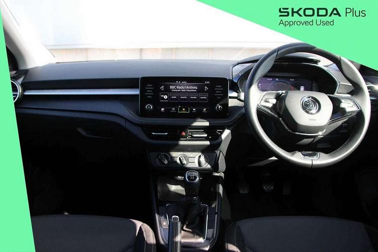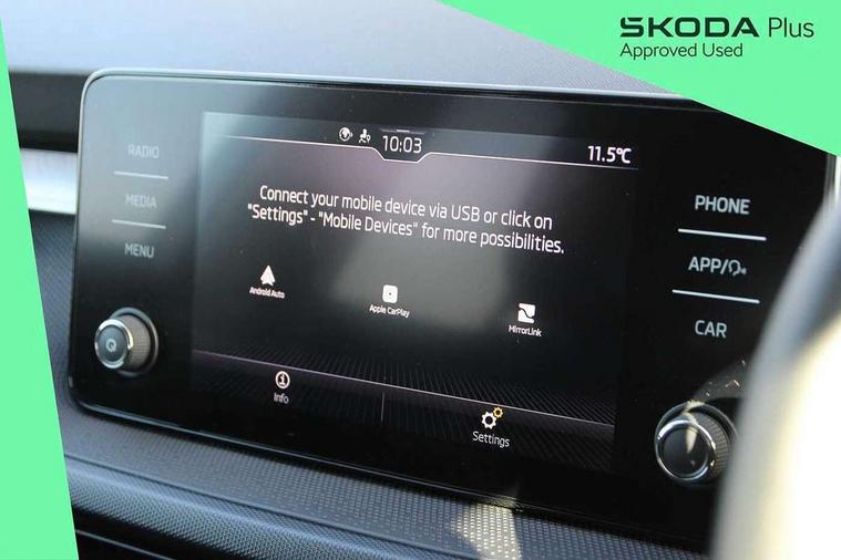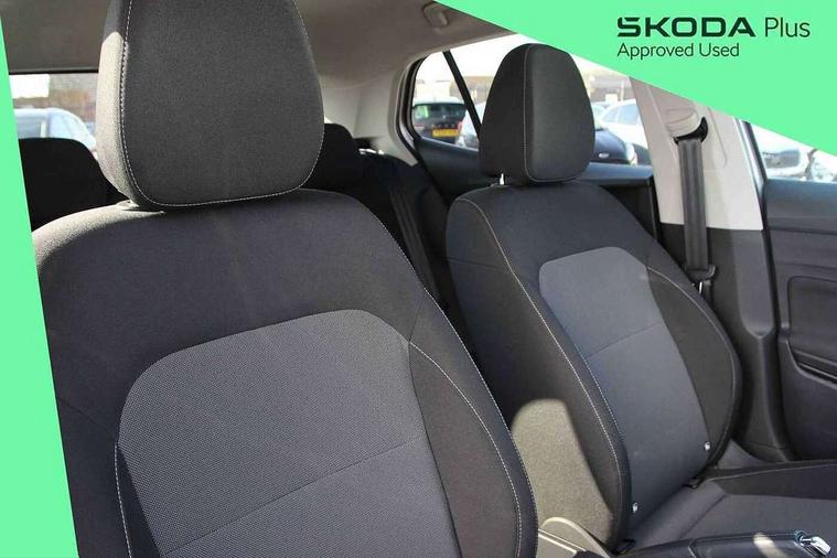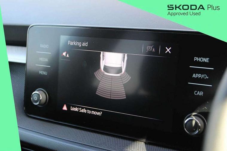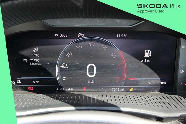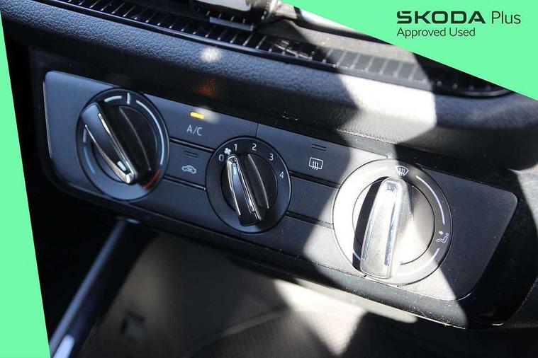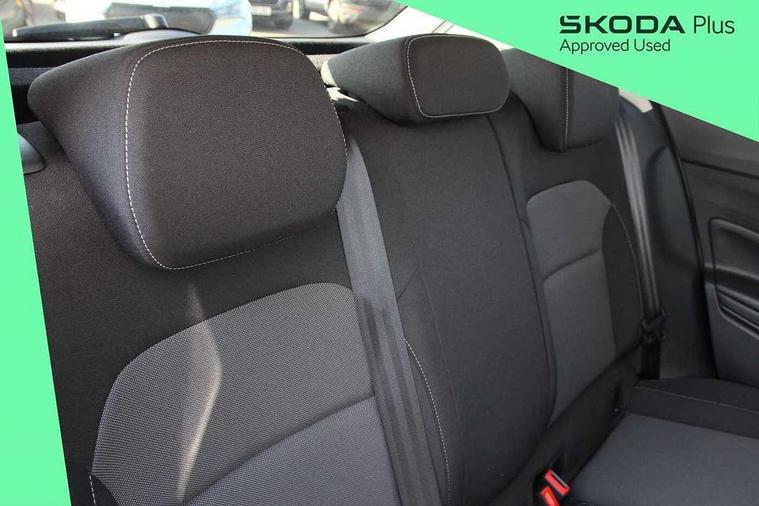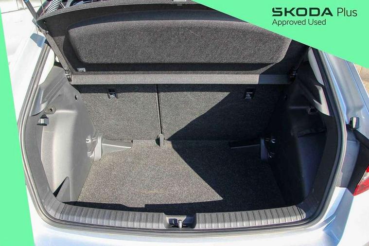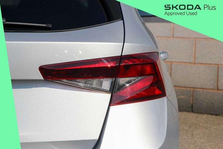 Advanced driver attention and drowsiness monitor, Bluetooth connection, Electromechanical power steering, Exterior temperature gauge, Service interval indicator, Traffic sign recognition, Virtual cockpit with 10.25" colour display, Wireless SmartLink for Apple CarPlay and Android Auto, 6 Speakers (4 in front and 2 in rear), Auxiliary socket for external MP3 player, DAB digital radio reception, Body coloured bumpers, Dimming rear view mirror with black frame, Door mirror integrated indicators, Front and rear electric windows, Front window wiper intermittent control, Headlight range control - Automatic, Ice scraper in fuel cap, LED daytime running lights with coming and leaving home feature, LED rear lights, Privacy glass, Rear LED fog light, Rear side wing doors, Rear window wiper with washing nozzles, Roof mounted spoiler, SKODA tailgate lettering in chrome, Third brake light, 2 reading lights in front and 2 reading lights in rear, 3 rear headrests, Backrest split and folding, Central console with removable cup holder and storage box, Chrome handbrake release button, Fabric upholstery, Front centre armrest, Gearshift knob/handle in leather, Grain satin black interior door handles, Hand brake lever handle in leather, Height adjustable front headrests, Height adjustable steering wheel, ISOFIX and TopTether anchorage points to the outer rear seats, ISOFIX and TopTether on the front passenger seat, Luggage compartment lighting, Manually adjustable lumbar support in front seats, Pollen filter, Rear seat bench unsplit, Single front passenger seat, Storm grey headlining, Sun visors with mirror and airbag label on passenger side, Textile floor mats, Ticket holder, Umbrella in drivers door, 3-point height adjustable front seats belts with pretensioner and force limiter, Automatic warning lights in case of crash, Driver and passengers airbag with switch off function, e-Call+, ESC including ABS, MSR, ASR, EDS, HBA and XDS, Front and rear seat belt warning, FRONT ASSIST (AEB City and AEB Inter Urban), Front side airbags, Head airbags, Hill hold control, One tone horn, Pedestrian protection, Three rear 3-points safety seat belts with pretensioner and force limiter including stop function for outer rear seat belts, Tyre pressure monitoring system, Anti-theft alarm system including immobiliser, interior monitoring, backup horn, and towing protection, Central locking with radio remote control, interior controls, SAFE function and 2 foldable keys, Colour Edition air vents, Grain satin black central console cover, Metallic grey upper decorative trim, Satin black door and side trim panel in front, Textile Kota grey lower decorative inserts, Anti-theft wheel bolts protection, Super-low rolling resistance tyres,