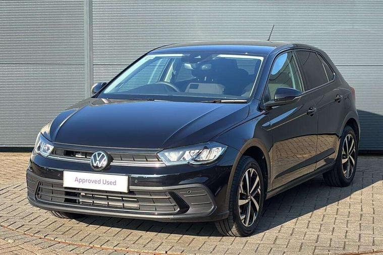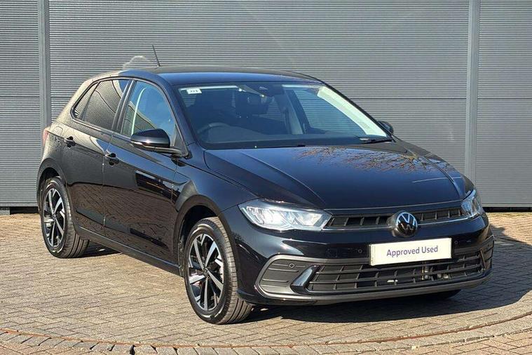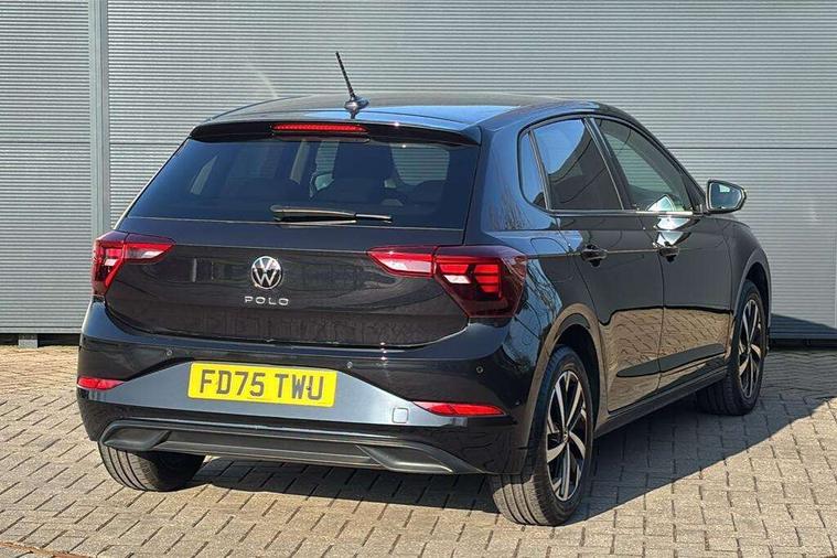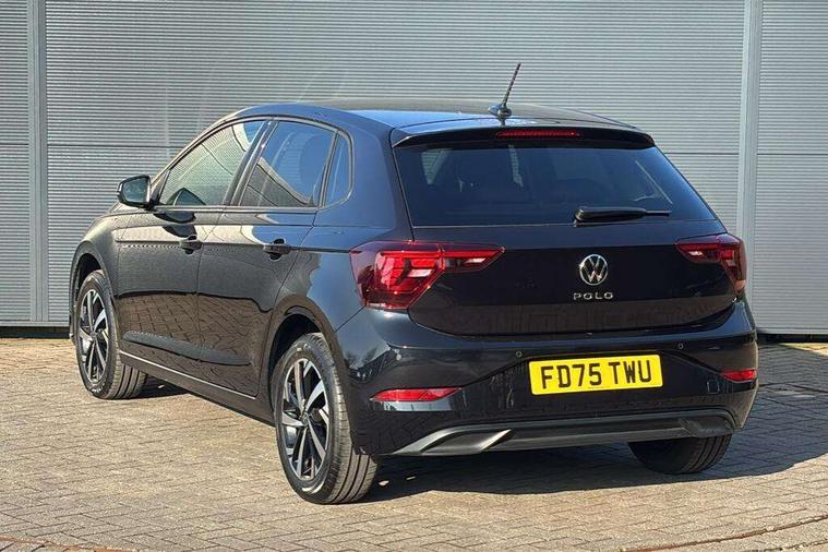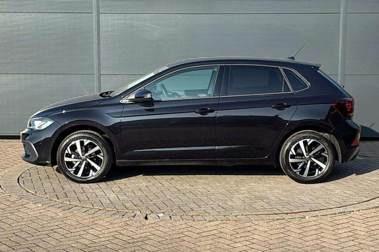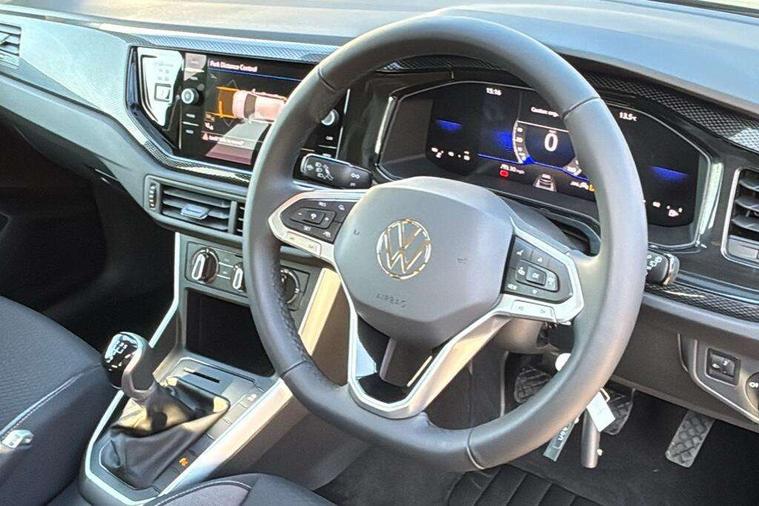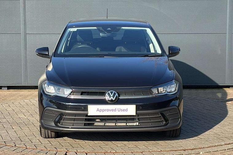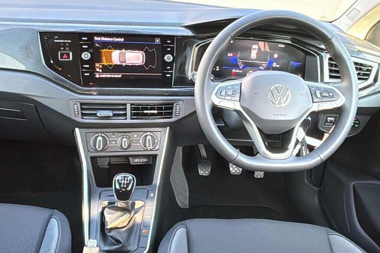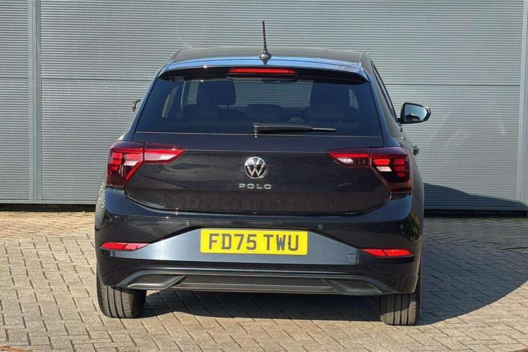 Adaptive cruise control without follow-to-stop and speed limiter, Advanced driver attention and drowsiness monitor, Bluetooth mobile phone interface, Dynamic road sign display, Emergency call service, Mobile phone preparation with inductive charging function, Multifunction front facing camera for distance control, Power assisted speed sensitive steering, Preparation for navigation system with media and internet package, Preparation for We connect and We connect plus, Rear view camera, Speedo and rev counter, electronic odometer, trip, service interval display and exterior temperature gauge, Standard rear axle, Travel Assist - Lane keeping system and traffic jam assist, Travel assist including emergency assist, Trip computer, Warning signal and warning light for front and rear seatbelts not fastened, Washer fluid level indicator, Wireless app connect, Front wheel drive, Rear shock absorpion, Start-stop system with battery regeneration (recuperation - energy recovery during braking), DAB Digital radio, Diversity antenna for FM reception, Automatic dimming interior rear view mirror, Automatic headlight control with LED separate daytime running lights with coming/leaving home function, Body colour bumpers with chrome inserts, Body colour door handles, Body colour door mirrors, Electric front windows, Engine badge deletion, Headlight range adjustment, Heat insulating and laminated safety glass windshield, LED Headlights, LED rear combination lamps, Power folding adjustable/heated exterior mirrors and front passenger exterior mirror lowering function, Rain sensor, Rear electric windows, Rear fog light, Rear side wing doors, Rear tinted glass from B-pillar backwards approx 65% tinted, Rear windscreen washer and wiper with interval delay, Third brake light, 12V power socket in centre console, 2 front and 2 rear reading lights with switch off delay and dimmer, 2 USB-C ports in the front, 2 USB-C charging sockets on the center console in the rear, 3 rear head restraints, 60/40 split folding rear seat and rear seat bench not split, Carpet mats, front and rear, Ceramique roof lining, Chrome plated radiator grille inserts, air vent surrounds and light switch surrounds, Door and side trim panel, Driver and front passenger seat height adjustment, Driver/passenger sunvisors with illuminated vanity mirrors, Front centre armrest, Front seat backrest storage pockets, Front standard seats, Handbrake lever handle in leather, Hartley/Thomas cloth upholstery, Headliner in recycled material, Isofix child seat preparation easy-fit (for two outer rear seats, and front passenger seat) compatible with I-size, Leather trimmed gear knob, Luggage compartment cover, Luggage compartment lighting, Removable luggage compartment floor, Single front passenger seat, Standard climatic zones, Standard pedal cluster, Three spoke leather wrapped multifunction steering wheel, Light and vision pack - Polo, 3 point height adj front seatbelts + pretensioners, 3 point seat belt for centre rear seat, 3 point seatbelts, outer rear with ECE lable, ABS, Driver and front passenger airbag with front passenger airbag deactivation, Drivers and front passengers safety optimised head restraints, ESC (Electronic stability control) + EDL (Electronic Differntial lock) and ASR (Traction control), Extended and predictive pedestrian/ cyclist protection, Front assist with autonomous emergency braking (for Adaptive Cruise Control ACC up to 130 mph), Front curtain and side airbags with center airbag, Front disc brakes, Hill hold control, Manual child lock in rear doors, Rear drum brakes, Single tone horn, Tyre pressure loss indicator, Alarm with interior protection, Anti-theft alarm system with interior monitoring, backup horn, and towing protection, Anti-theft wheel bolts, Electronic engine immobiliser, Lava stone black gloss/matt decorative inserts in dash and front door panels, 16" Torsby alloy wheels, Low rolling resistance tyres,