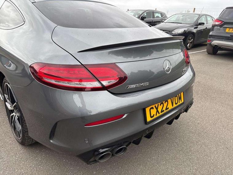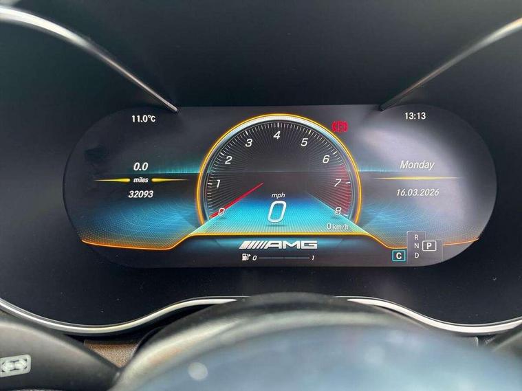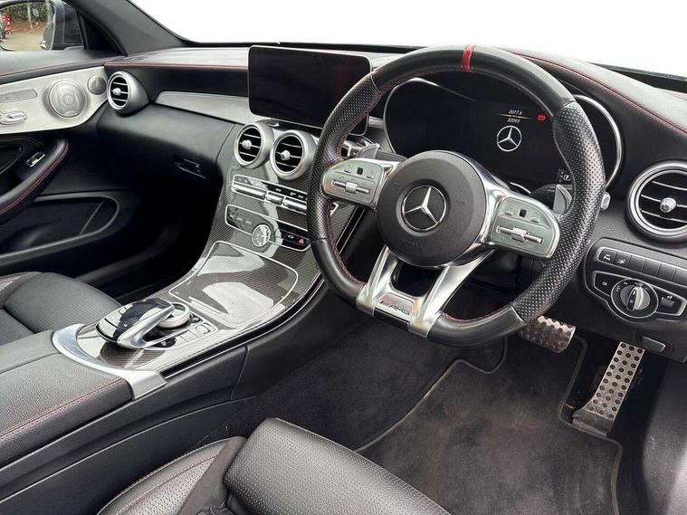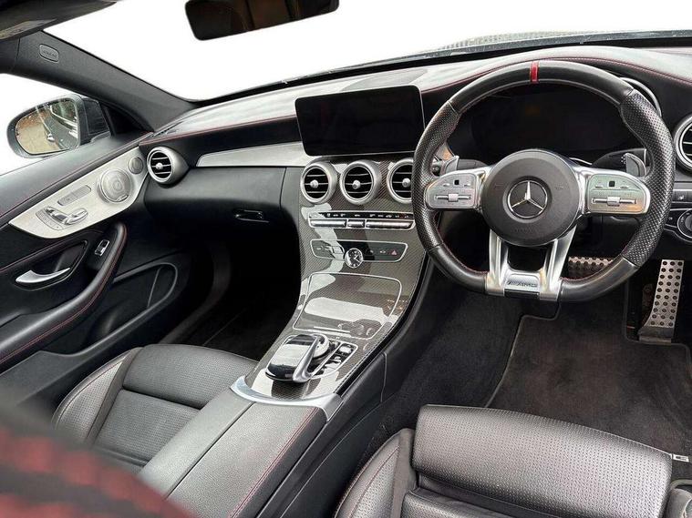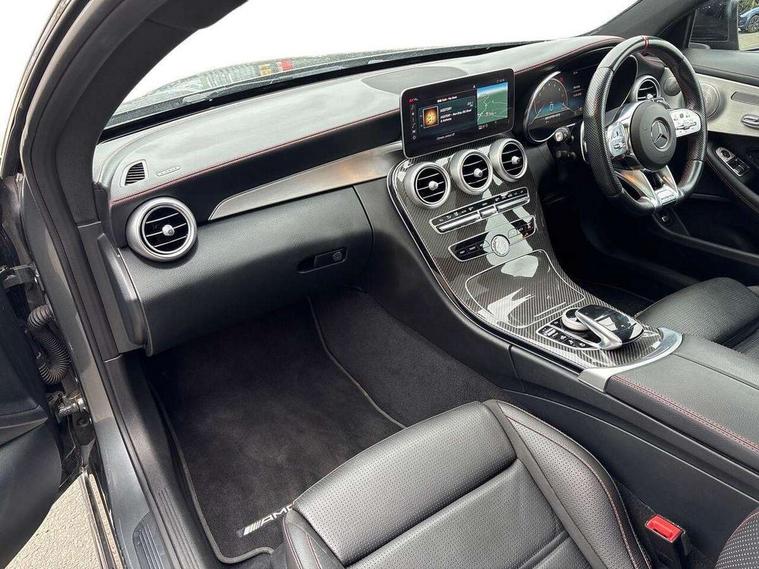 12.3" digital instrument cluster display, 2 stage speed sensitive sport steering, 360 degree view camera, Active park assist with parktronic system, AMG boot logo in central screen, Attention assist, Bluetooth interface for hands free telephone, Collision prevention assist plus, Comand Online HDD Nav with media interface, radio/CD/DVD/MP3, 10.25 screen, linguatronic voice control, DYNAMIC SELECT with a choice of driving modes (ECO, Comfort, Sport, Sport+ and Individual), ECO start/stop function, High resolution 10.25" multimedia colour display, Mercedes me connect including emergency call system, accident recovery, breakdown and maintenance management, Multi function trip computer, Outside temperature display, Pre-wiring for SD navigation system, Remote boot release, Reversing camera, Service indicator (ASSYST), Status display for rear seat belts in instrument cluster, 66l fuel tank with increased capacity, 9G Tronic plus 9 speed automatic, AMG performance 4MATIC with torque control distribution, AMG Ride Control sports suspension, Petrol Particulate Filter, Audio 20 with integrated media interface and bluetooth handsfree function, Burmester surround sound system, DAB digital radio tuner, Frontbass loudspeakers, SD card slot, Two USB ports and one SD Card slot in centre console, Adaptive brake lights, AMG bodystyling - front apron with distinctive air intakes and AMG rear apron with diffuser look, AMG boot lid spoiler in body colour, AMG design radiator grille with double louvre in matt iridium silver with AMG lettering, AMG performance exhaust system, Automatic headlights, Body coloured bumpers, Electric panoramic glass sunroof, Electric windows with one touch opening/closing and obstruction sensors, Exterior mirrors heated and electronically adjustable, Front door sill panels with AMG lettering, Full LED tail lamps, Green tinted glass, LED daytime running lights, LED Indicators, LED third brake light, Multi beam LED headlights, Privacy glass rear side windows B pillars and rear windscreen, Radio aerial integrated into rear window, Rain sensor windscreen wipers, Rear boot, Side windows surround in polished aluminium, V8 Bi-Turbo 4Matic badge on front wings, 2 cupholders in front centre console, 2 rear head restraints, 2 seat bench in 2nd row, 3 spoke AMG performance flat bottom leather steering wheel in black, heavily embossed central grip area silver chrome and contrast topstitching in red, 40:20:40 split folding rear seats, AMG sports seats, Auto Mercedes-Benz child seat recognition sensor, Electrical height and back adjustment front seat, Floor mats with black leather edging, red piping and AMG logo, Front centre armrest with storage compartment, Front head restraints, Front LED reading lights, Heated front seats, Height/reach adjustable steering column, Illuminated glove compartment stowage, Interior lighting - 64 colour Ambient lighting, Leather upholstery, Single front passenger seat, Sports pedals with stainless steel surfaces and rubber studs, Sports seats with integrated head restraints, Steering wheel gearshift paddles, Steering wheel touch control buttons for audio and onboard settings, Sunvisors with illuminated vanity mirrors, THERMATIC 2 zone automatic climate control, AMG night package - C Class, Interior lighting package - C Class, Memory pack with steering column memory - C Class, Mirror package - C Class, Seat comfort pack - C Class, Stowage space pack - C Class, 2 rear seatbelts, 3 point automatic seatbelts, Active bonnet, Adaptive brake system with hold function and brake drying function, Anti-lock braking system (ABS), Automatic seatbelt pretensioner for driver and front passenger, Brake calipers with AMG lettering + perforated brake discs, Dual stage airbags - driver and front passenger, front sidebags, driver kneebag, pelvis bag and windowbags for driver, front and rear passengers, Electronic parking brake, Electronic Stability Programme (ESP), ISOFIX child seat attachment points with top tether in rear, Red seat belts, Sports braking system with larger brake discs, Tyre pressure monitoring system, Warning triangle and first aid kit, Anti-theft alarm system/interior protection with tow-away protection and interior monitoring systems, Central locking with interior switch, automatic locking and crash sensor with emergency opening function, Chrome surround in electric key, Immobiliser, KEYLESS-GO starting function, AMG carbon fibre/light longitudinal grain aluminium trim, Artico man-made leather dashboard with red contrast stitching, Light longitudinal grain aluminium trim painted, 19" AMG 5 twin-spoke light alloy wheels with aerodynamically optimised and painted in black with a high-sheen finish, TIREFIT with tyre inflation compressor,