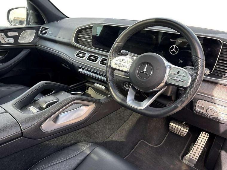 12.3 High resolution wide screen cockpit display with choice of three display styles Classic, Progressive or Sport and unique ambient lighting setting, Attention assist, Blind spot assist, Brake wear warning display, Cruise control with variable speed limiter, Direct steer speed sensitive steering, DYNAMIC SELECT with a choice of driving modes (ECO, Comfort, Sport and Individual), Easy-pack tailgate - Powered opening/closing automatically, ECO start/stop function, Geofencing, Hard-disk navigation, Hey Mercedes Voice activation, High resolution 12.3" multimedia colour display, Mercedes me connect including emergency call system, accident recovery, breakdown and maintenance management, Outside temperature display, Remote boot release, Service indicator (ASSYST), Smartphone integration, Status display for rear seat belts in instrument cluster, Traffic Sign Assist, Traffic sign recognition including wrong way warning function and display of posted speed limits in the instrument cluster, Trip computer in multifunction display showing current fuel consumption, 85 litre fuel tank, 9G TRONIC 9 speed automatic transmission, Airmatic air suspension, Diesel particulate filter (DPF), Incorrect fuelling protection, Additional USB connection, DAB Digital radio, Dual bluetooth interface, 2 USB ports (type C), MBUX multimedia system, 3rd brake light, Adaptive brake lights, Adaptive high beam assist, Aerial for GPS, Aluminium look, illuminated running boards with rubber studs, AMG bodystyling front and rear aprons and side skirts in polished aluminium, Body colour door mirrors, Body coloured bumpers, Daytime running lights, Electric windows with one touch opening/closing and obstruction sensors, Exterior mirrors heated and electronically adjustable, Front green tinted glass, LED high performance headlamps, LED rear lights, Panoramic sunroof, Privacy glass - heat insulating dark tinted glass, Radiator grille with integrated star and single louvre in matt iridium silver with chrome trim, Radio aerial integrated into rear window, Rain sensing windscreen wipers, Rear side wing doors, Rear wiper, Roof rail system, Top surround of side windows in polished aluminium, Visible twin pipe exhaust system integrated into bumper, Waistline in polished aluminium, 3 spoke AMG multifunction steering wheel with touch control buttons, trimmed in black nappa leather with flattened bottom section, 3rd row of seats for 2 people, 4 way adjustable front head restraints and 2 way rear head restraints, 4 way lumbar support, 40:20:40 split folding rear seats, AMG brushed stainless steel sports pedals with rubber studs, AMG floor mats with AMG lettering, Artico man-made leather upper dashboard with contrast topstitching, Automatic child seat recognition sensor, Black roof liner, Central stowage compartment with 12 V socket in centre console, Chrome door pins, Courtesy lights in rear grab handles with reading light functionality, Electric height/reach adjustable steering column, Electronically adjustable second row three seats adjustments, Electronically adjustable three second row seats, Front centre armrest with stowage compartment and illuminated grab handles, Gearshift paddles on steering wheel, Glove compartment - lockable, air conditioned and illuminated, Heated front seats, Interior lighting - 64 colour Ambient lighting, Seat occupancy sensor for front passenger seat, Second row three seats, Single front passenger seat, Sports steering wheel, Sunvisors with illuminated vanity mirrors, Thermotronic automatic 4 zone climate control, Touchpad, Anti theft Protection package - GLE, Driving assistance pack - GLE Premium Plus/GLE 53, Keyless go comfort package - GLE, Memory package - GLE, Mirror package - GLE, Parking package with 360 camera - GLE, Active bonnet, Adaptive brake system with HOLD function and brake drying in the wet, Airbags - driver and front passenger, with extended adaptivity for front passenger airbag, Airbags - sidebag for driver and front passenger with combined thorax/pelvis bag, Airbags - windowbags, Anti-lock braking system (ABS), Childproof locks manually operated for rear doors and electrically operated for rear power windows, Drivers knee airbag, Electronic parking brake, Electronic Stability Programme (ESP), ISOFIX child seat attachment points two outer rear seats, Perforated front brake discs and brake calipers with Mercedes-Benz lettering, Pre-Safe anticipatory safety system, Three point rear seat belts, Tyre pressure monitoring system and loss warning system, Warning triangle and first aid kit, Alarm system/interior protection/immobiliser, Central locking with interior switch, automatic locking and crash sensor with emergency opening function, Chrome surround in electric key, Keyless Go entry and starting function, Dashboard and door, anthracite open pore oak wood trim, Trim - Centre console, anthracite open pore oak wood trim, 22" AMG 5 twin spoke light alloy wheels painted in black with a high sheen finish, Summer tyres with noise reducing absorber, TIREFIT with tyre inflation compressor,