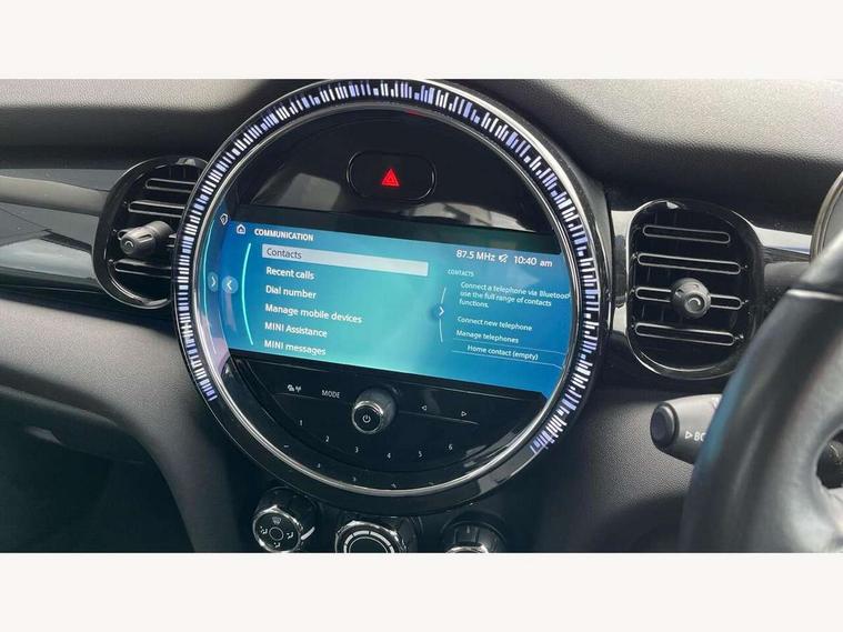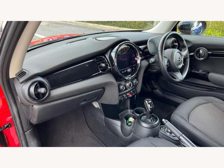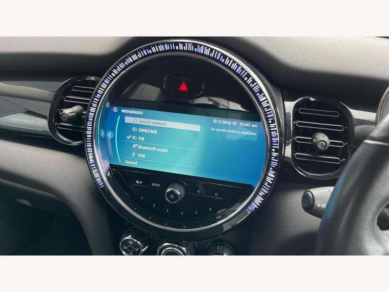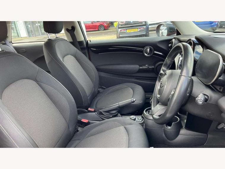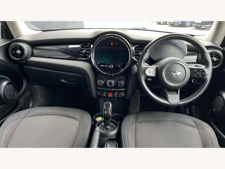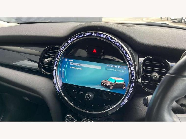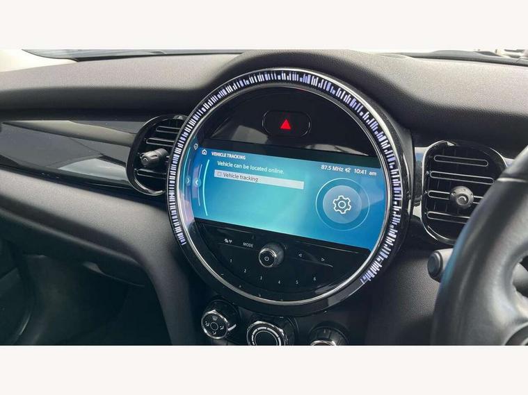 Automatic start/stop function with brake energy recuperation, Compatible mobile phone bluetooth with audio streaming, Cruise control with brake assist, Electro-mechanical speed dependant steering assistance, Flexible car sharing preparation, Instrument cluster, Mini E-call, MINI TeleServices, On board computer, Service interval indicator, Double Vanos system, Fully variable valve control, High precision injection, Performance Control, Steptronic transmission with double clutch, 4 speakers in front door trims and underneath front seats, 8.8" touchscreen with LED ring, FM tuner and DAB digital radio, Automatic headlight activation switch, Body colour fuel filler cap, Chrome border high gloss black slats radiator grille, Dynamic brake lights, Electric front windows, Exhaust tailpipe on left with chrome finisher, Heated rear window, Heated windscreen washer jets, LED headlight with closed ring and daytime driving lights, Metal door sill strips with MINI imprint, Model logo Cooper on right of tailgate, Rain sensor window wipers, Rear fog lights, Rear LED lights with union jack design, Rear window wiper, Side scuttle panel with integrated indicator, Sun/heat protection glass, White indicator lenses, 12V Accessory socket in centre console, 4 lashing eyes in luggage compartment, 60/40 split folding rear seat, Ambient lighting, Carbon black colour line - Knee roll and door armrest, Chrome interior highlights, Cupholders, Front and rear head restraints, Front and rear isofix with front passenger airbag deactivation, Glove compartment, Height and length steering column adjustment, Interior lighting with 12 different colours across the dashboard, underneath door bezel with illuminated laser-engraved design on central display, Leatherette gearshift lever and handbrake gaiters, LED reading lights, vanity mirror lights, front foot well light and spotlight on front seats, Manual air conditioning, Mechanical seat adjustment - forward/back & backrest for front seats and driver seat height adjust, Multifunction steering wheel, Passenger seat height adjuster, Satellite grey headlining including grab handles and clothes hooks, Sport leather steering wheel with speed limiter and audio/communication controls, Storage compartments in doors, Sunvisors with vanity mirrors, Tool kit, Velour floor mats, 3 point seatbelts on all four seats, 6 Airbags - front, side, head and seat belt tensioners, Anti-lock braking system (ABS), DSC - Dynamic Stability Control, Front and rear disc brakes, Single tone fanfare horn, Tyre pressure monitoring system, Alarm system with tilt sensor, monitoring doors, bonnet interior and tailgate, Electronic vehicle immobiliser, Start/stop toggle with keyless go, Piano black interior trim, Tyre repair kit,