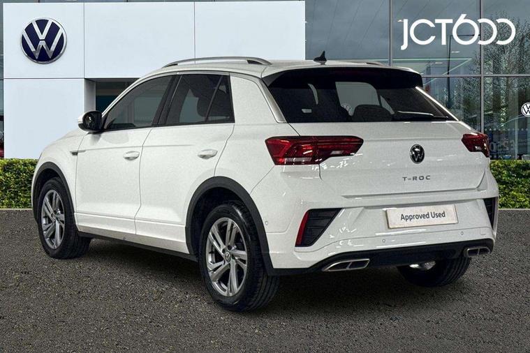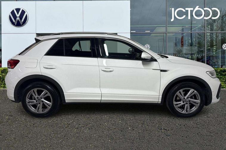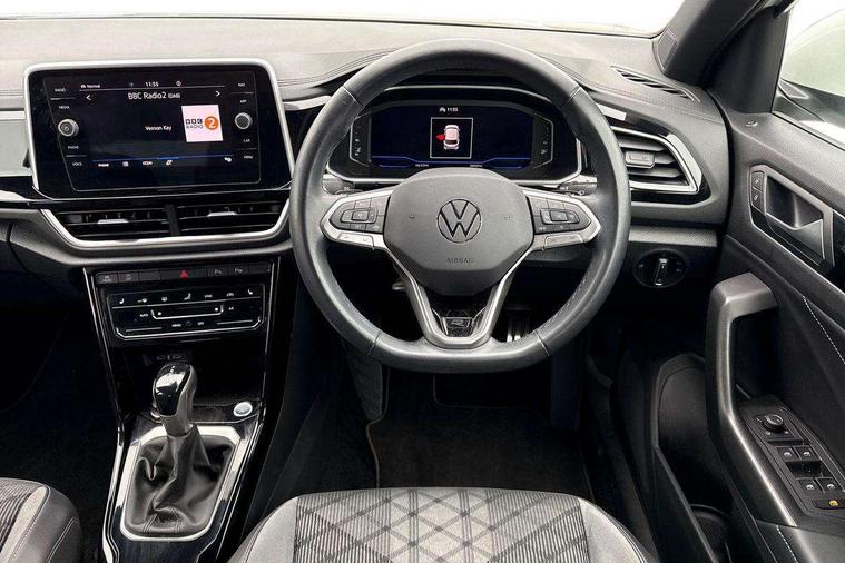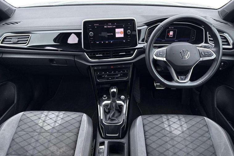 10.25" Digital cockpit pro, Advanced driver attention and drowsiness monitor, Bluetooth mobile phone interface, Emergency call service, Lane keeping system Lane Assist, Modified key software - reduce switch off time for key status change to Long no motion, Online services, Park assist including front and rear parking sensors, Service interval indicator, Tailgate/trunk lid release from outside, Think blue trainer driver tips and journey analysis, Warning sound and light for front seatbelts unfastened, Wireless app connect, Battery regeneration during braking, Start/stop function with battery regeneration, Diversity antenna for FM reception, Music playback - MP3, WMA and AAC files, Premium USB cable in choice of either Apple or Android smartphone compatibility, SD card slot, Simultaneous pairing of 2 compatible mobile devices, Title and cover art display, We Connect and We Connect Plus functionality, 3rd brake light, Auto dimming interior rear view mirror, Automatic hazard lights activation under emergency braking, Automatic headlight control with LED separate daytime running lights with coming/leaving home function, Electrically adjustable and heated door mirrors, Extended roof spoiler, Exterior mirrors aspherical on driver side, convex on front passenger side, External USB type C socket and charging sockets, Front windscreen wiper with intermittent wipe and 4 position delay, Heated rear window, LED rear combination lamps, LED rear number plate lights, Power windows with comfort operation and circuit breaker, R-Line design body coloured bumpers, Rain sensor, Rear exhaust tailpipe, Rear fog light on one side and reversing lights on both sides, Rear side wing doors, Rear wash/wipe with intermittent wipe setting, Remote electrically foldable door mirrors, puddle lights and reverse activated passenger's door mirror, 12V power socket in centre console, 3 rear head restraints, 3 seat bench in 2nd row, 4 load lashing points in luggage compartment, Air care climatronic air conditoning system with active combination filter and 2-zone temperature control, Black roof lining, Chrome plated radiator grille inserts, air vent surrounds and light switch surrounds, Door and side trim panel with leatherette insert, Front + rear carpet mats, Front centre armrest, Front cupholders x 2, Front footwell illumination, Front reading light, Front scuff plates with R Line logo, Front seat back storage pockets, Glove compartment door with light, Instrument lighting, white adjustable panel illumination, Interior ambient lighting and surround lighting, Interior light delay, Isofix child seat preparation, Leather gearshift handle, Load-through provision with cup holder when folded down ('Unsplit rear seat bench, split folding backrest, with centre armrest), Luggage compartment lighting, Single front passenger seat, Stainless steel pedals, Storage compartment in left and right luggage area, Storage compartment in rear doors, Storage compartments in driver and front passenger doors, Sunvisors with illuminated vanity mirrors, Variable boot floor, height adjustable and removable, Driver assistance pack without proactive passenger protection - T-Roc, 3 point height adj front seatbelts + pretensioners, 3 point seatbelts in outer rear with ECE label, ABS, Child locks on rear doors, City emergency braking and pedestrian monitoring, Driver and front passenger airbag with front passenger airbag deactivation, Driver and front passenger safety-optimised head restraints, Drivers seatbelt reminder, Electronic parking brake, Electronic Stability Control (ESC) inc EDL (Electronic Differential Lock) and ASR (Traction Control), Front and rear passengers curtain airbag system including front side airbags, Hill start assist, Predictive pedestrian protection, Rear disc brakes, Two tone horn, Tyre pressure loss indicator, Volkswagen roadside assistance, Anti-theft alarm system with interior monitoring, backup horn, and towing protection, Remote central locking with SAFELOCK, radio remote control with 2 remote control folding keys, Trims for alloy wheels,