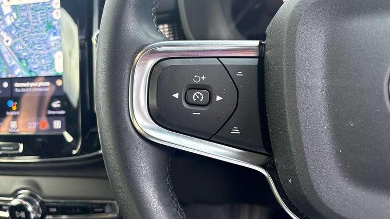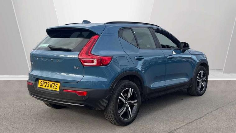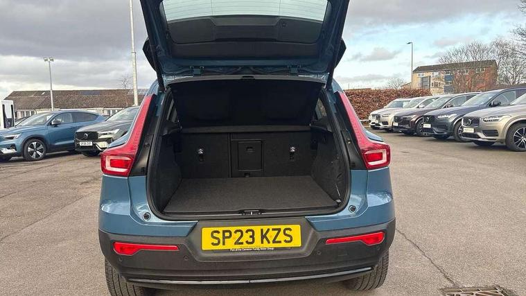 12.3" Progressive Driver Display, 360 degree surround view parking camera with side proximity sensors, 9" centre console portrait touch screen, Adjustable steering wheel force, Bluetooth hands free telephone kit, Cruise control, E-call, Front park assist, Google automatic services - Nav with google maps, apple carplay/android auto, voice recognition with google assistant, Hands free power tailgate, Lane keep assist with driver alert control, Oncoming Lane Mitigation, Rear park assist, Speed limiter, Speed sensitive steering, Wireless/Inductive Mobile Phone Charging, Dynamic chassis, DAB Digital radio, High performance sound, 8 speakers/250W, front USB and 2 rear type C USB, Steering wheel mounted remote controls, Adaptive brake lights with high level LED brake lights, Auto dimming feature for exterior door mirrors, Auto dimming interior mirror, Automatic headlamp levelling, Automatic LED Headlights + Active high beam incorporating daytime running lights, Front aluminium tread plates, Front and rear electric windows, High gloss black front and rear skid plate, High gloss black mesh front grille with high gloss black surround, High gloss black window trim, Home safe and approach lighting, Integrated roof rails in high gloss black, LED front fog lights, Puddle lights, Rain sensor with automatic windscreen wiper activation, Rear side wing doors, Rear wiper, Roof antenna, Roof spoiler, Visible VIN plate, 12V socket in front tunnel console and luggage compartment, 2-Zone electronic climate control with CleanZone air quality system and pollen filter, 3 seat bench in 2nd row, 3 Spoke tailored steering wheel with chrome trim, 60/40 versatile split folding rear seat, A-pillar parking ticket holder, Ambient front door and instrumental panel lighting, Centre console cupholders and storage, Flexible load floor and grocery bag holder, Floor mats, Front door pocket and front cupholder illumination, Front footwell illumination, Front headrests, Front reading light and theatre lighting, Front seat cushion extensions, Front tunnel pocket, Glovebox bag hook, Heated front seats, Height adjustable passenger seat, Height/reach adjustable steering column, High gloss centre tunnel deco, Illuminated glovebox, Illuminated luggage compartment, Illuminated tailgate, Illuminated vanity mirrors, Integrated waste bin, Isofix attachments on outer rear seats, Load protection net, Multi directional lumbar support, Power driver seat with memory + exterior mirrors memory, Rear armrest / integral cup holders / storage tray, Rear headrests, Rear reading and courtesy lights, Single front passenger seat, Underfloor cargo storage, Climate pack without heated front seats - XC40, 3x3 point rear seatbelts, City safety with steering support with Pedestrian + cyclist + front collision warning with full auto brake and rear auto brake, Drivers knee airbag, Dual stage driver/passenger airbags, Electronic parking brake with auto hold, First aid kit, Front and outer rear seatbelt reminder and pretensioners, Front seats SIPS airbags, Hill descent control, Hill start assist, Inflatable curtain, Passenger airbag cut-off device, Power child locks on rear doors, Road sign information display, Run off Road Mitigation, Run off Road Protection, SIPS (Side Impact Protection System), Slippery road and hazard light alert, Stability and Traction Control with Spin control, Engine Drag Control and Corner Traction Control, Tyre pressure monitoring system, Vehicle deceleration control with Anti-lock Brake System, Electronic Brake Distribution and Emergency Brake Assist, Warning triangle, WHIPS whiplash protection system - front, Anti-theft alarm including immobiliser/volume sensor + level sensor, Key integrated remote control central locking + fuel flap with deadlocking system and auto open/close power windows, Keyless drive includes keyless entry and keyless start, Locking wheel nuts,
