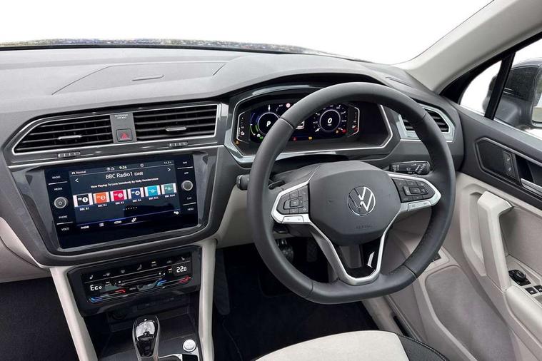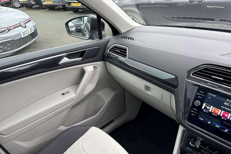 Adaptive cruise control ACC stop and go including speed limiter, App-Connect incl. App-Connect Wireless for Apple CarPlay and Android Auto, Bluetooth phone integration system, Distance control assist, Driver alert system, Driver profile selection, Dynamic road sign display, eCall emergency call system, Electromechanical speed sensitive power steering, Engine start/stop button, Lane keeping system Lane Assist, Lights on warning, Motorised electric tailgate operated via key fob, drivers door and foot movement under tailgate, Multifunction front facing camera, Outside temperature display, Premium multifunction display with multi colour display, Remote control boot opening, Rev counter, Revision / skills operating concept travel assistant, Service interval indicator, Speed limit display, Start/stop system with regenerative braking, Tailgate/trunk lid unlocking from outside, Trip computer, Warning sound and light for doors and tailgate open, Battery regeneration during braking, Charging cable Mode 3 Type 2 / 3 (16A), XDS electronic differential lock for improved traction and handling, 4 X 20 watt output, 8 Speakers, Diversity antenna for FM reception, Radio, SD card slot, Simultaneous pairing of 2 compatible mobile devices, SMS functionality - read, compose and send SMS messages using touch-screen display, Title and cover art display, USB C ports, Aluminium door sill protectors, Auto dimming interior rear view mirror, Automatic headlight control system, Body colour door handles, Body coloured bumpers, Body coloured door mirrors with integrated indicators, Coming/leaving home lighting function, Dynamic headlight range control, Front and rear electric windows, Heated rear window, High level 3rd brake light, IQ light-Adv high beam, Dynamic light assist for LED matrix headlamp+LED separate DRL+DCL, dark red rear LED tech, Poor weather light+ cornering light, Laminated safety glass windshield, heat and sound insulating, LED rear number plate lights, Privacy glass for rear side windows and rear window, Rain sensor windscreen wipers, Rear exhaust tailpipe, Rear fog lamp, Rear side wing doors, Rear windscreen washer and wiper with interval delay, Side and rear windows in heat insulating glass, Tilting and sliding panoramic sunroof with rear panoramic sunroof, Trailer Stability Programme, Windscreen wipers/ intermittent wipe + 4 position delay, 12V outlet in center console rear and in luggage compartment, 12V outlet in front and tray, 2 cup holders in front, 2 LED front reading lights, 2 LED rear reading lights, 3 bench rear seats in 2nd row, 3 rear headrests, 4 load lashing points, 40:20:40 split folding rear seats, Air Care Climatronic 3 zone automatic climate control with enhanced air filter and controls in the rear, Backrest release for left front seat, Climate control unit rear with touch function, Door and side trim panel in foam film and woven fabric, Front centre armrest, Front footwell illumination, Front seats head restraints (x-adjustment), Height adjustable front seats, Height/reach adjust steering wheel, Instrument lighting white adjustable panel illumination, Interior light with delay, Isofix Preparation 2 Rear child seats, Leather gear knob, Lockable cooled glovebox, Luggage compartment lighting, Luggage net, Rear bench seat asymetrically split folding, longitudinally movable and folding with load-through hatch and center armrest, Remote unlocking for rear seat backrest, Removable luggage cover, Removable rear headrests, Safety optimised front head restraints, Single front passenger seat, Sliding/reclining rear seats, Standard rear seat release, Storage compartment in driver's door, Storage compartment in passenger's door, Storage compartment in rear doors, Storage compartments in luggage area left and right, Storage tray on dashboard, Sun visors with illuminated vanity mirrors, Top front comfort seats, Variable boot floor, height adjustable and removable, Easy open and close pack with safelock - Tiguan, Park assist pack - Tiguan, 3 point seat belt for centre rear seats, 3 point seat belts with seat belt pretensioners for the outer rear seats, Active bonnet, Curtain airbags for front and rear passengers, Driver/Front Passenger airbags, Drivers knee airbag, Electronic parking brake with auto hold, Electronic Stability Control with driver steering recommendation, ABS, ASR, EDL, EDTC and trailer stabilization, Front assist with autonomous emergency braking (for Adaptive Cruise Control ACC up to 130 mph), Front disc brakes, Front passenger airbag deactivation, Front side airbags, Height adjustable front 3 point seatbelts + pretensioners, Hill hold control, Manual child proof rear door locks, Pedestrian monitoring system, Power assisted brakes, Proactive passenger protection system in combination with front assist, Rear disc brakes, Rigid safety cell with front and rear crumple zones, Two tone horn, Tyre pressure loss indicator, Warning sound and light for front seat belts if unfastened, Anti theft alarm system with interior monitoring, backup horn and towing protection, Anti theft wheel bolts, Central locking system with safelock radio remote control and 2 remote control folding keys, Electronic engine immobiliser, Tool kit, Tyre mobility kit Includes 12V compressor and tyre sealant,