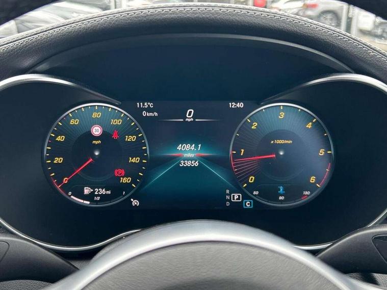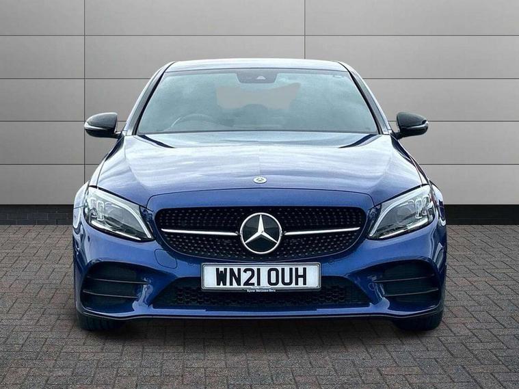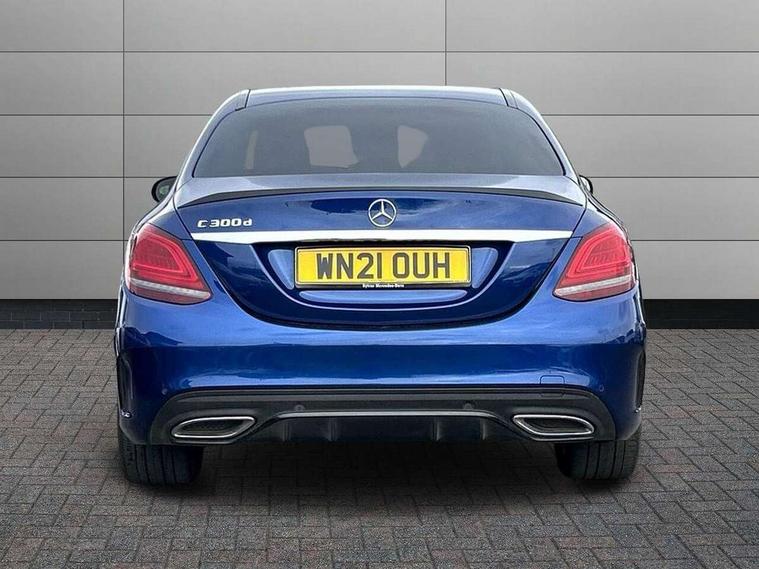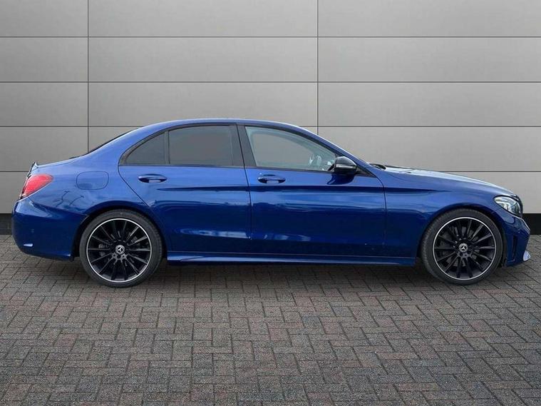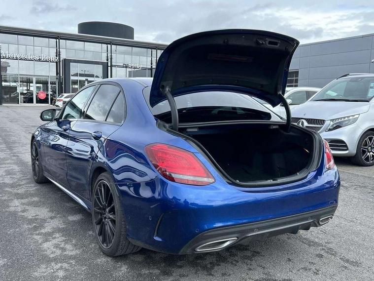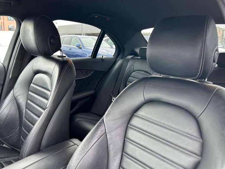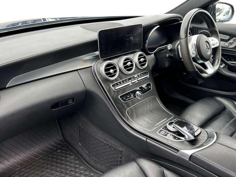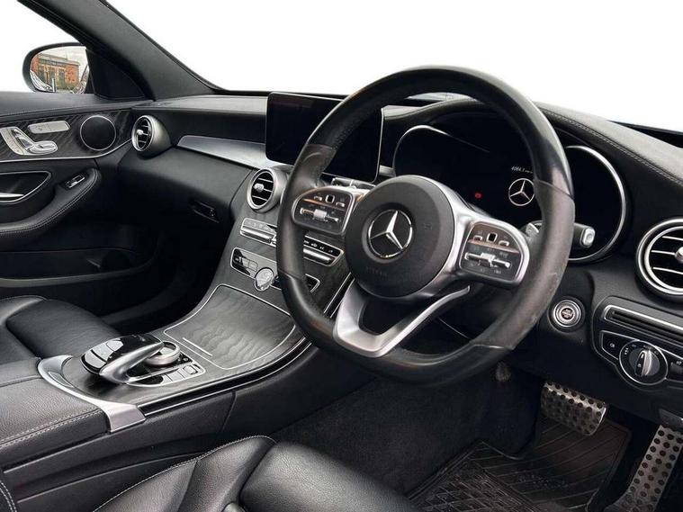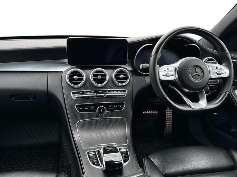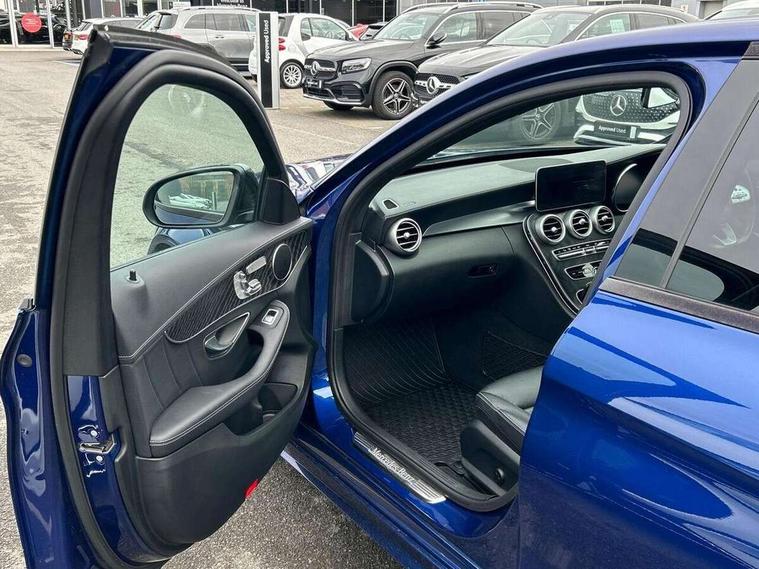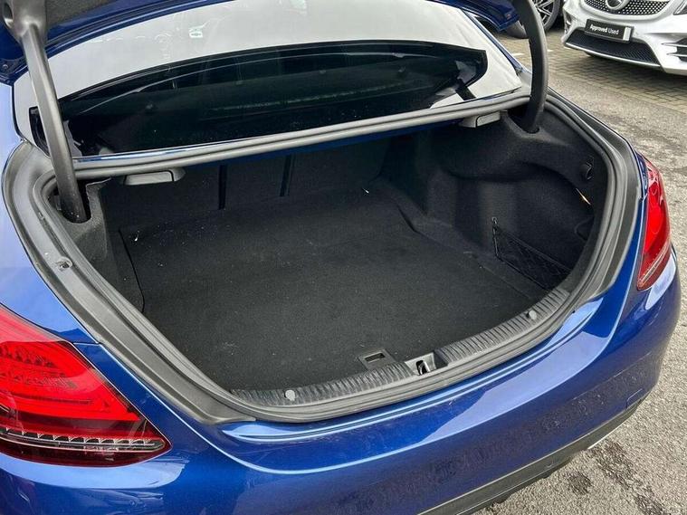 12.3" digital instrument cluster display, Active park assist with parktronic system, Analogue clock, Attention assist, Collision prevention assist plus, Colour display - 10.25" colour display screen, Comand Online HDD Nav with media interface, linguatronic voice control, 2 USB port and one SD card slot in centre console, DYNAMIC SELECT with a choice of driving modes (ECO, Comfort, Sport, Sport+ and Individual), Mercedes connect me, Multi function trip computer, Outside temperature gauge, Remote boot release, Reversing camera, Service indicator (ASSYST), Smartphone integration with Apple CarPlay and Android auto, Sports direct steer speed sensitive steering, Status display for rear seat belts in instrument cluster, Wireless charging, 66 litre fuel tank, 9G TRONIC 9 speed automatic transmission, Agility control sports suspension lowered by 15 mm, Diesel particulate filter, DAB Digital radio, Mercedes Benz sound system with 4 mid range speakers, 2 tweeters, 2 Frontbass speakers, 1 centre speaker and 225 W amplifier output, Steering wheel mounted audio controls, Adaptive brake lights, AMG body styling front apron, rear apron and side skirts, Automatically dimming rear view mirror and driver's exterior mirror, Chrome pins diamond radiator grille with integrated stars, Electric windows with one touch opening/closing and obstruction sensors, Electrically adjustable and heated door mirrors, Green tinted glass, Heated windscreen washers, High gloss black exterior mirror housing, High gloss black rear bumper insert, High Gloss Black rear spoiler, LED Indicators, LED tail lights, LED third brake light, Multi beam LED headlights, Privacy glass (rear side windows and rear screen), Radio aerial integrated into rear window, Rain sensor windscreen wipers, Side windows surround in matt black, Spoiler lip on the boot lid in black, Twin tailpipe design integrated into rear bumper, 2 cupholders in front centre console, 3 spoke flat bottom AMG steering wheel in nappa leather with chrome inserts perforated leather grip, 40:20:40 split folding rear seats, AMG sports seats, Auto Mercedes-Benz child seat recognition sensor, Black floor mats with AMG lettering, Dual zone automatic climate control, Front and rear head restraints, Front centre armrest with storage compartment, Front door sills with Mercedes Benz lettering, Gearshift paddles on steering wheel, Heated front seats, Illuminated glovebox, Interior lighting - 64 colour Ambient lighting, Leather upholstery, Multifunction steering wheel, Rear top tether child seat ISOFIX attachment, Sports pedals with stainless steel surfaces and rubber studs, Sunvisors with illuminated vanity mirrors, Lighting pack - C class, Memory pack with Electric adjustable steering wheel - C Class, Mirror pack - C Class, Night package - C Class saloon, Seat comfort pack - C Class, Stowage space pack - C Class, 3 rear 3 point seatbelts, Active bonnet, Adaptive brake system with HOLD function and brake drying in the wet, Anti-lock braking system (ABS), Black seat belts, Brake calipers with Mercedes-Benz lettering + perforated front brake discs, Child proof door locks, Drivers knee airbag, Drivers pelvis airbag, Dual stage driver/passenger airbags, Electronic parking brake, ESP with ASR, Front passenger seat occupancy sensor, Front side airbags, Hill start assist, Rear seatbelt warning indicator, Tyre pressure monitoring system, Warning triangle and first aid kit, Window airbags, Alarm system/interior protection/immobiliser, Central locking with interior switch, automatic locking and crash sensor with emergency opening function, Chrome surround electric key, Urban guard, Artico man-made leather dashboard with contrast stitching, Open pore black ash wood trim, 19" AMG multi spoke design alloy wheels painted black, Runflat tyres,