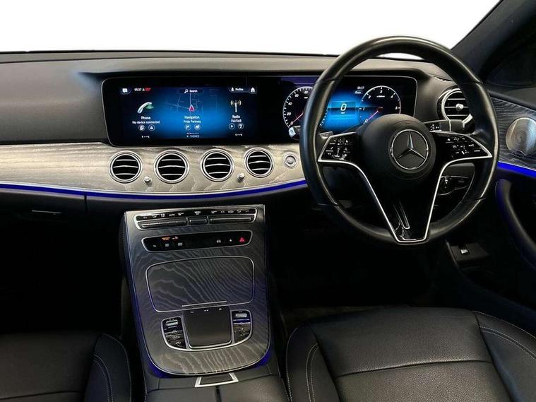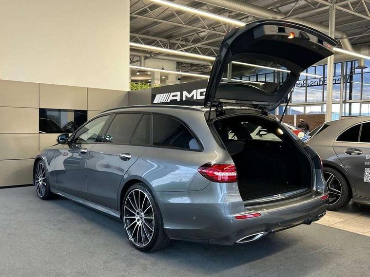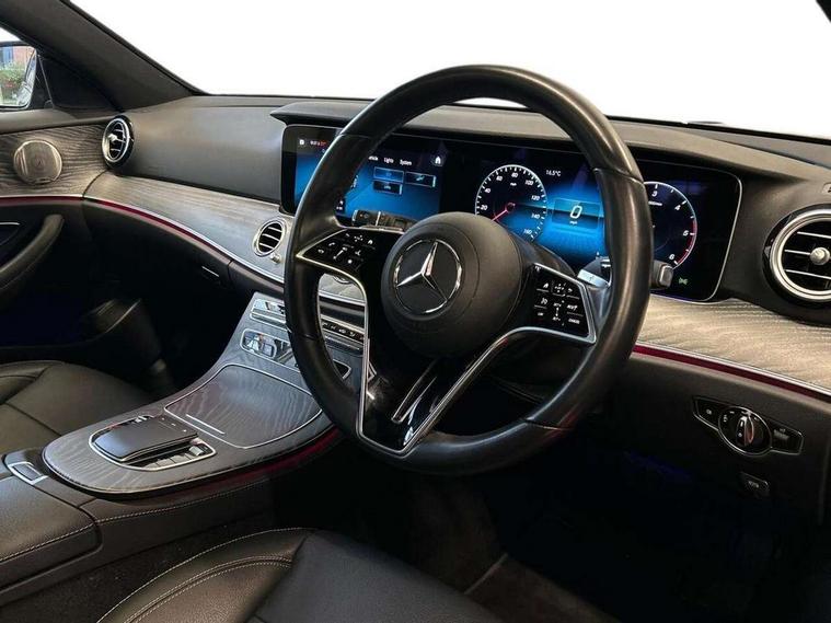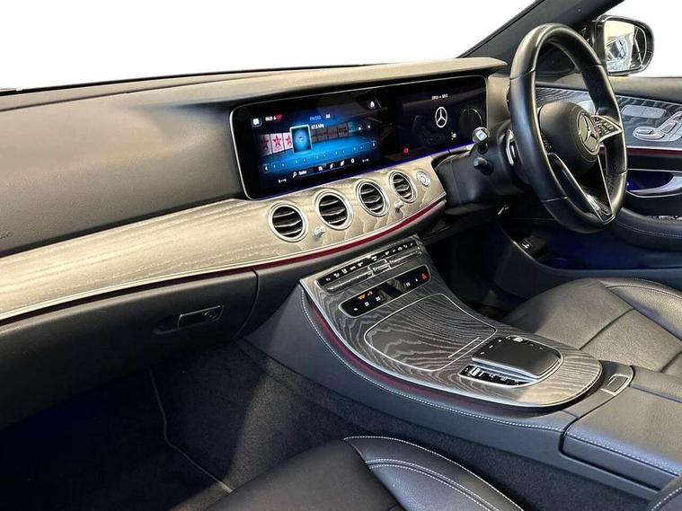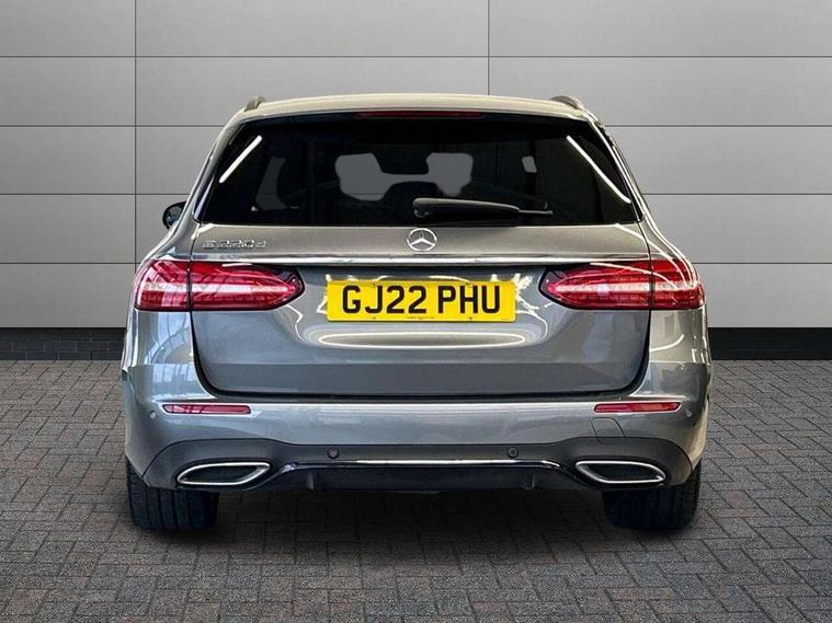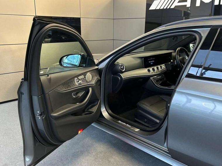 Attention assist, Brake wear warning display, Cockpit display 10.25" widescreen digital instrument cluster, Direct steer speed sensitive steering, DYNAMIC SELECT with a choice of driving modes (ECO, Comfort, Sport, Sport+ and Individual), Easy-pack tailgate - Powered opening/closing automatically, ECO start/stop function, Emergency call service, High resolution 10.25" multimedia colour display, MBUX voice control activated by keywords "Hey Mercedes", Mercedes connect me, Outside temperature display, Remote boot release, Service indicator (ASSYST), Smartphone integration via Android Auto/Apple CarPlay, Media Interface, USB and Bluetooth interface, Status display for rear seat belts in instrument cluster, Touchpad with controller, Traffic sign assist, Trip computer in multifunction display showing current fuel consumption, Wireless charging, 25 litre AdBlue tank, 66 litre fuel tank, 9G TRONIC 9 speed automatic transmission, Agility control sports suspension with selective damping system and lowered by 15mm, Diesel particulate filter, Incorrect fuelling protection, Rear air suspension with level control, 2 USB ports in centre console, 2 USB ports in the rear, Burmester surround sound system with 13 speakers and a 9 channel amplifier with total output of 590 watts, MBUX multimedia system with DAB digital radio and touchpad including satellite navigation, 3rd brake light, Adaptive brake lights, Aerial integrated in rear window, AMG bodystyling front and rear aprons and side sill panels, Chrome roof rails, Electric windows with one touch opening/closing and obstruction sensors, Electrically adjustable and heated door mirrors, Front apron in high gloss black, High gloss black exterior mirror housing, High gloss black rear bumper with chrome trim, Illuminated front door sill panels with Mercedes-Benz lettering, LED High Performance headlamps including integral LED daytime running lamps, LED rear lights, Panoramic electric glass sunroof, Privacy glass Includes rear side windows and rear windscreen, Radiator grille with integral star and 2 louvres in high gloss black, Rain sensor with automatic headlight activation, Rear side wing doors, Rear wiper, Tail lights, Top surround of side windows in polished aluminium, Visible twin pipe exhaust system integrated into bumper, Waistline trim strip in high gloss black, 3 seat bench in 2nd row, 3 spoke multifunction flat bottom AMG steering wheel with chrome inserts and touch control buttons, trimmed in black nappa leather, 40:20:40 split folding rear bench seat, Artico man-made leather upper dashboard and beltlines with contrast stitching, Automatic child seat recognition sensor, Black door pins, Black roof lining, Central stowage compartment with 12 V socket in centre console, USB socket for use with Android Auto and Apple CarPlay, Courtesy lights in rear grab handles with reading light functionality, Floor mats with AMG lettering, Four way partially front electric seat adjustment, Front centre armrest with stowage compartment, Glasses compartment in overhead control panel, Glove compartment - lockable, air conditioned and illuminated, Head restraints for driver and front passenger (four-way adjustability) and in rear (two-way), Heated front seats, Interior lighting - 64 colour Ambient lighting, Leather upholstery, Seat occupancy sensor for front passenger seat, Single front passenger seat, Sports pedals in brushed stainless steel with black rubber studs, Steering column electrically adjustable for height and reach, Steering wheel multifunction with gearshift paddles, Steering wheel touch control buttons for audio and onboard settings, Sunvisors with illuminated vanity mirrors, THERMOTRONIC automatic climate control system with 3 climate zones, Mirror pack - E Class, Parking package including 360 degree camera - E Class, Seat comfort pack - E Class, Stowage pack - E Class Estate, 3x3 point rear seatbelts, Active bonnet pedestrian safety measure which detects an impact and raises bonnet, Adaptive brake system with HOLD function and brake drying in the wet, Airbags - sidebag for driver and front passenger with combined thorax/pelvis bag, Anti-lock braking system (ABS), Childproof locks manually operated for rear doors and electrically operated for rear power windows, Driver and adaptive front passenger airbags, Drivers knee airbag, Electronic parking brake, Hill start assist, ISOFIX child seat attachment points two outer rear seats, Perforated brake discs with Mercedes Benz lettering, Pre-Safe anticipatory safety system, Tyre pressure monitoring system, Warning triangle and first aid kit, Window airbags, Alarm system/interior protection/immobiliser, Central locking with interior switch, automatic locking and crash sensor with emergency opening function, Chrome surround in electric key, Keyless entry go starting function, Grey open pore ash wood trim and centre console in grey open pored ash wood, 20" AMG multi spoke light alloy wheels painted in high gloss black with high sheen finsih, Summer tyres, TIREFIT with tyre inflation compressor,