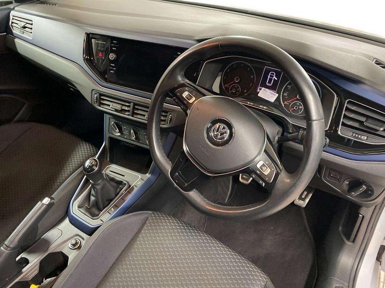 Cruise control + speed limiter, Digital clock, Discover navigation - 8.0" colour touch screen navigation/infotainment systems with Car- net guide and inform, Driver alert system, Emergency call service, Front assist, radar sensor controlled distance monitor, city emergency braking and predictive pedestrian protection, Multifunction computer plus, Power assisted speed sensitive steering, Speedo and rev counter, electronic odometer, trip, service interval display and fuel gauge, Start/stop system, Ultrasonic front and rear optical and audible parking sensors, Voice activation, Volkswagen connect, Warning buzzer and light for front seatbelts unfastened, Wireless app connect, Battery regeneration during braking, Galvanished body, DAB digital audio broadcast, Diversity antenna for FM reception, Premium USB cable in choice of either Apple or Android smartphone compatibility, Black grille with chrome surround, Black radiator grille with chrome louvres, Body colour bumpers, Body colour door handles, Body colour door mirrors with integrated indicators, Body colour rear spoiler, Body coloured side sills, Electric front windows, Electric operated/heated door mirrors, Front fog lights including static cornering, Front windscreen washers and wipers with 4 speed intermittent delay, Halogen clear headlights with range adjustable including automatic headlights on, Heat insulating tinted glass, Heated rear window with auto timer, High level 3rd brake light, Internally adjustable door mirrors, LED daytime running lights, LED rear number plate lights, Manual dimmable interior rear-view mirror, Rear electric windows, Rear tinted glass from B-pillar backwards approx 65% tinted, Rear windscreen washer and wiper with interval delay, reverse activated, United badge on B-pillar, United door sill protector, 2 bag hooks in luggage compartment, 2 front and 2 rear reading lights, 2 front cupholders and 12 V socket with cover, 3 rear head restraints, 4 grab handles, 60/40 split folding rear seat, Atlantic blue dash insert and centre console, Centre console storage with open storage compartment, Chrome interior door handles, Driver and front passenger seat height adjustment, Driver and front passenger sunvisors with illuminated vanity mirrors, Dust/pollen filter, Folding rear seat backrest, Front + rear carpet mats, Front head restraints, Front seat backrest storage pockets, Gear lever gaiter in black trim surround, Glovebox, Handbrake grip button in chrome effect, Height/reach adjustable steering column, Instrument lighting, adjustable panel illumination, Interior light with delay, Isofix Preparation 2 Rear child seats, Leather gear knob and handbrake grip, Leather multifunction steering wheel, Luggage compartment cover, removable, Luggage compartment lighting, Luggage compartment with variable load floor, Lumbar adjustment for front seats, Manual air conditioning, Storage compartment in front doors, Storage compartment in rear doors, Storage compartment under front seats, Sunglasses holder, United cloth upholstery, Composition Media Pack - Polo United, Light and sight pack - Polo, Winter pack - Polo, 3 point height adj front seatbelts + pretensioners, 3x3 point rear seatbelts, ABS, Automatic post collision braking, Driver/front passenger airbag, Drivers and front passengers safety optimised head restraints, ESP with EDL + ASR, Front and rear passenger curtain airbags, Front disc brakes and rear drum brakes, Front passenger airbag deactivation, Front seat side impact airbags, Hill hold control, Hydraulic Brake Assist (HBA), Single tone horn, Tyre pressure monitoring system, Alarm with interior protection and deactivation via infotainment system, Electronic engine immobiliser, Remote central locking with 2 remote folding keys, Air vents in High gloss black, Limestone grey decorative inserts, Seat covers in the Waveform design, 15" Dublin alloy wheels, Tyre mobility kit,