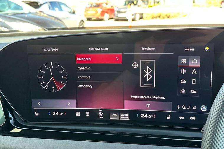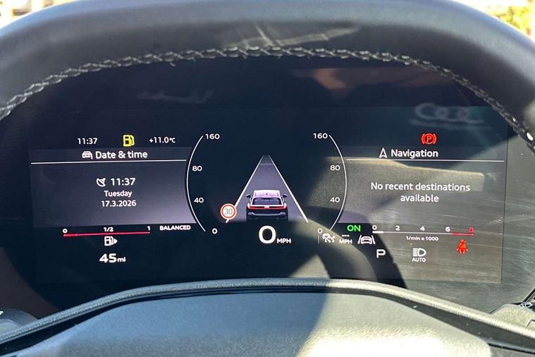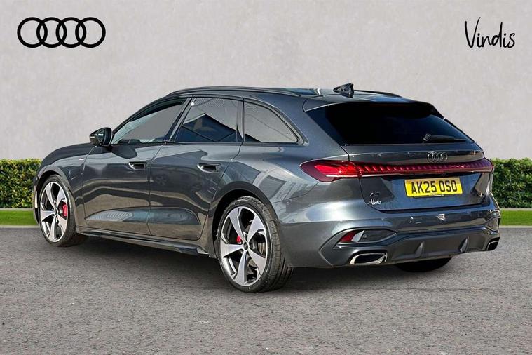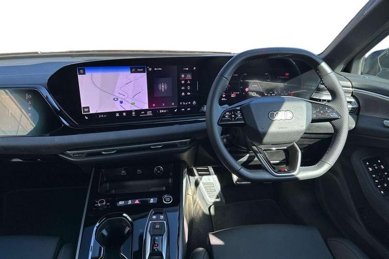 Adaptive cruise control, Advanced driver attention and fatigue montior, Audi application store, Audi assistant, Audi connect emergency call and service, Audi drive select, Audi smartphone interface, Audi virtual cockpit plus with 11.9" OLED colour display, Automatic start/stop system with coasting functionality, Camera based traffic sign recognition, Intersection assist, Lane change assistant with exit warning system, rear cross traffic alert and rear turn assist, Lane departure warning with emergency assist, MMI 10.9" front passenger touch display, MMI navigation plus with high resolution 14.5" OLED touchscreen colour display, Park assist plus, Parking system plus with 360 display, Progressive steering with servotronic, Swerve assist and turn assist, Top view camera, Traffic sign based speed limiter, Sports suspension lowered by 20mm, 2 USB-C ports in both the front and rear, Audi sound system impressive sound with 10 loudspeakers including centre speaker and subwoofer, 6-channel amplifier with a total output of 180 watts, DAB digital radio reception, Smartphone compartment with wireless charging, Aluminium window trims, Auto dimming rear view mirror, Black door handles, Black roof rails, Dark chrome-plated tailpipe trims, Door mirrors - electrically adjustable, heated, folding and auto dimming on both sides, Front and rear electric windows, Front door sill trims with aluminium inlays, illuminated with 'S' logo, Headlight cleaning system, High beam assist, LED daytime running lights, LED rear lights pro incl. dynamic rear indicators and illuminated light strip with animated coming and leaving home function, LED third brake light, Matrix LED headlights with eight light signatures selectable via the MMI or the myAudi app, Privacy glass, Rear and side windows with heat insulating glass, Rear side wing doors, Rear wash/wipe, S Line badges on the front wings, S line bumpers, radiator grille and diffuser in phantom black and diffuser insert in matt anthracite, White rhombus logo projection light in exterior mirrors, Windscreen with acoustic glazing, 3 rear headrests, 3 seat rear bench, 3 spoke leather steering wheel with multi-function buttons with touch control, flattened on top and bottom, with S badging and contrast stitching, 3-zone automatic climate control, 40:20:40 split folding rear seat bench with centre armrest and cup holders, Comfort front centre armrest, Electrically adjustable front seats, Front and rear floor mats, Front sport seats with integrated headrest and S embossed logo, Headlining in black cloth, Heated front seats, i-Size child seat mounting on the front passenger side and outer rear seats, i-Size and top tether on the outer rear seats, Luggage compartment lid, electrically opening and closing, Manual steering column height and depth adjustment, Memory function for driver seat, Single front passenger seat, Stainless steel pedals and footrest, Steering wheel grips in perforated leather and shift paddles, Ambient lighting package plus - A5, Black styling package plus - A5, 3x3 point rear seat belts, Acoustic vehicle alerting system, Convenience key with safelock, Driver airbag, Electric child safety locks, First aid kit with warning triangle and vests, Front emergency brake assist, Front passenger airbag, Front passenger airbag deactivation, Hill hold assist, Occupant detection in rear seat area, Proactive passenger protection system for front, sides and rear, Red brake calipers, Seat belt monitoring with rear seat occupant reminder, Side airbags in front and rear with head airbag system and front interaction airbag, Tyre pressure loss indicator, Anti theft alarm, Anti-theft wheel bolts, Keyless Go, Accent surfaces and control buttons in gloss black, Black dashboard with contrast stitching, Softwrap in Dinamica with contrast stitching, Upper and lower interior elements in dinamica microfiber, 20" 5 arm fold design Audi sport alloy wheels in silk matt grey and gloss turned finish, Tyre repair kit,