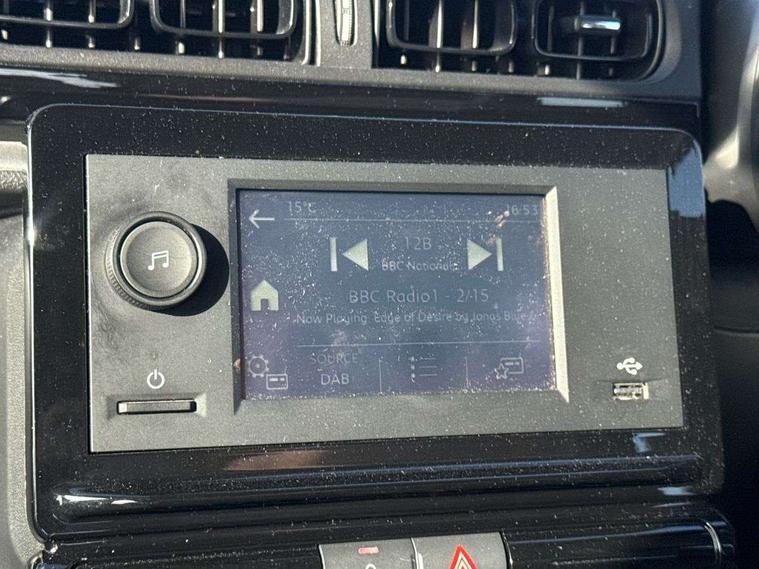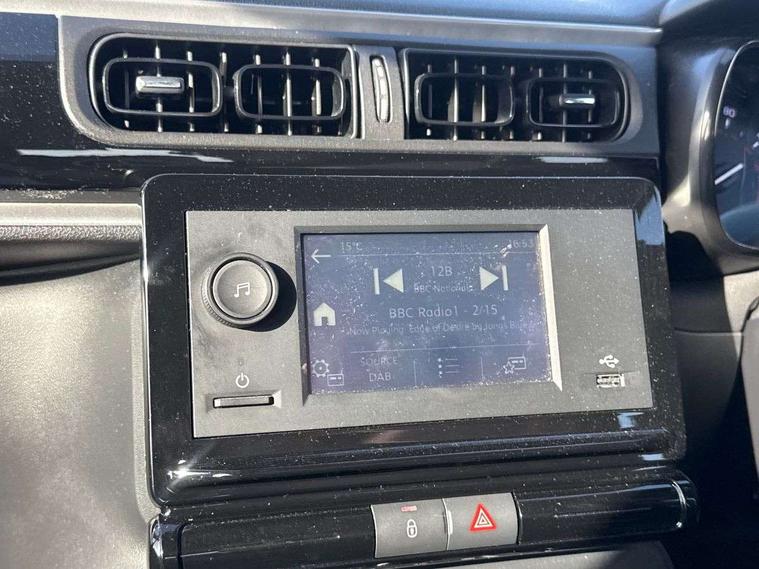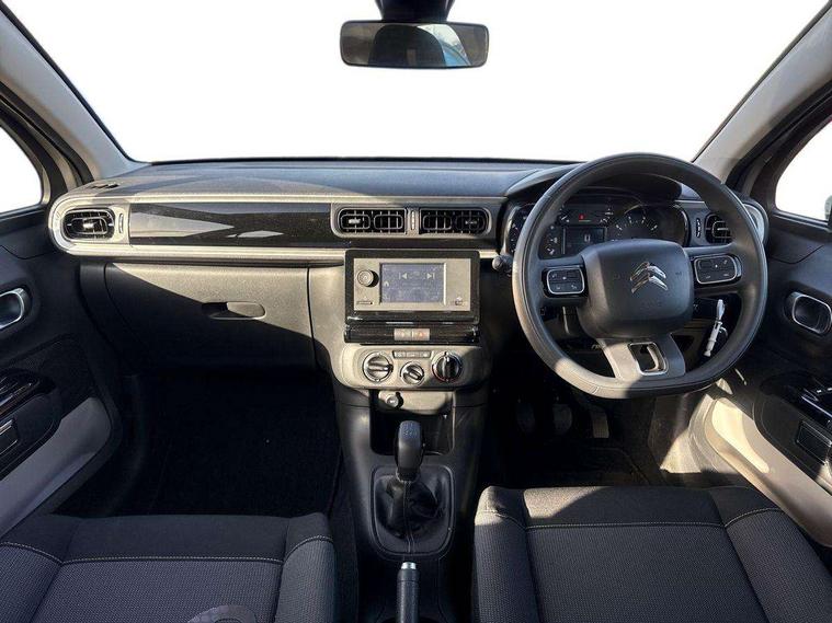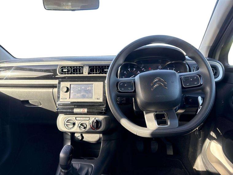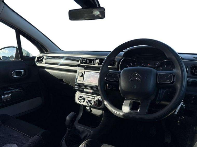 Coffee Break Alert, Cruise control + speed limiter, eCall emergency call system, Exterior temperature display, Instrument cluster with white LCD and analogue gauges, Multi function trip computer, Variable assistance power steering, Radio with DAB Digital Radio, 5" Black/White Touchscreen and Bluetooth, 3D rear light signature, Automatic activation of hazard warning lights, Body colour bumpers, Body colour door handles, Chrome decoration on front face, under chevrons and around daytime running lights, Citroen illuminated signature in LED headlights and LED daytime running lights, Electric front windows, Electrically adjustable door mirrors, Fog lights integrated into front bumper, Front windscreen wipers with two speeds and intermittent mode linked to vehicle speed, Heated door mirrors, LED Headlights, LED third brake light, Manual folding door mirrors, Manual rear windows, Matt black finish B pillar, Polar white fog light surround, Polar white rear view mirror caps, Rear side wing doors, Rear windscreen wiper with intermittent mode linked to vehicle speed, Standard day night switchable interior rear view mirror, Tinted side windows, You sticker, 1/3 to 2/3 split folding rear seat, 12V socket, Boot light, Cloth upholstery, Driver and passenger's sun visor with courtesy mirror, Driver's seat height adjustment, Front lighting panel, Front seats adjustable with forward back slide and adjustable backrest, Height adjustable front head restraints, Height/reach adjust steering wheel, ISOFIX mounting on outer rear seats with top tether and labels indicating fixing points, Manual air conditioning, Parcel shelf, Row 2 - Three seats with individually adjustable head rests, Seatbelt unfastened on the move audible and visual alert for front and rear seats, Single front passenger seat, Soft touch gear lever with leather effect gaiter, Standard ambience, Steering wheel with satin chrome elements and audio/telephone controls, Three rear headrests, Upholstered armrest in front and rear doors, Safety pack 1 - C3, ABS with Electronic brakeforce distribution and Emergency braking assistance, Driver and front passenger seatbelts with pyrotechnic pretensioners and force limiters, Driver's airbag, Electric child locks, ESP with anti skid system, Front passenger airbag, Front passenger airbag deactivation, Front side airbags + front/rear curtain airbags, Hill start assist, Manual parking brake with chrome finish button, Mono-tone horn, Outer rear seats with pretensioners and force limiters, Three rear 3-point seatbelts, Tyre pressure monitoring system, Anti theft alarm, Automatic door and boot locking when moving off with automatic unlocking in case of impact, Central locking with locked indicator and interior one touch lock button, Immobiliser, Remote control central locking with two plip keys, Gloss black dashboard finish with grey surround, 15" steel wheels with arrow wheel covers, Tyre puncture repair kit,
