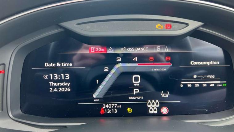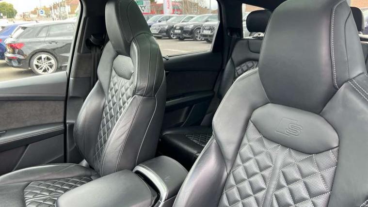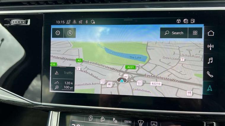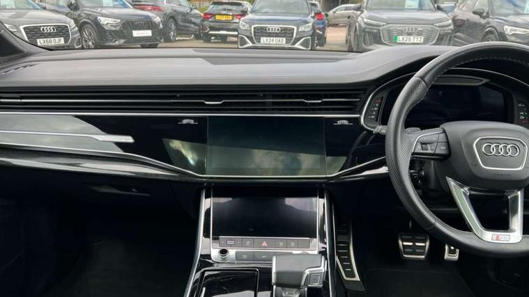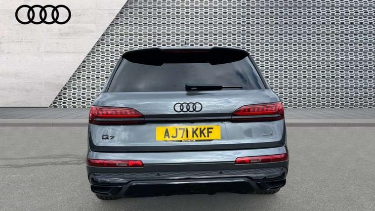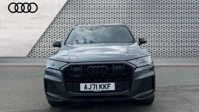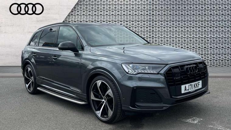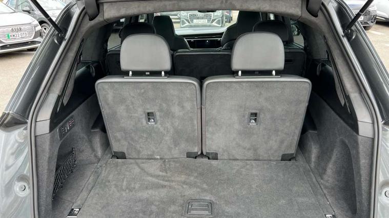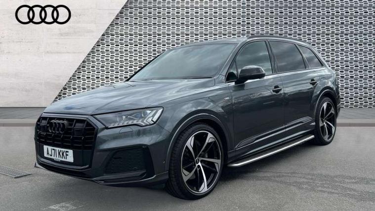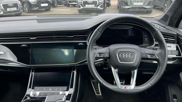 All wheel steering, Audi connect safety and service (e-call), Audi connect with Amazon Alexa Integration, Audi drive select (Auto, Comfort, Dynamic, Efficiency, Individual, Off-road and All road), Bluetooth interface, Camera based traffic sign recognition, Head up Display, MMI navigation plus with MMI touch screens includes 10.1" and 8.6" screens with haptic feedback, Natural voice recognition, Power door closure, Power operated tailgate, Smartphone interface includes wireless Apple carplay/Android Auto, Start/stop system, 48V Mild hybrid technology, Adaptive air sports suspension, Quattro all wheel drive with self locking centre differential, 2 USB-C ports with charging functionality in the rear, Audi music interface - front 2 USB-C ports with charger and data functions, DAB digital radio module, 3rd brake light, Audi Beam uses LEDs to project Audi logo onto the ground as you exit your Q7, Audi HD matrix LED headlights with Audi laser light + dynamic front and rear indicators, Auto dimming frameless rear view mirror, Black roof rails, Bumpers in contrast paint scandium grey finish includes door trim and wheel arch trim strips, inlays in door strip contain quattro embossing, Electric panoramic glass sunroof, Electrically adj heated/folding + automatically dimming exterior mirrors with memory + automatic kerb side function for passenger side exterior mirror, Gloss black finish for exterior Audi rings and Q7 logos without engine badging, Headlight washers, Heat insulating glass in windshield, Integrated LED indications in door mirrors, LED daytime running lights, LED rear tail lights, Privacy glass - dark tinted rear and rear side windows from B-pillar backwards, Rear side wing doors, Rear wiper, Side running boards, 2 seat bench in 3rd row, 3 seat bench in 2nd row, 3 spoke heated leather multi-function steering wheel including paddle shift, 4 zone deluxe automatic climate control, 7 seat layout with ISOFIX points for the front passenger seat and rear passenger seat, Black Alcantara headlining, Comfort front centre armrest, Double sun visors with illuminated vanity mirrors, Electric adjustable front seats/backrest bolsters, lumbar support, memory functionality, Folding rear seats, Front head restraints, Front/rear floor mats, Heated front and outer rear seats for second row, Illuminated door sill trims with S logo, Manual sunblind for the rear side windows and manual sunblind for the rear window, Rear head restraints, Seat ventilation and massage function in the front, Single front passenger seat, Stainless steel pedals, City assist pack - Q7, Comfort and sound pack with Bang + Olufsen premium sound system - Q7, Extended leather pack - Q7, Titanium black styling pack - Q7/SQ7, Tour pack with Adaptive cruise assist - Q7, 3 point seatbelts on all rear seats, Audi pre sense front, Child locks on rear doors, Driver and front passenger, front side and curtain airbags, Electromechanical parking brake, Electronic Stabilisation Control (ESC) including ABS, ASR and EDL, Extended pedestrian protection measures, Hill hold assist, Seatbelt monitoring, Tyre pressure loss indicator, Warning triangle and first aid kit, Anti theft alarm, Anti-theft wheel bolts and wheel loosening detection, Remote central locking, Polished oak trim with grey finish inlay, Tool kit, Tyre repair kit,